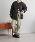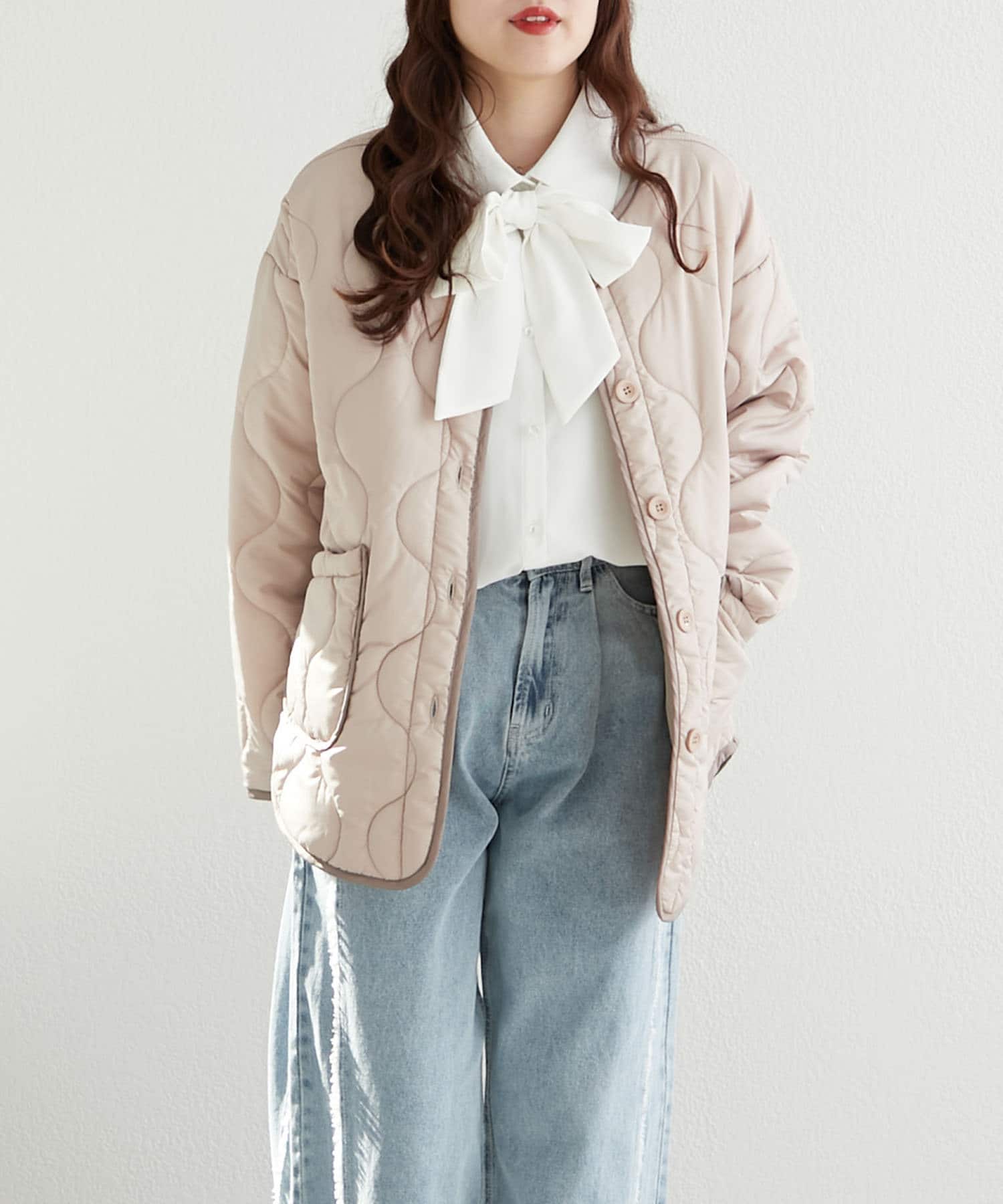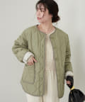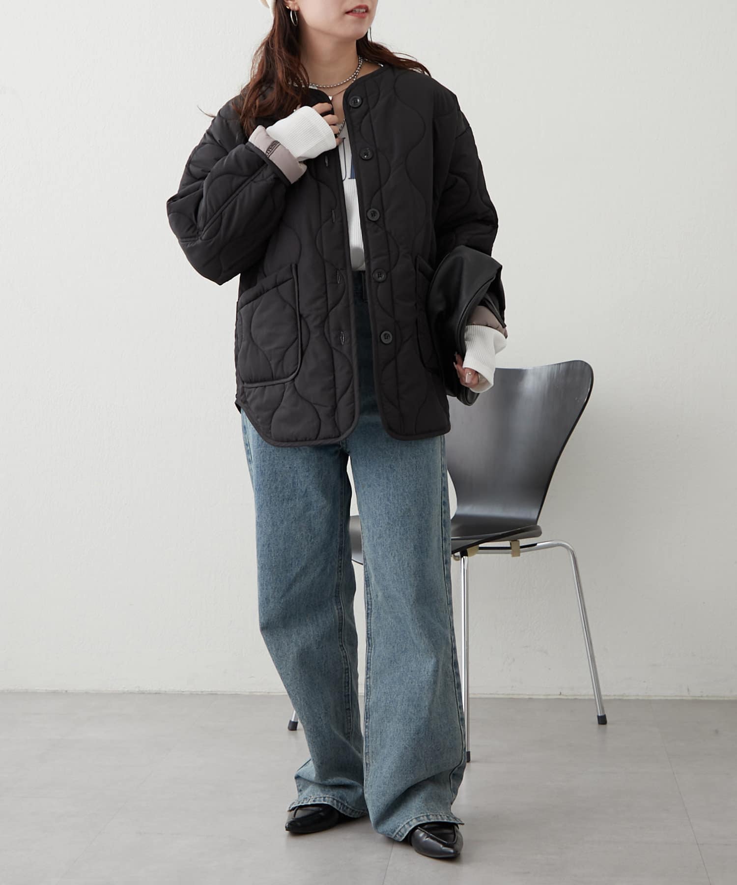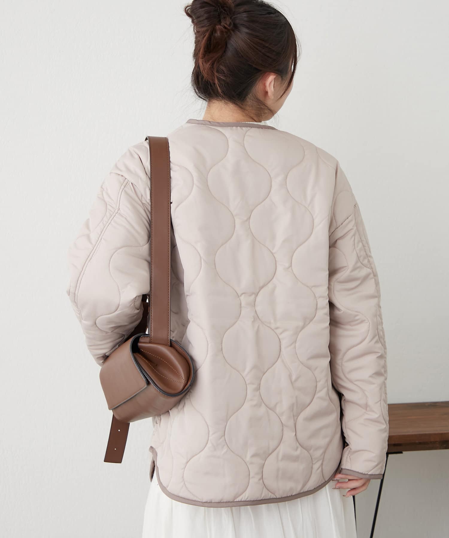 ・軽さと防寒に優れたアウターの定番キルト素材を使ったノーカラージャケット。