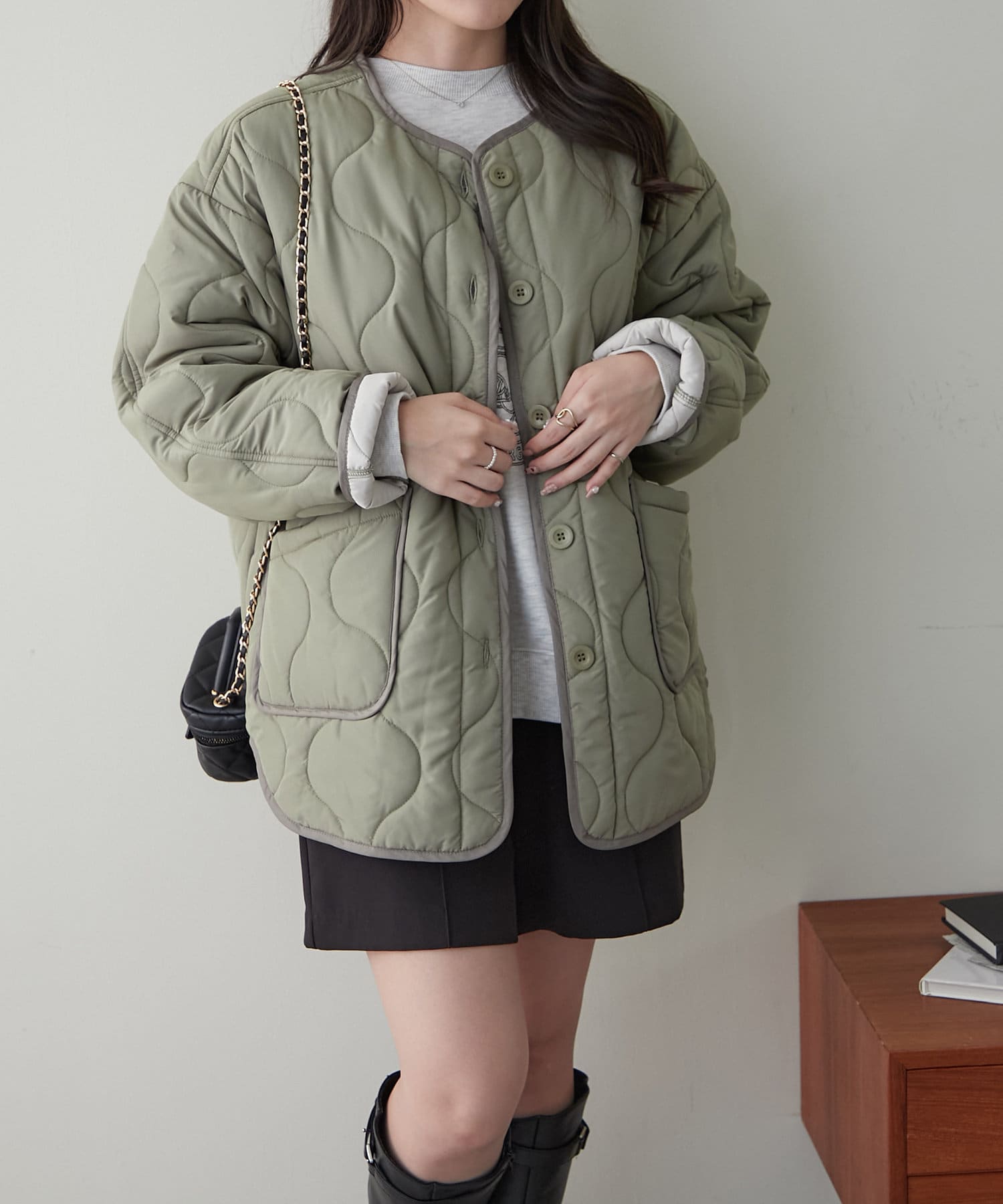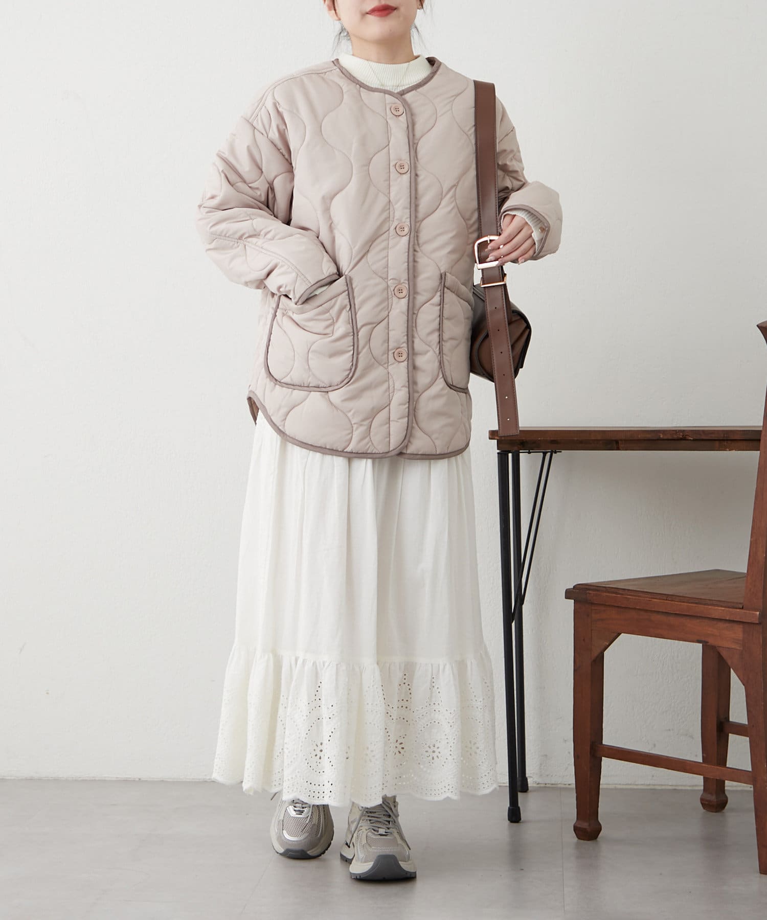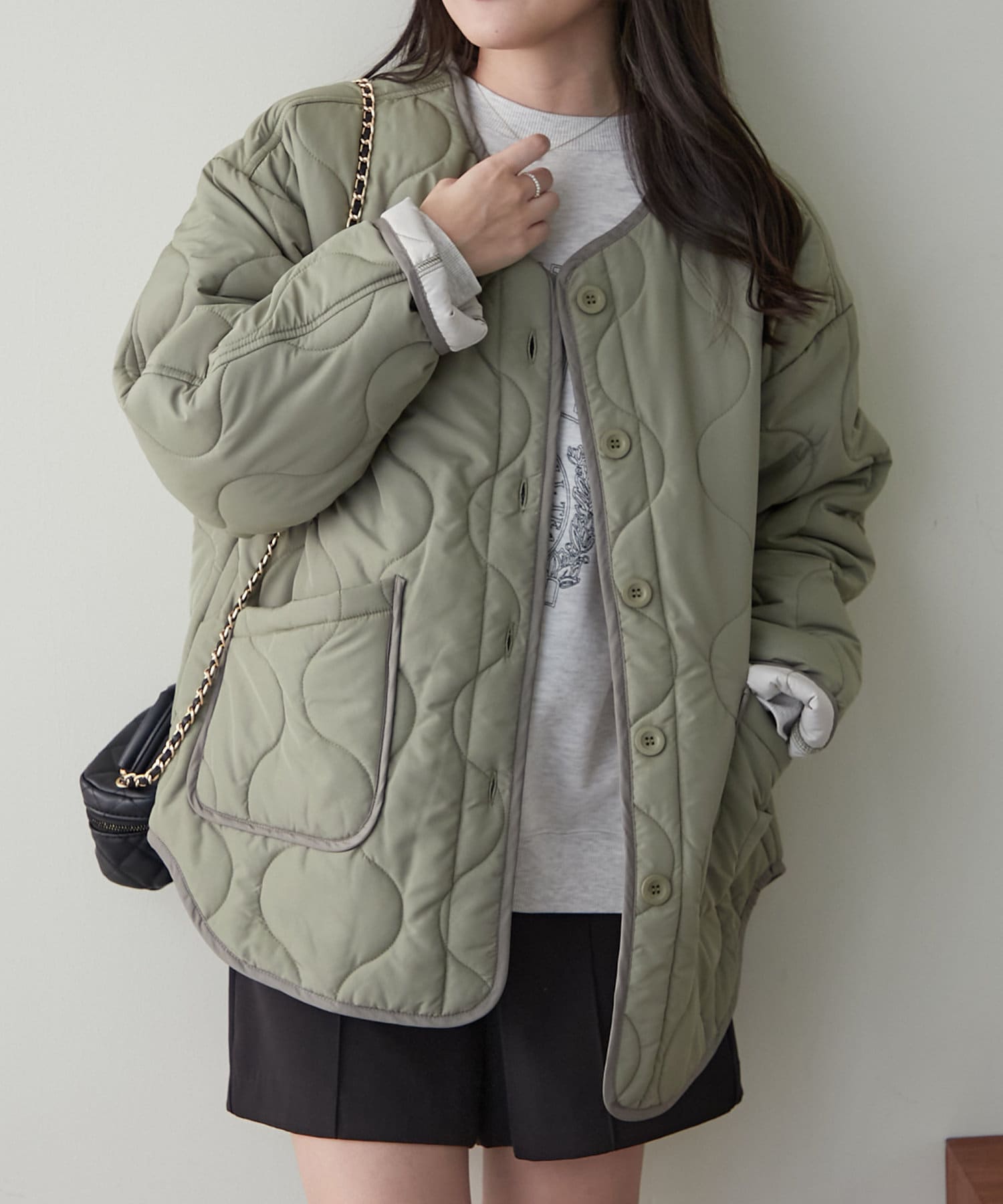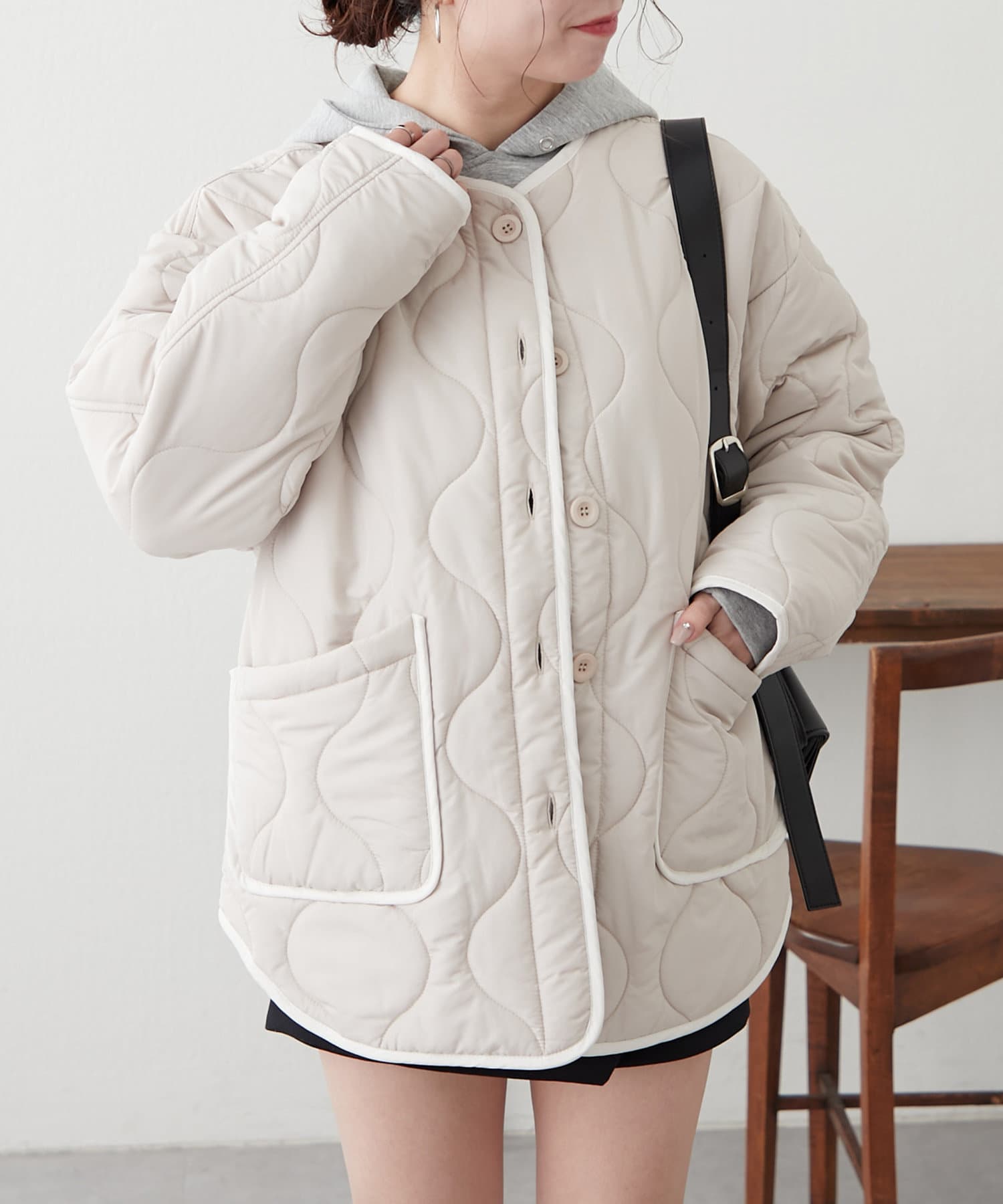 【新色登場】春まで着れる、配色パイピングキルトジャケット
