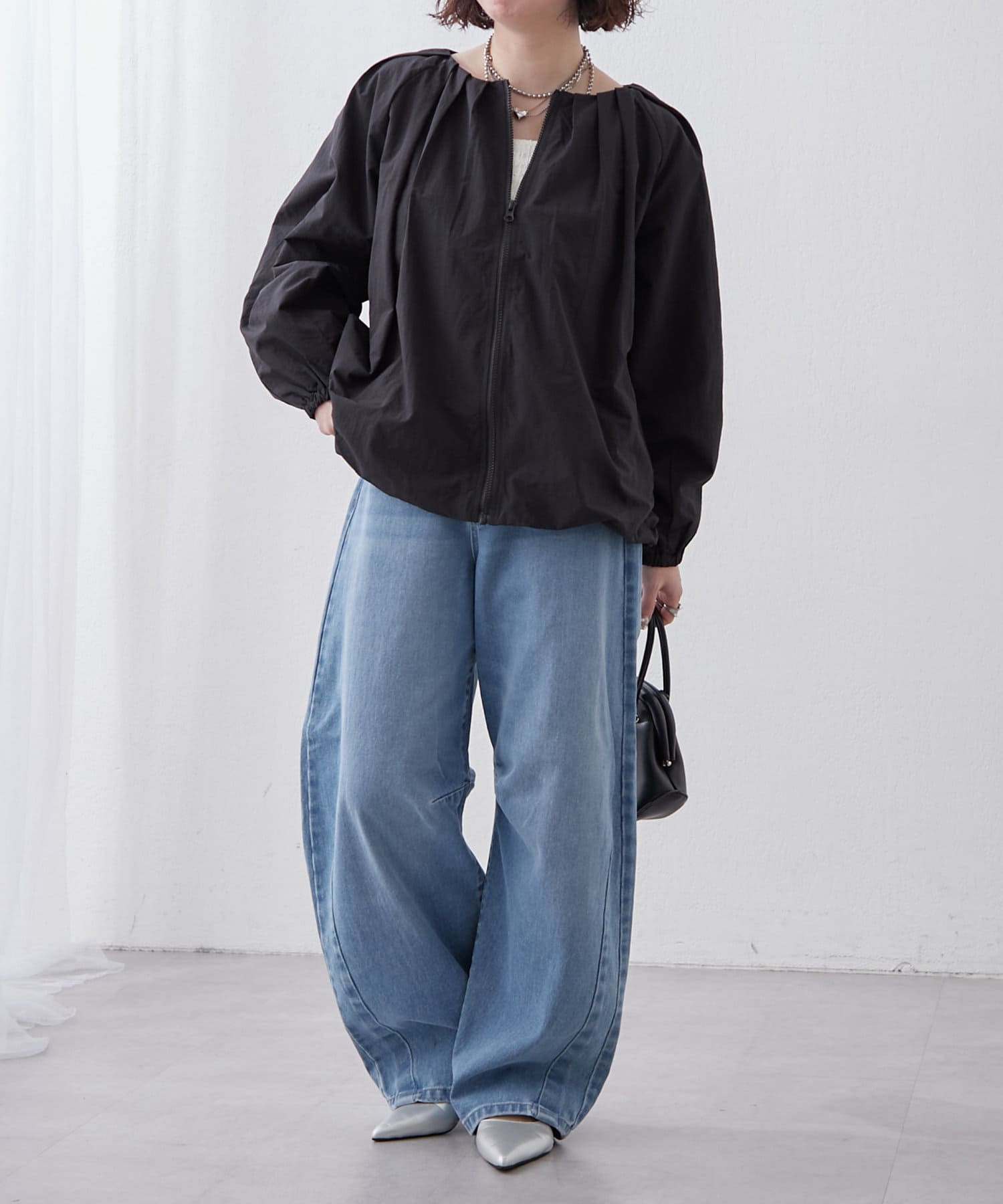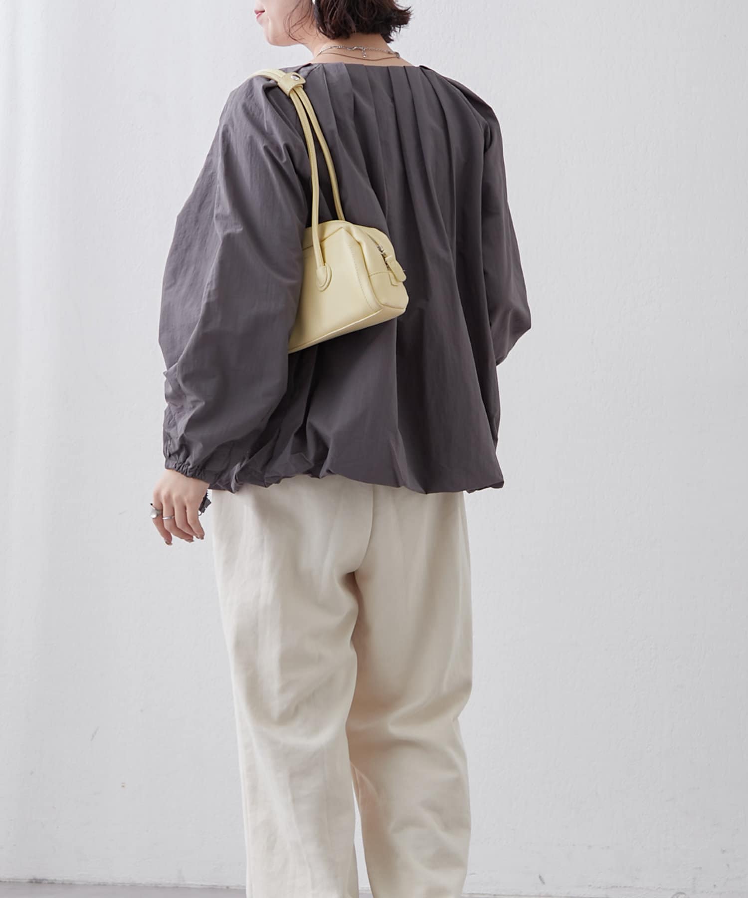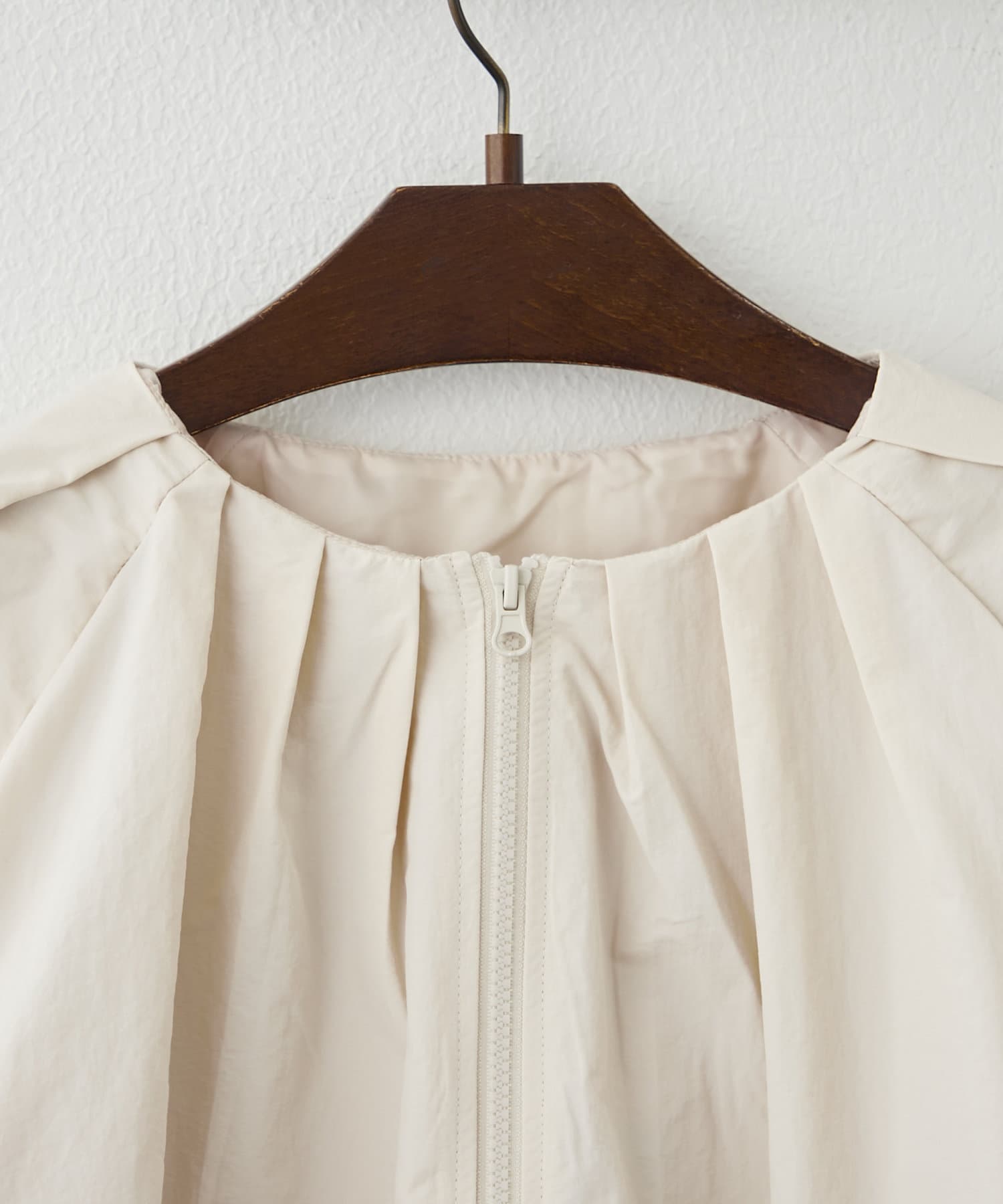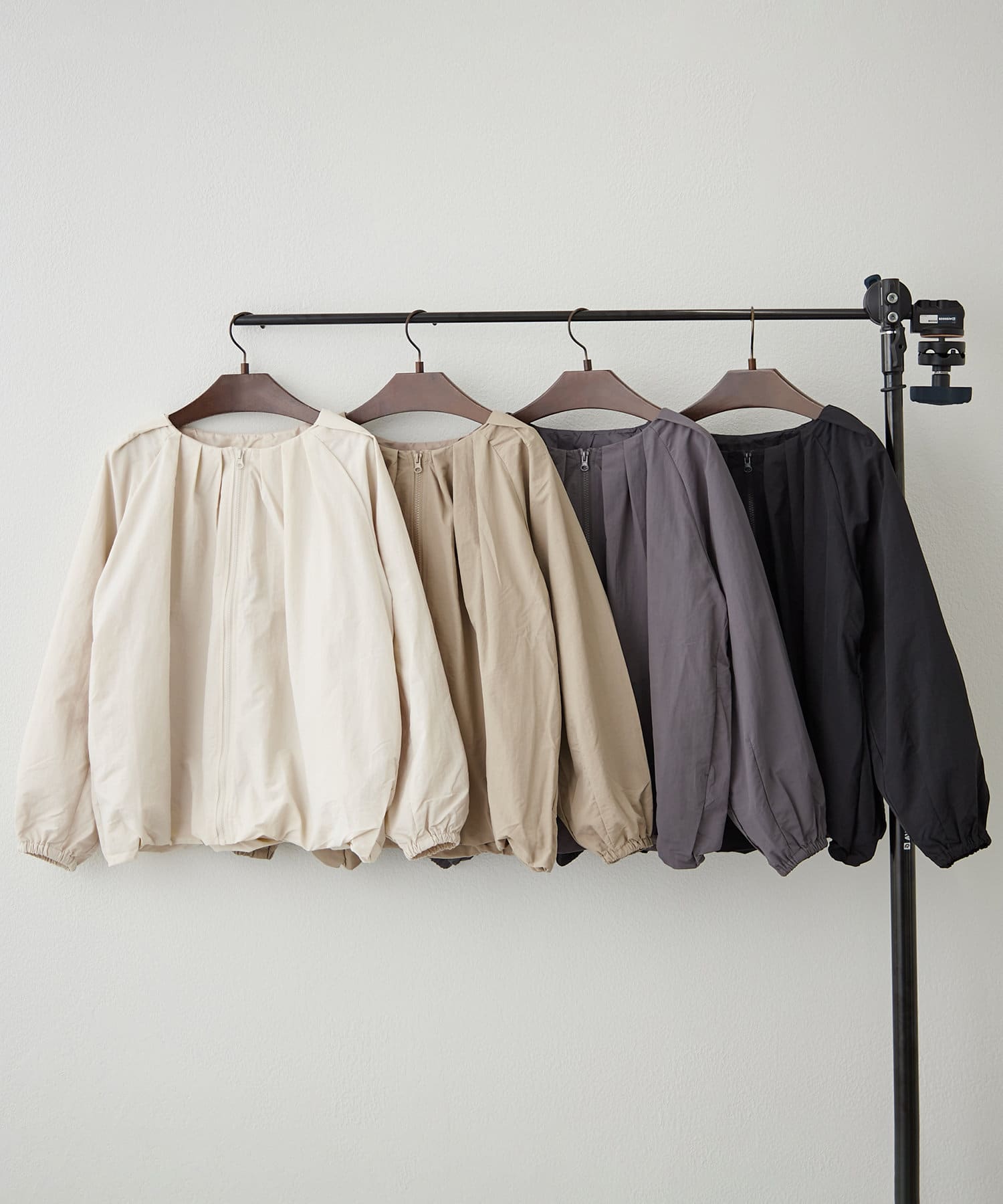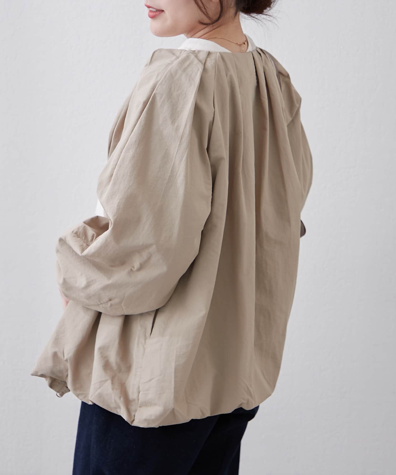 ・すっきり上品見えが叶うノーカラーデザインにタックもプラスし、ふわっとしたバルーンシルエットに仕上げました。