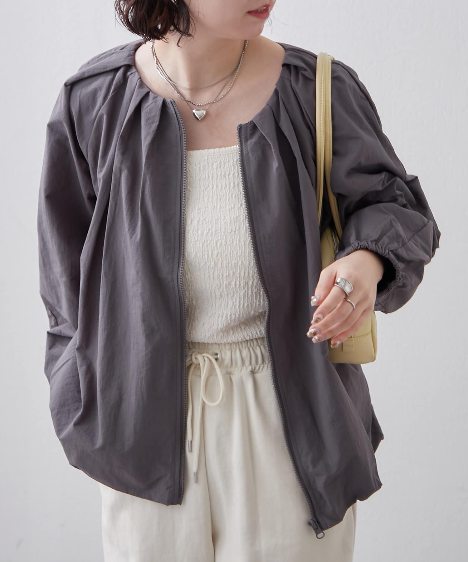 ふわっとシルエットが魅力、タックバルーンブルゾン