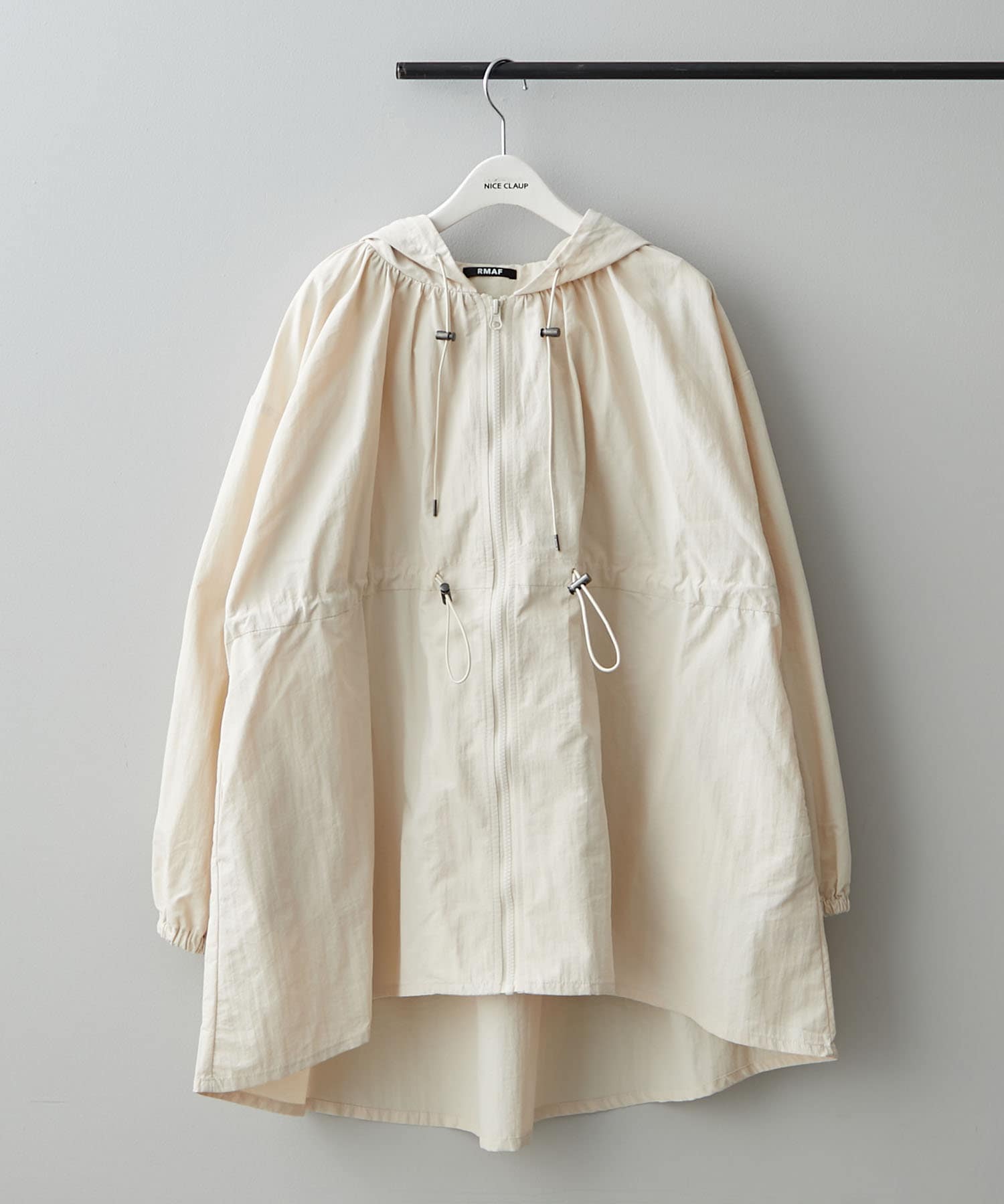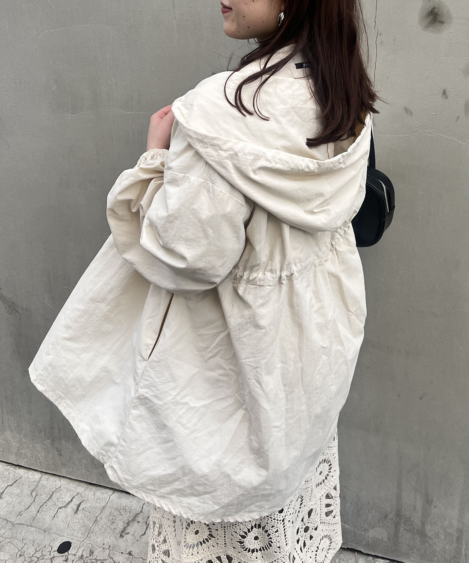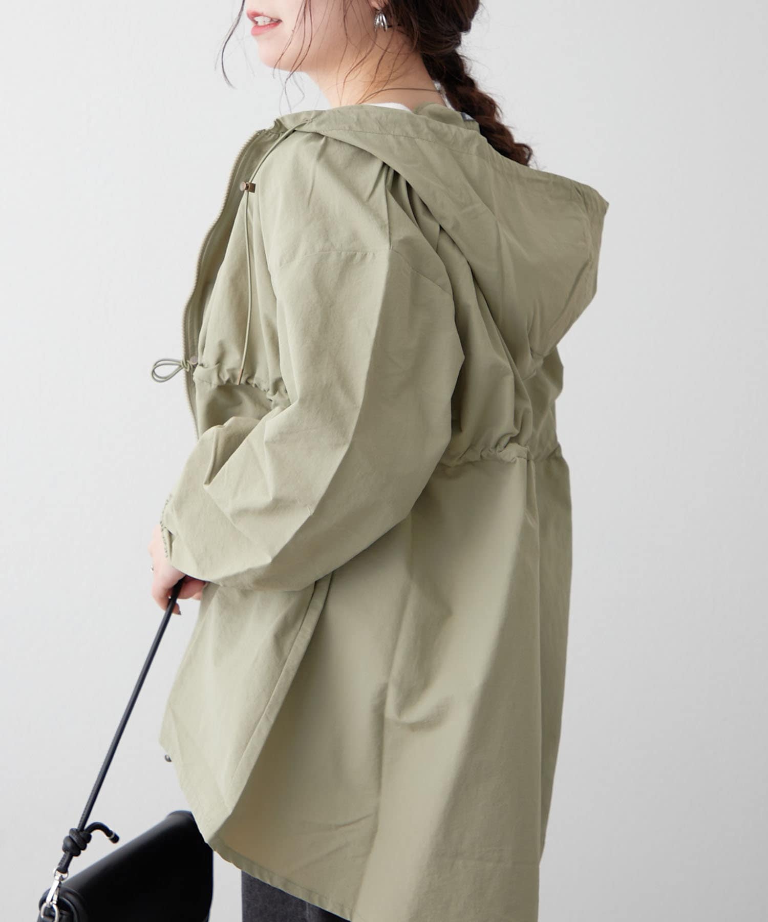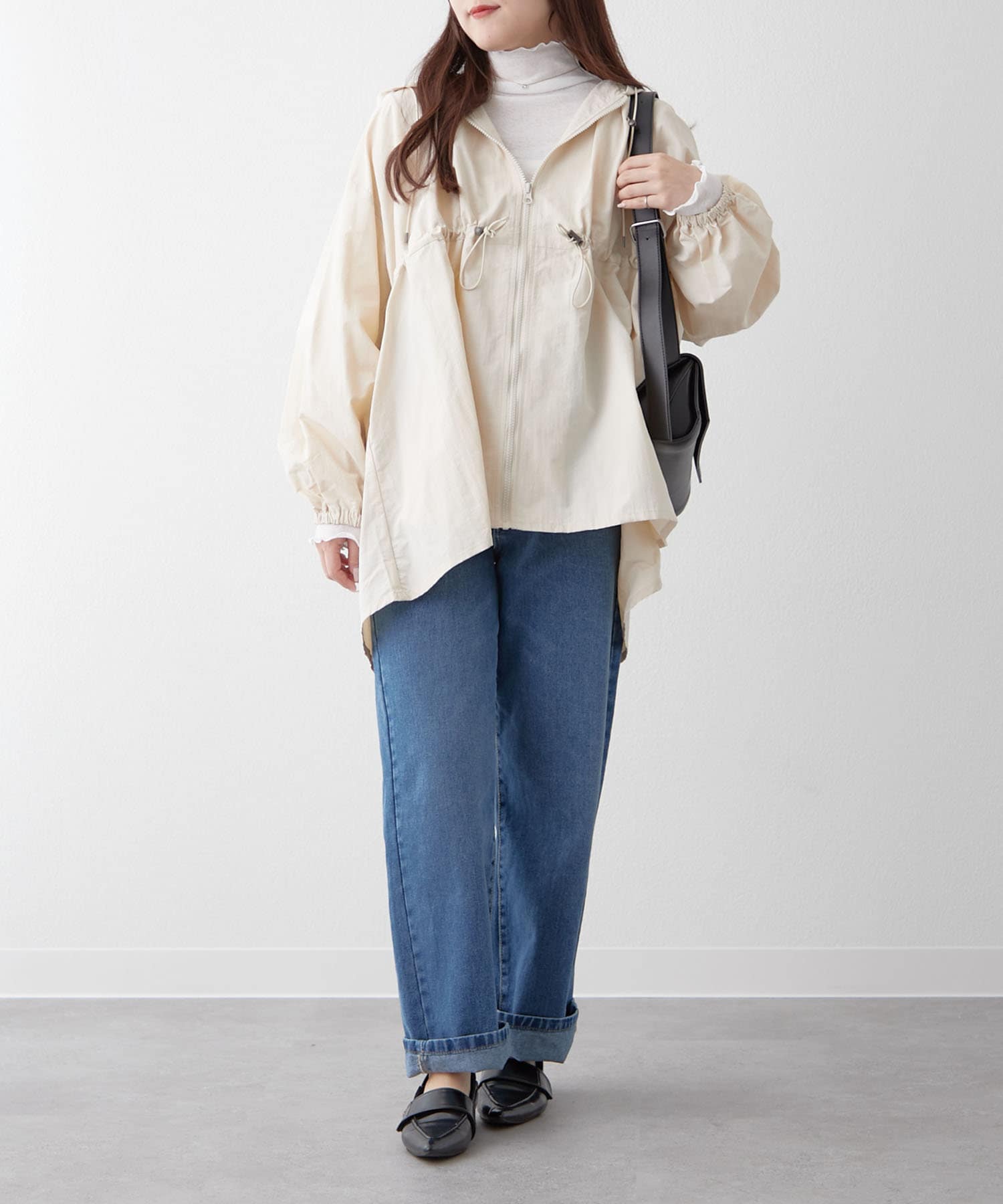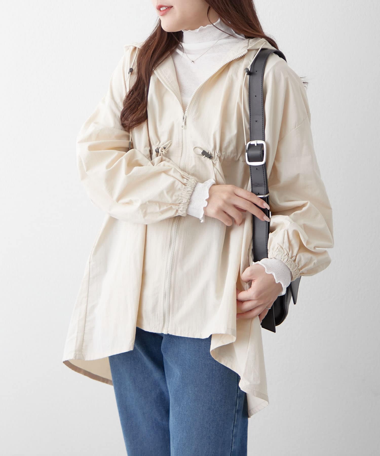 ・ウエスト部分がドロスト仕様になっているので、Aラインをつくることができ、カジュアルにもきれいめにもなるアイテム。