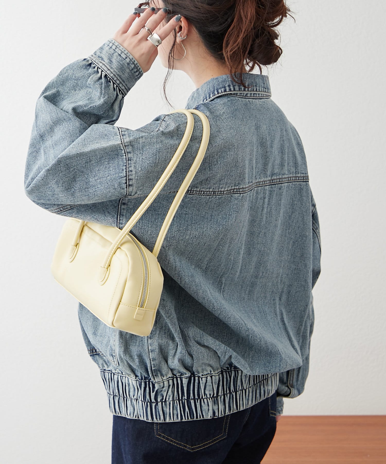 ・デニム×デニムコーデに春カラーの小物を取り入れたスタイリングが今季いちおし◎