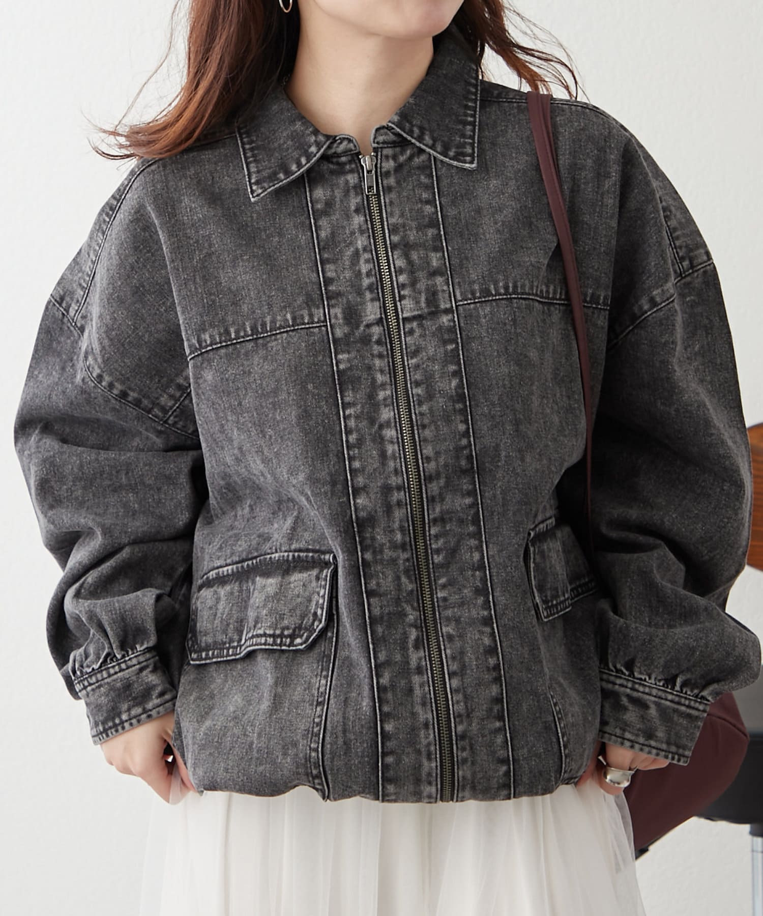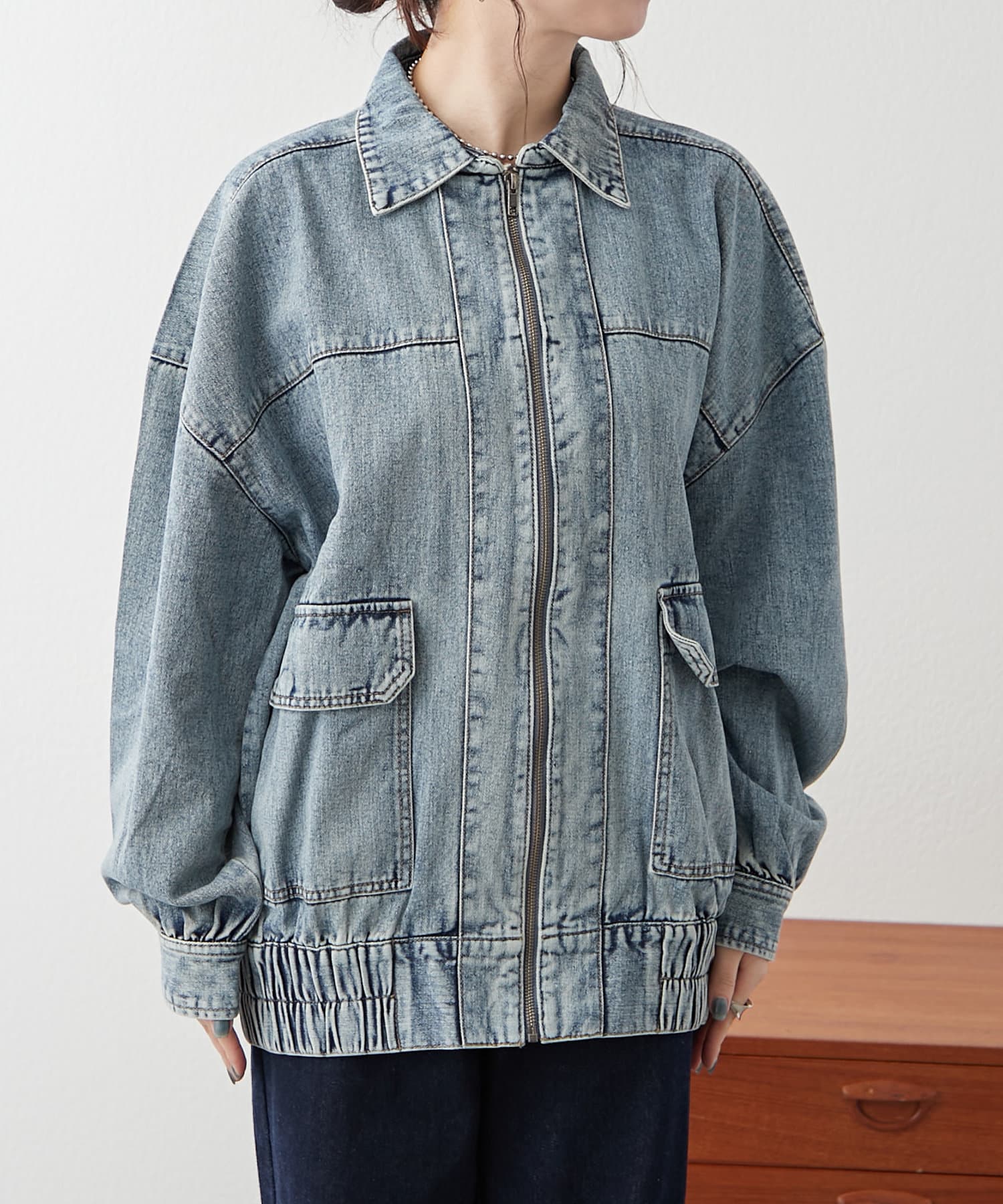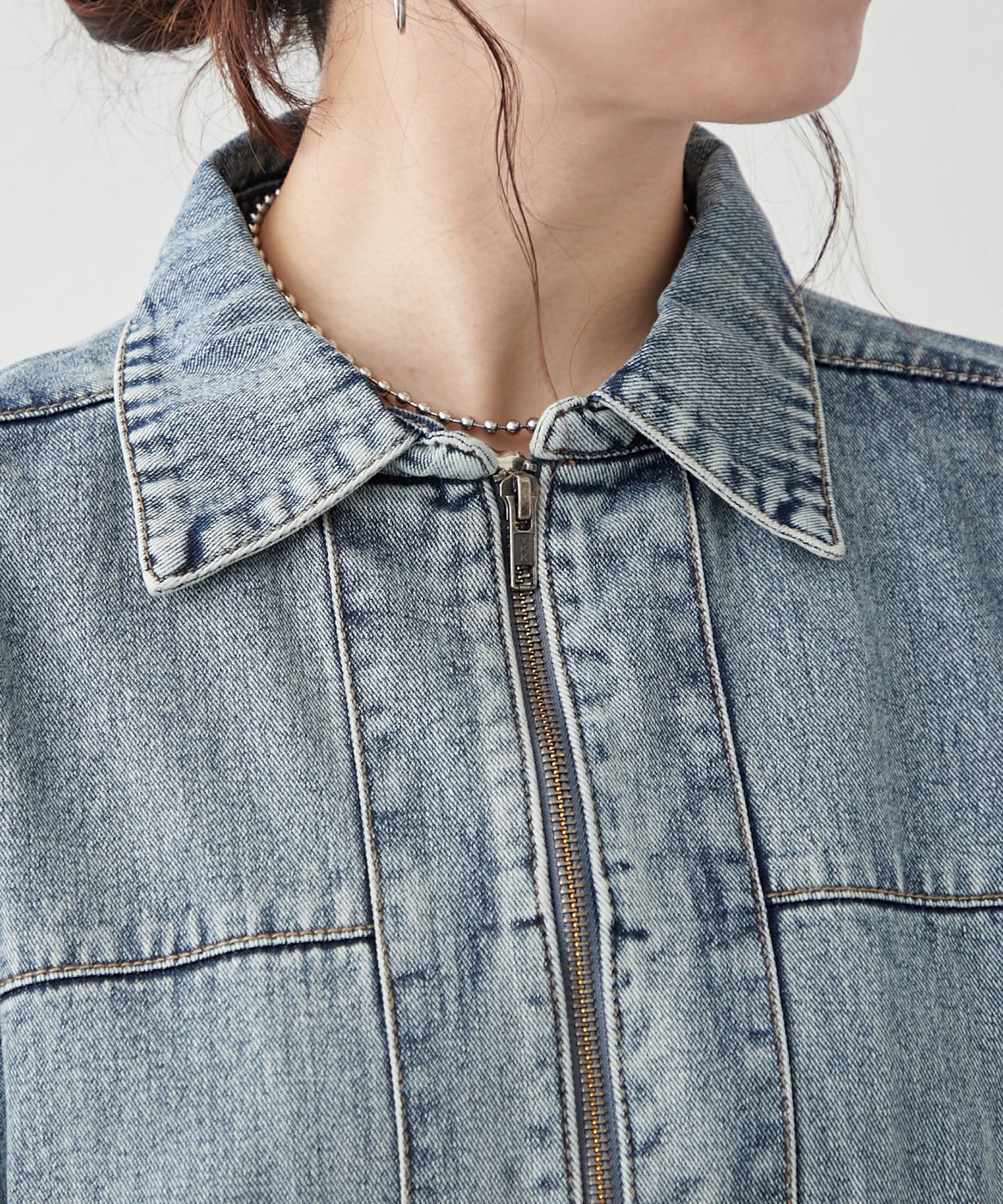・ジップアップ仕様のデニムブルゾン。