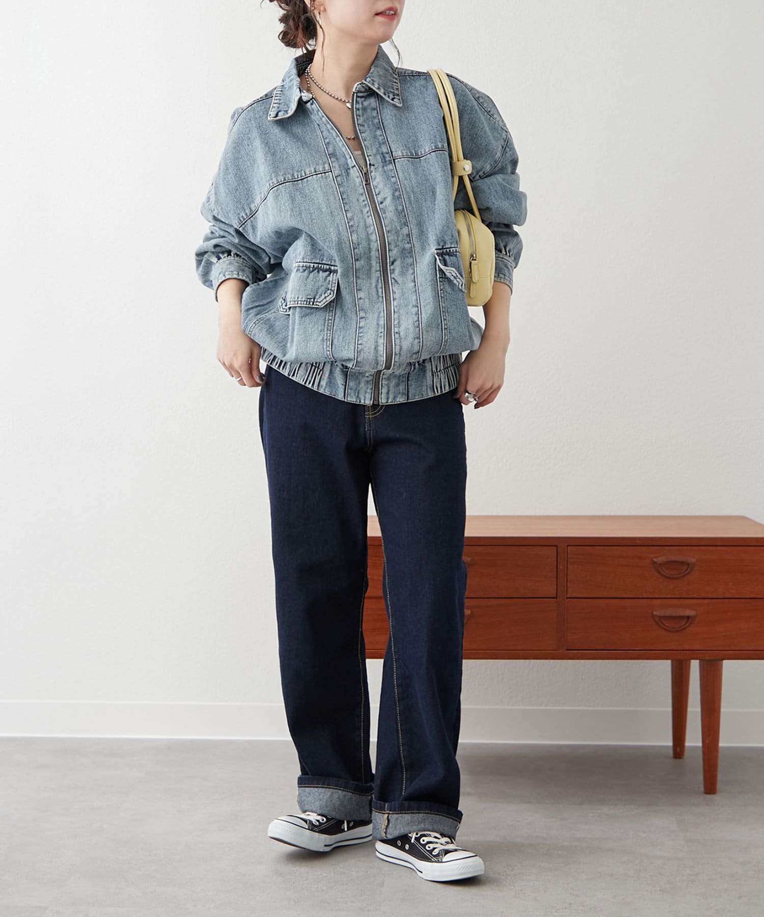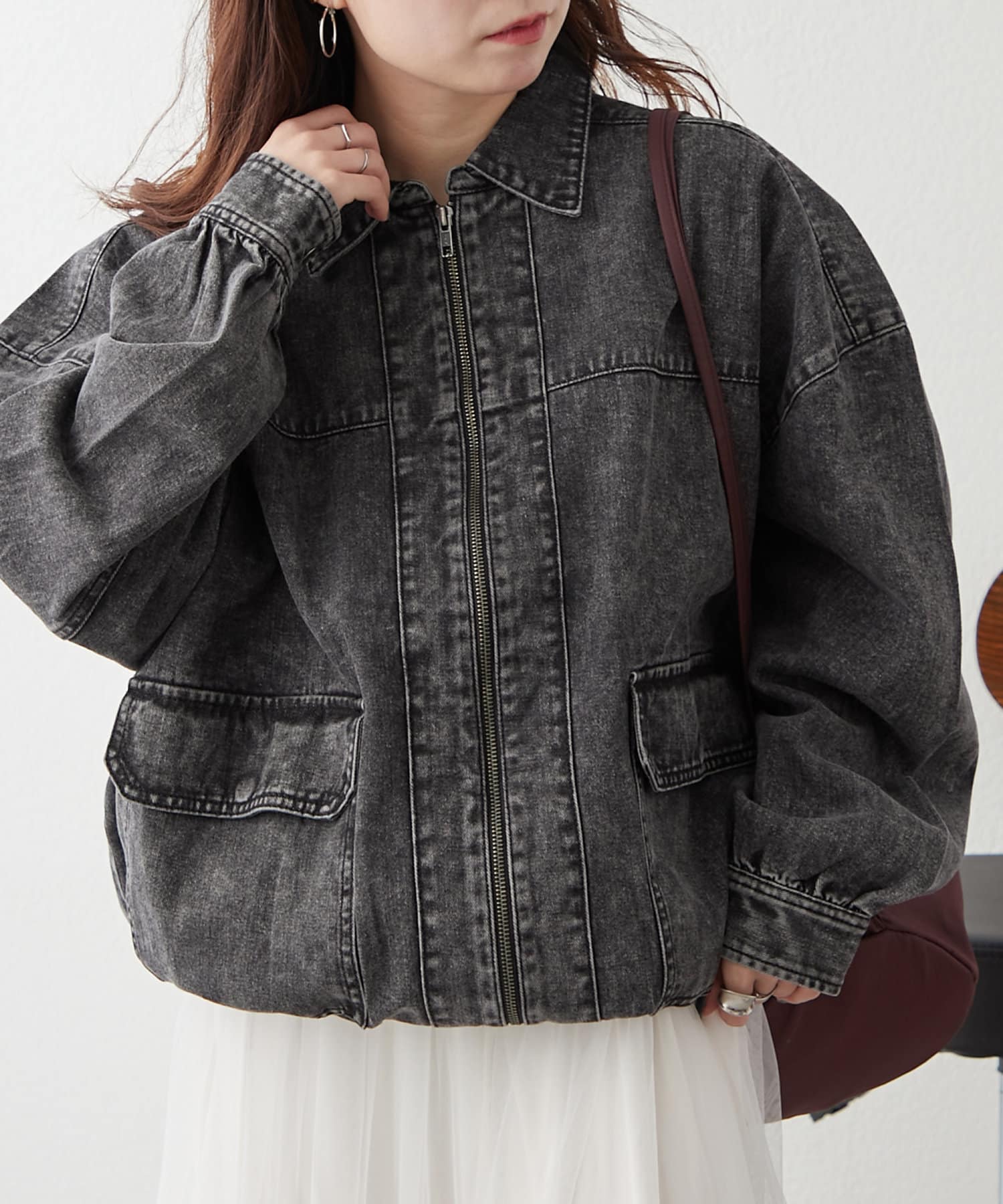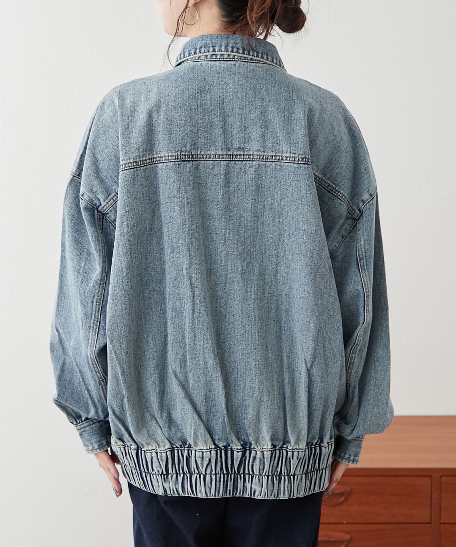 ・ジップアップ仕様のデニムブルゾン。