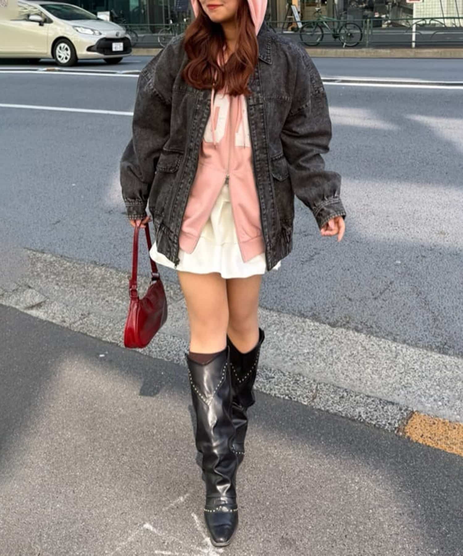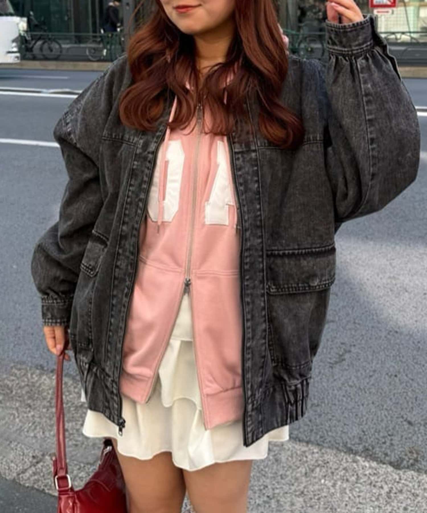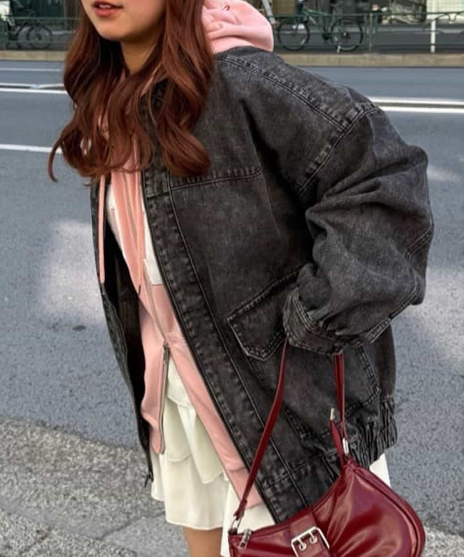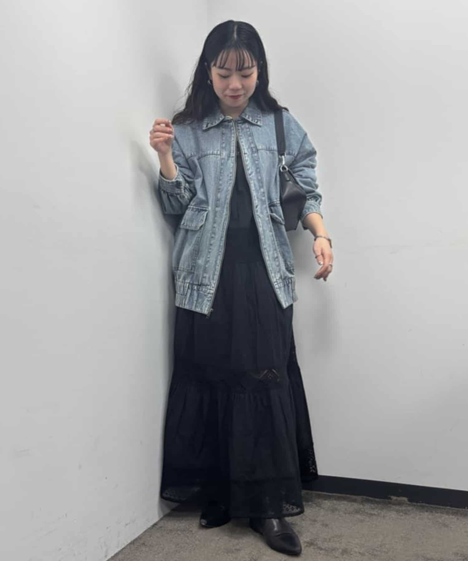 ・あえてチュールやレース素材のボトムスを合わせたガーリーコーデにもぴったりなアウターです。
