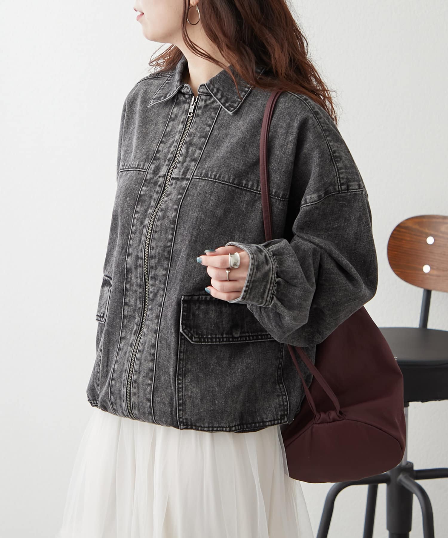 ・ジップアップ仕様のデニムブルゾン。