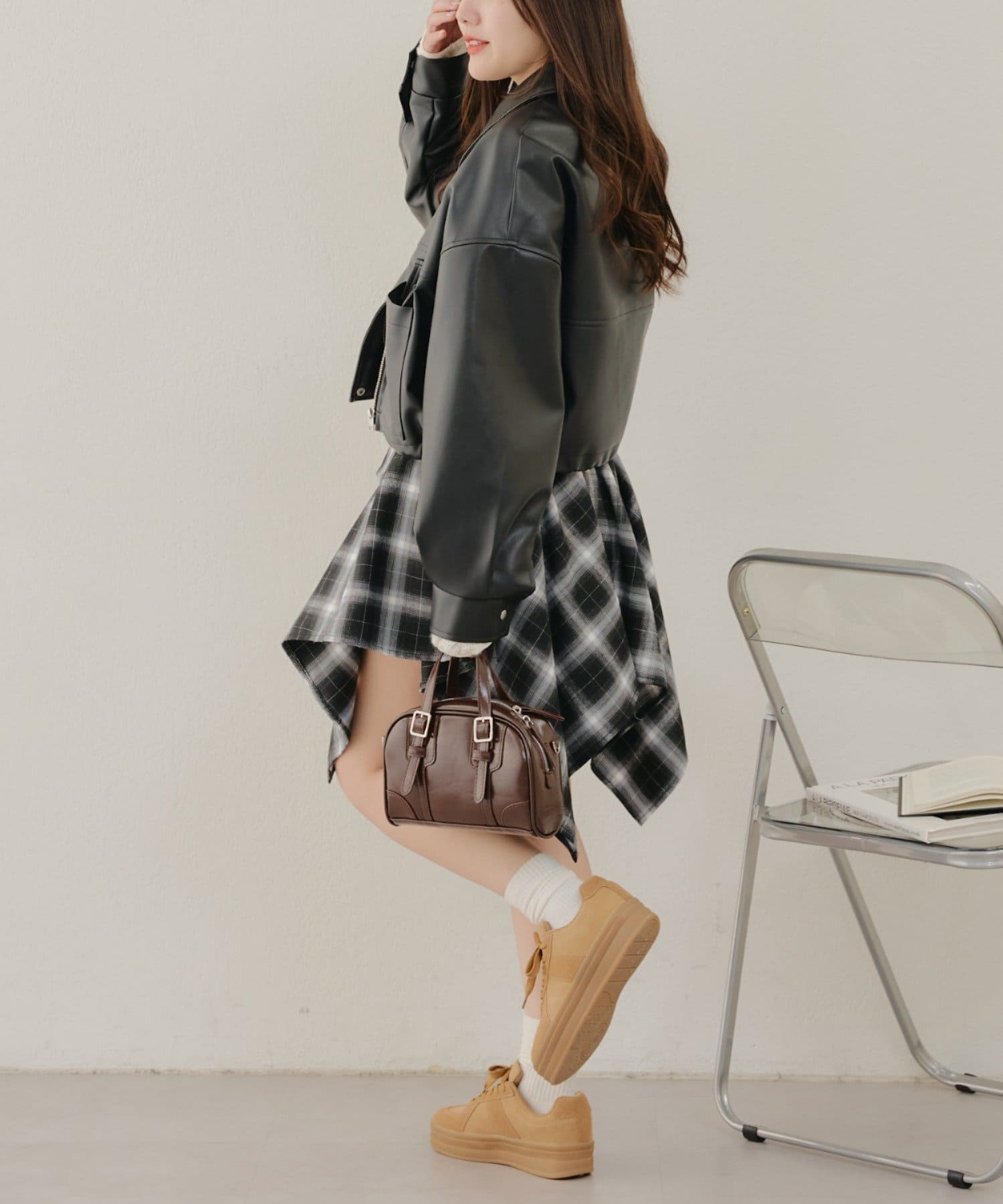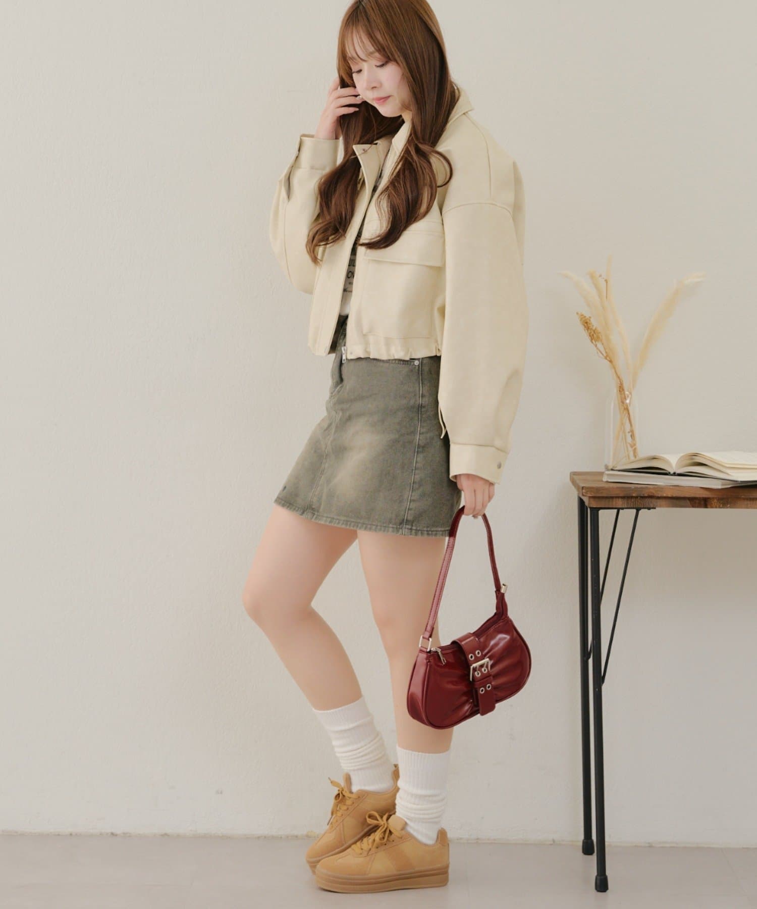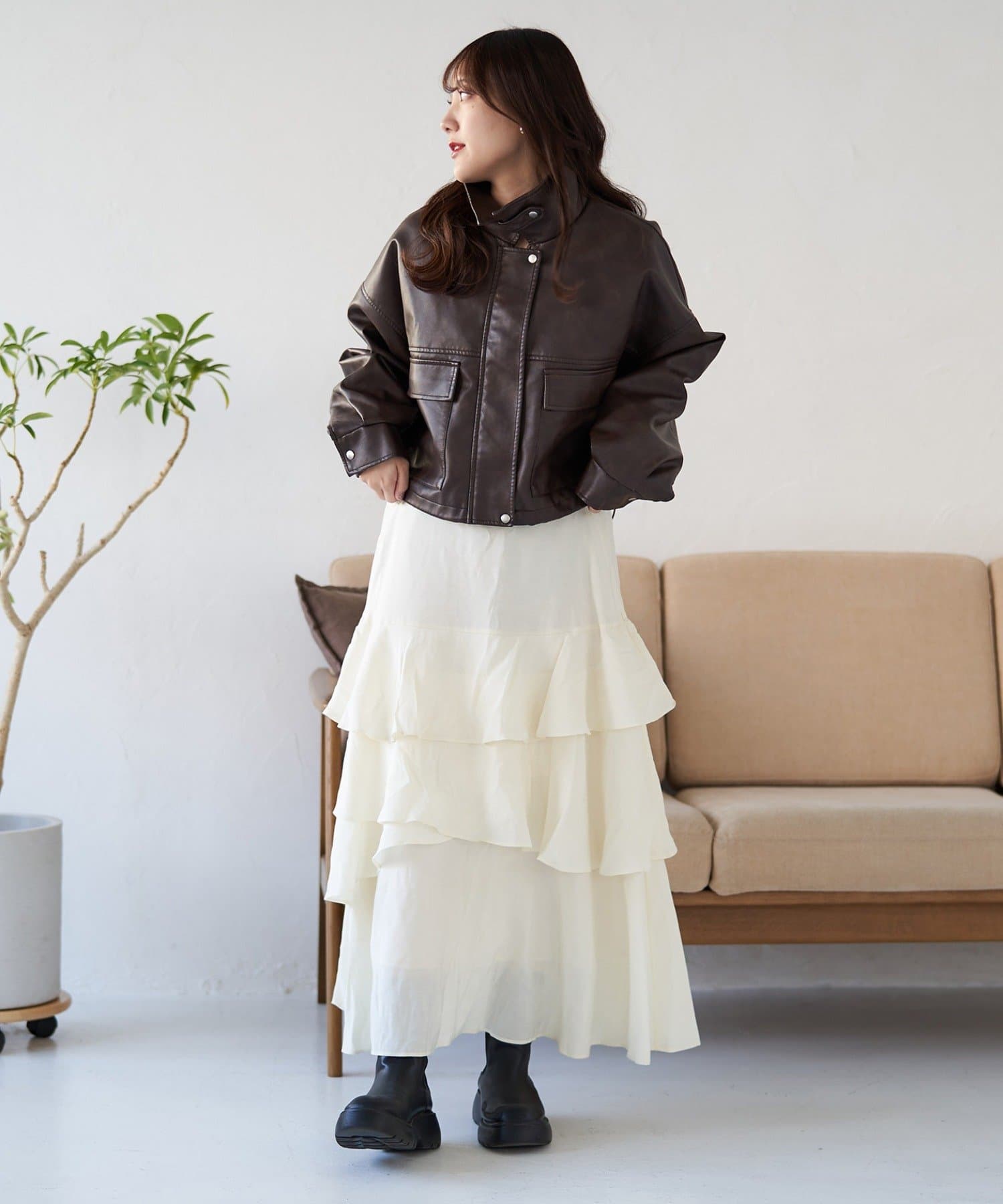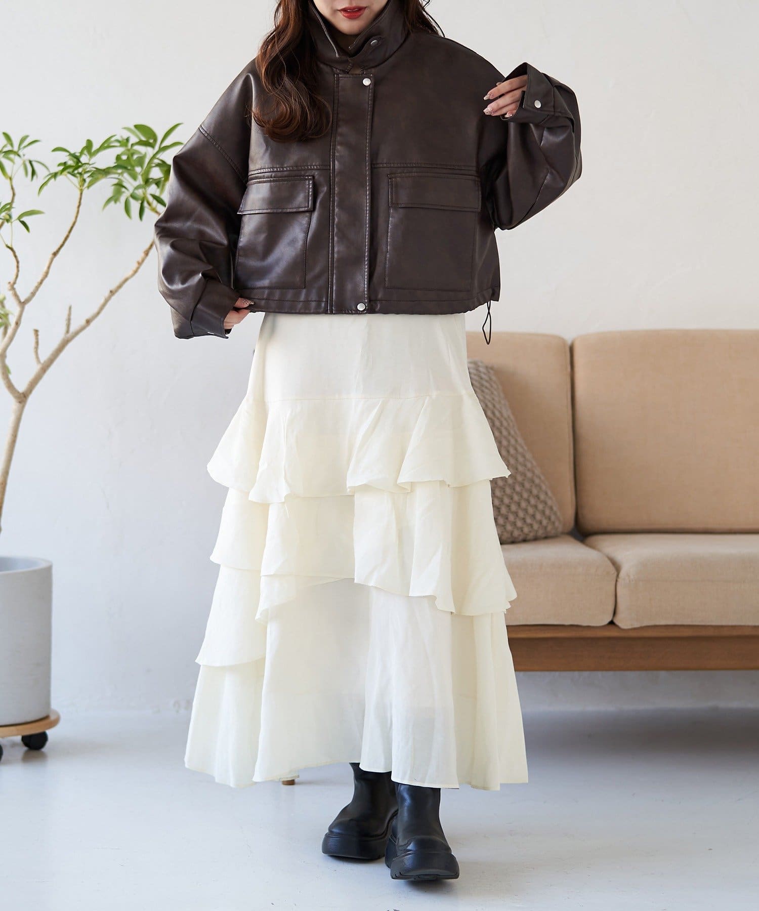 ・パンツスタイルでもスカートやワンピースでも、羽織るだけでバランスが取れ、スタイルアップした印象にまとまります。