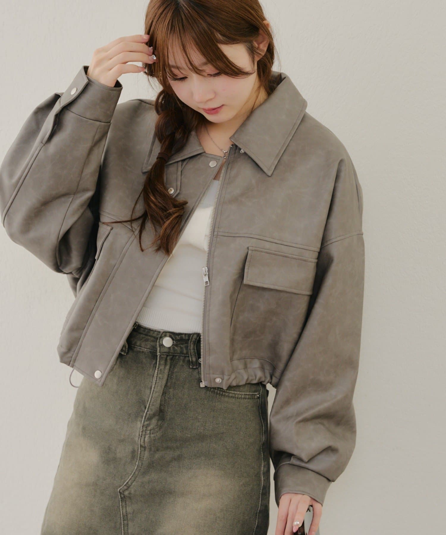 【春の新作】【OUTLET限定】合皮ブルゾン