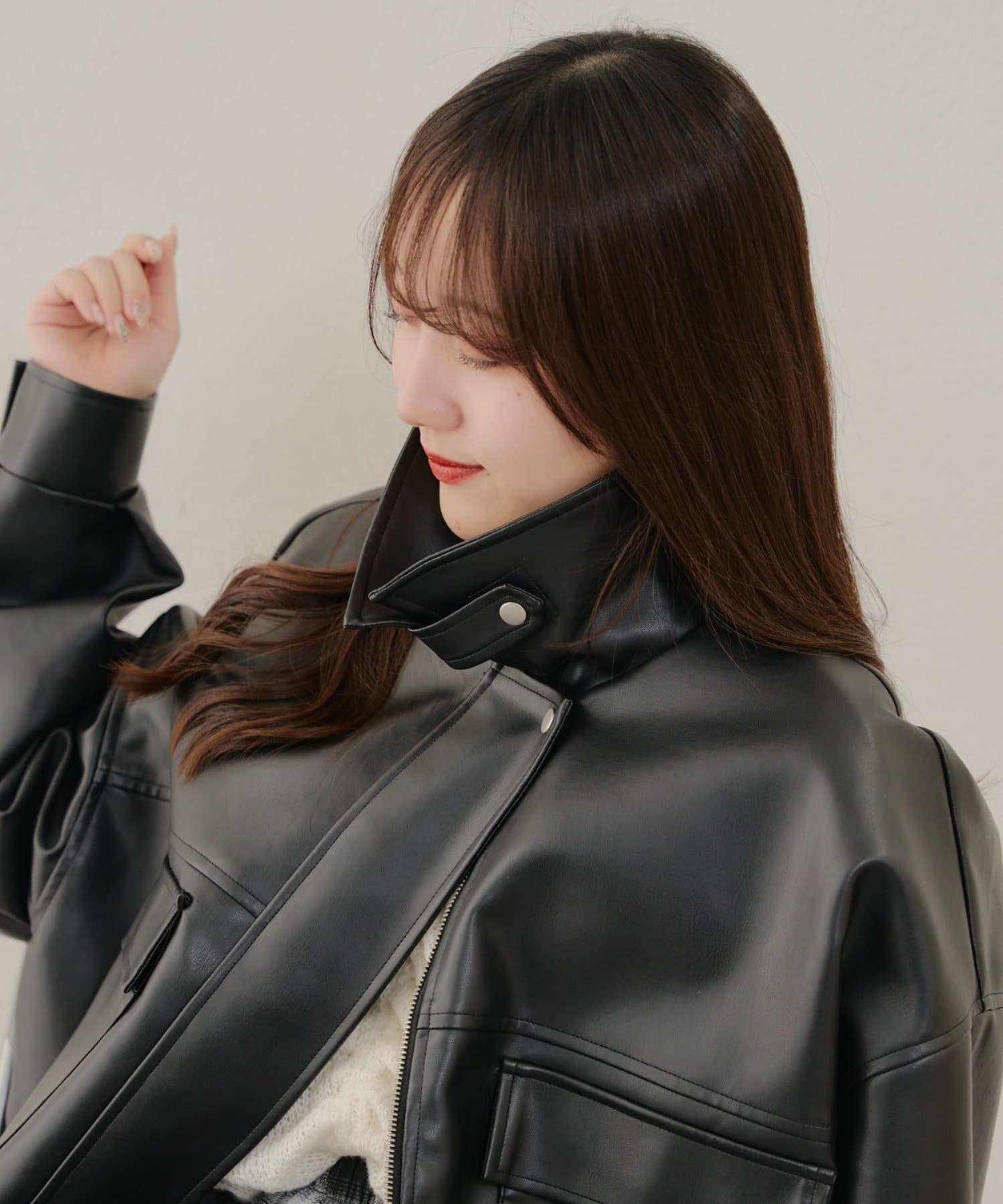 ・衿を立てて着るとハイネックのようなシルエットも楽しめます。