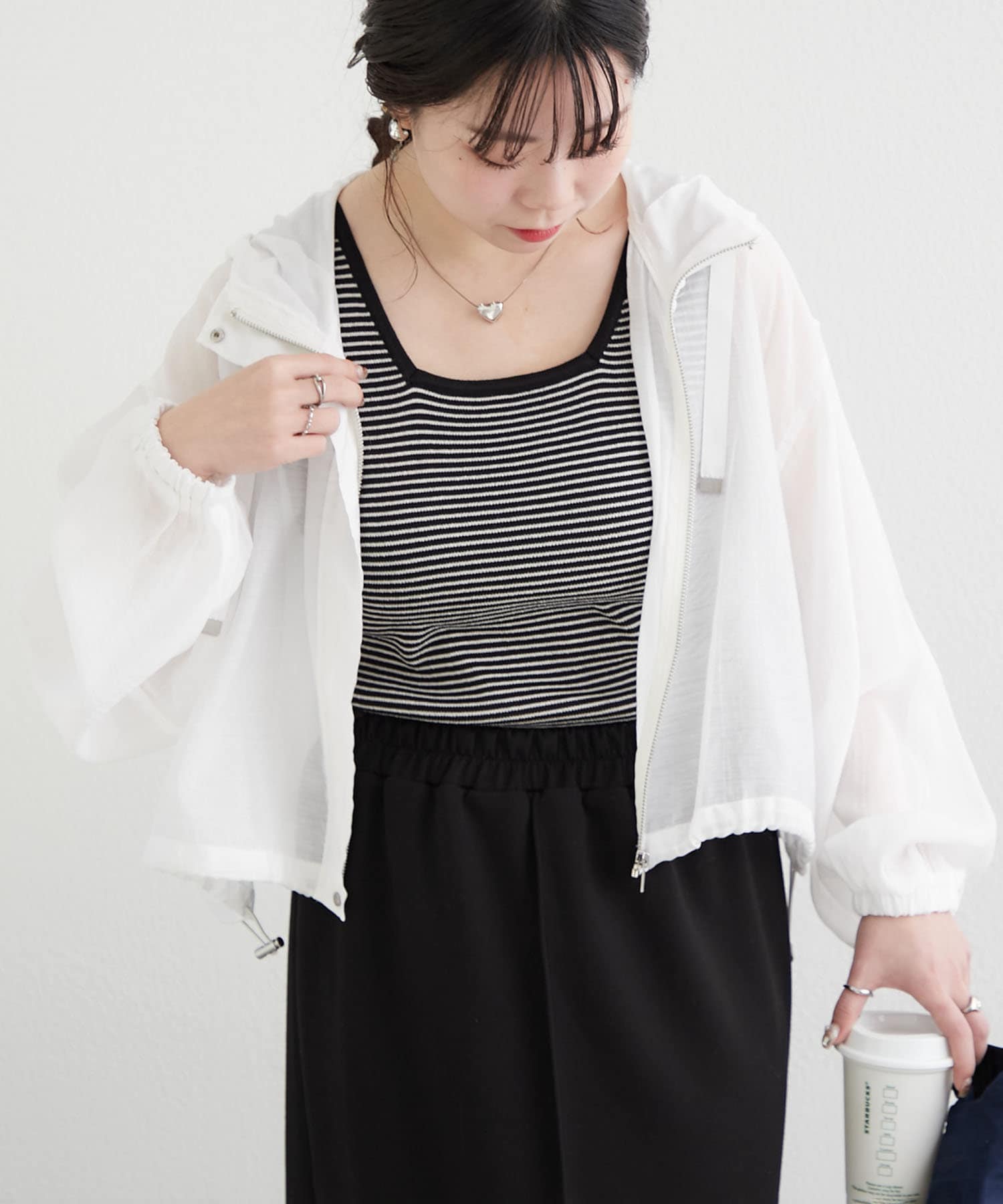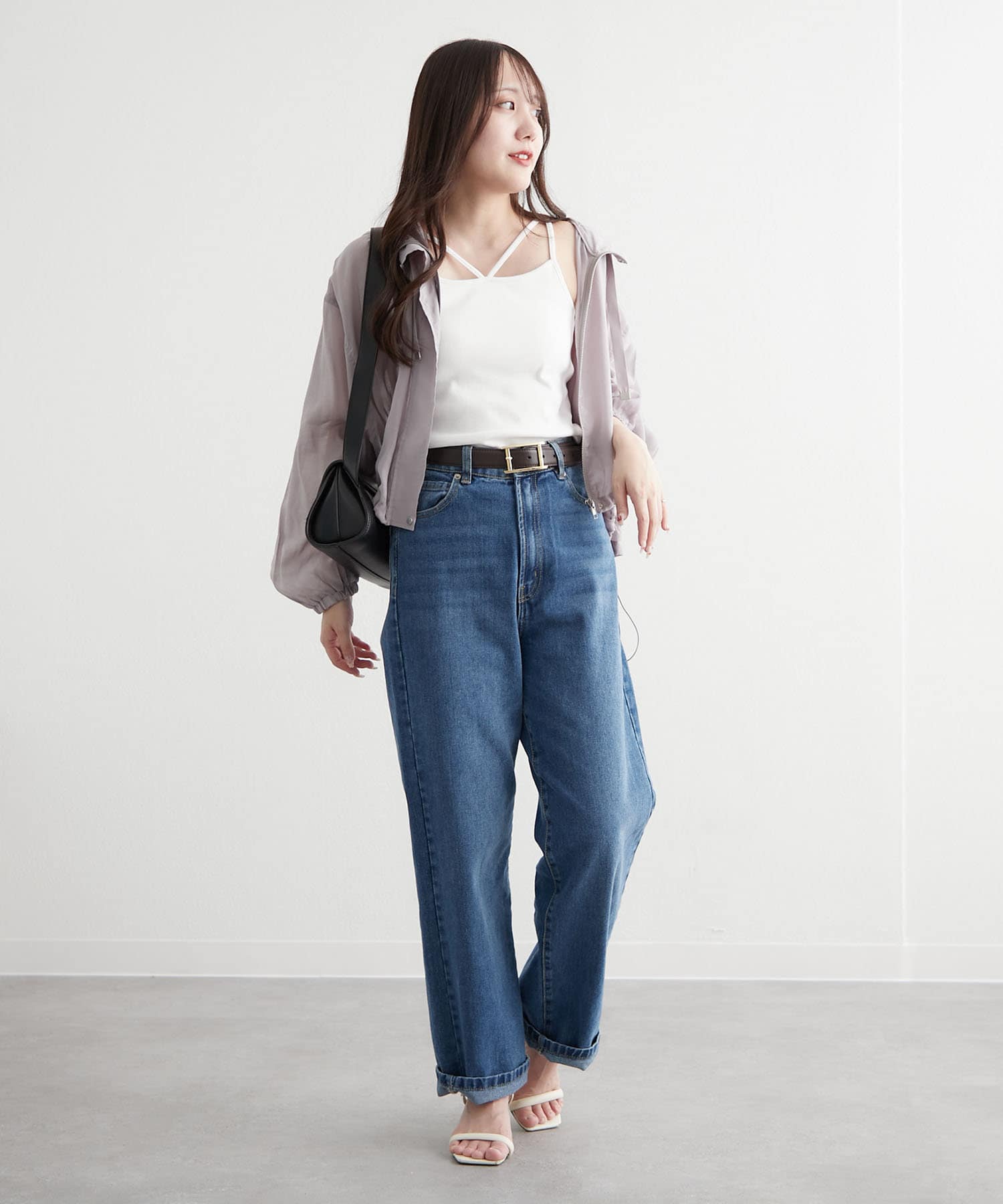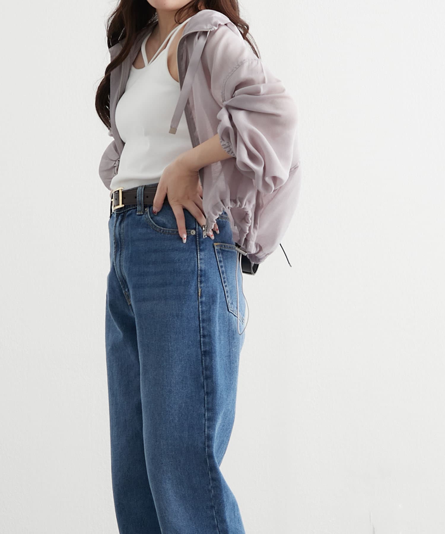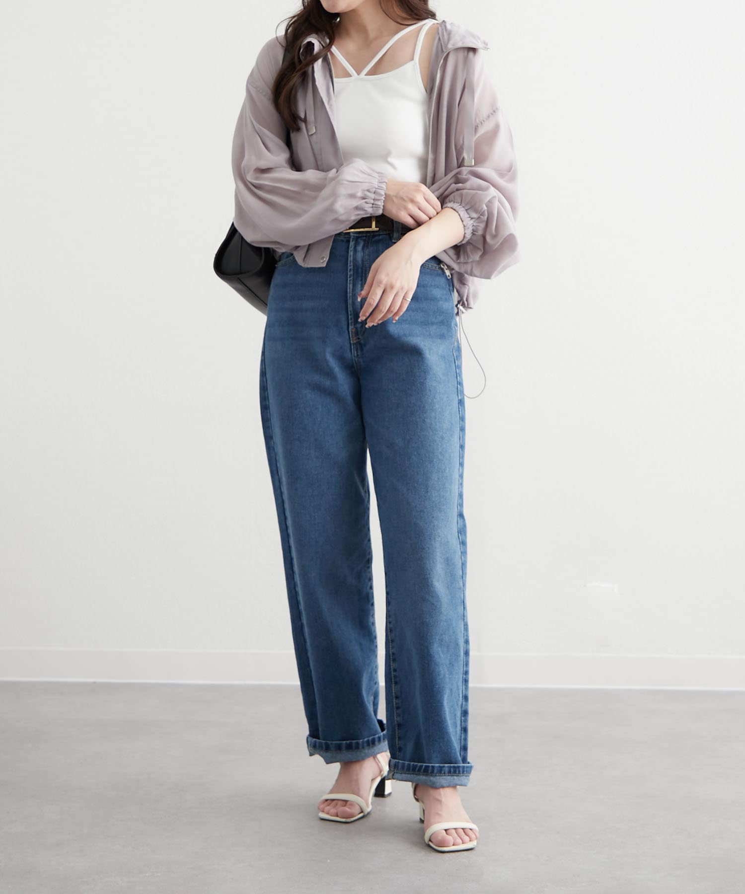 ・ショート丈のアイテムなので、ハイウエストパンツ合わせのスタイルアップコーデもイチオシ