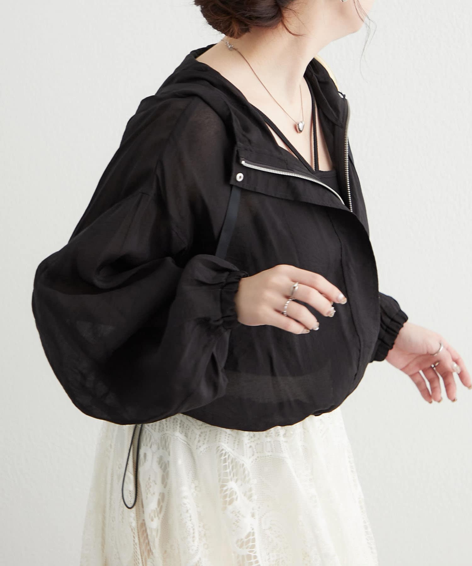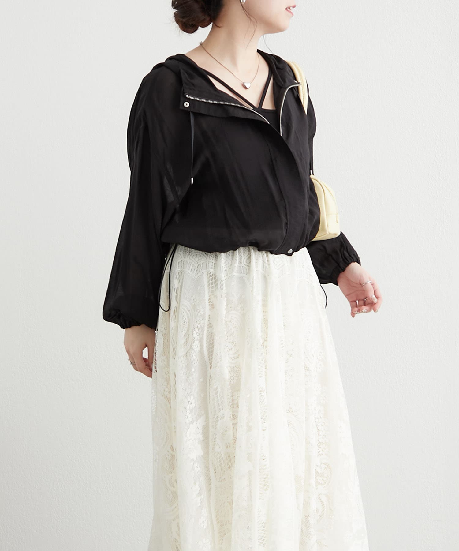 ・程よい透け感で、普段肌見せをしない方にもおすすめできる素材感です