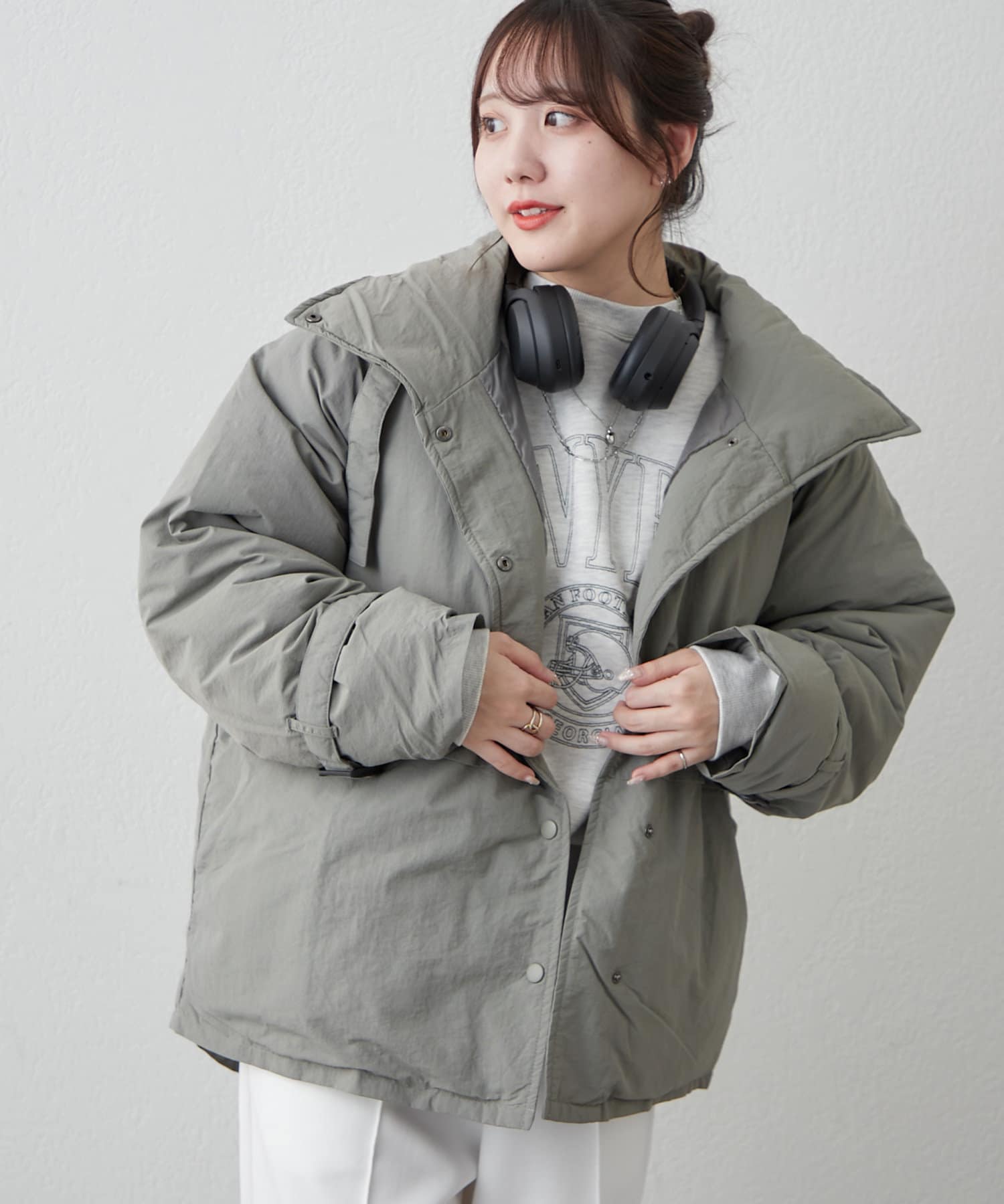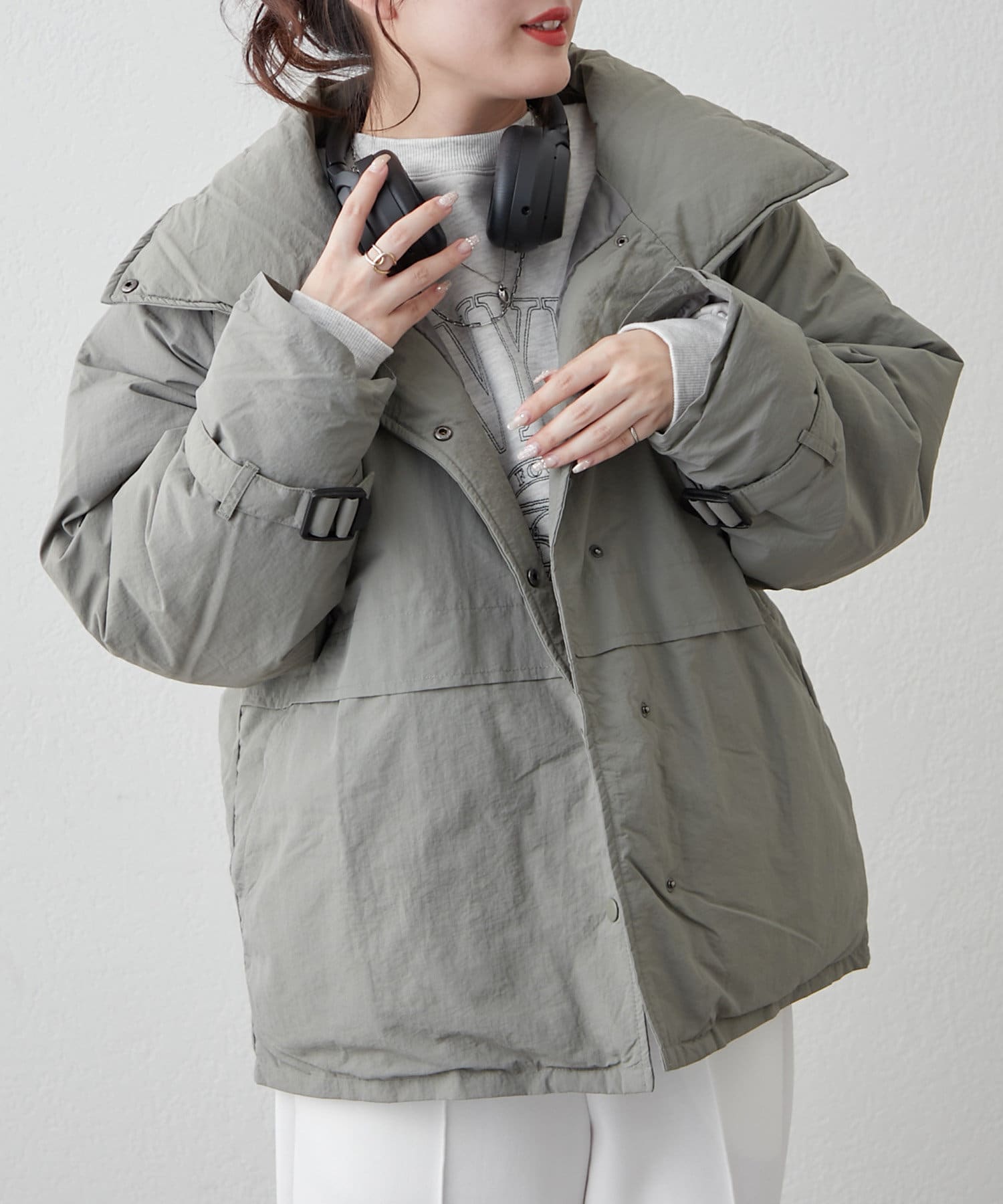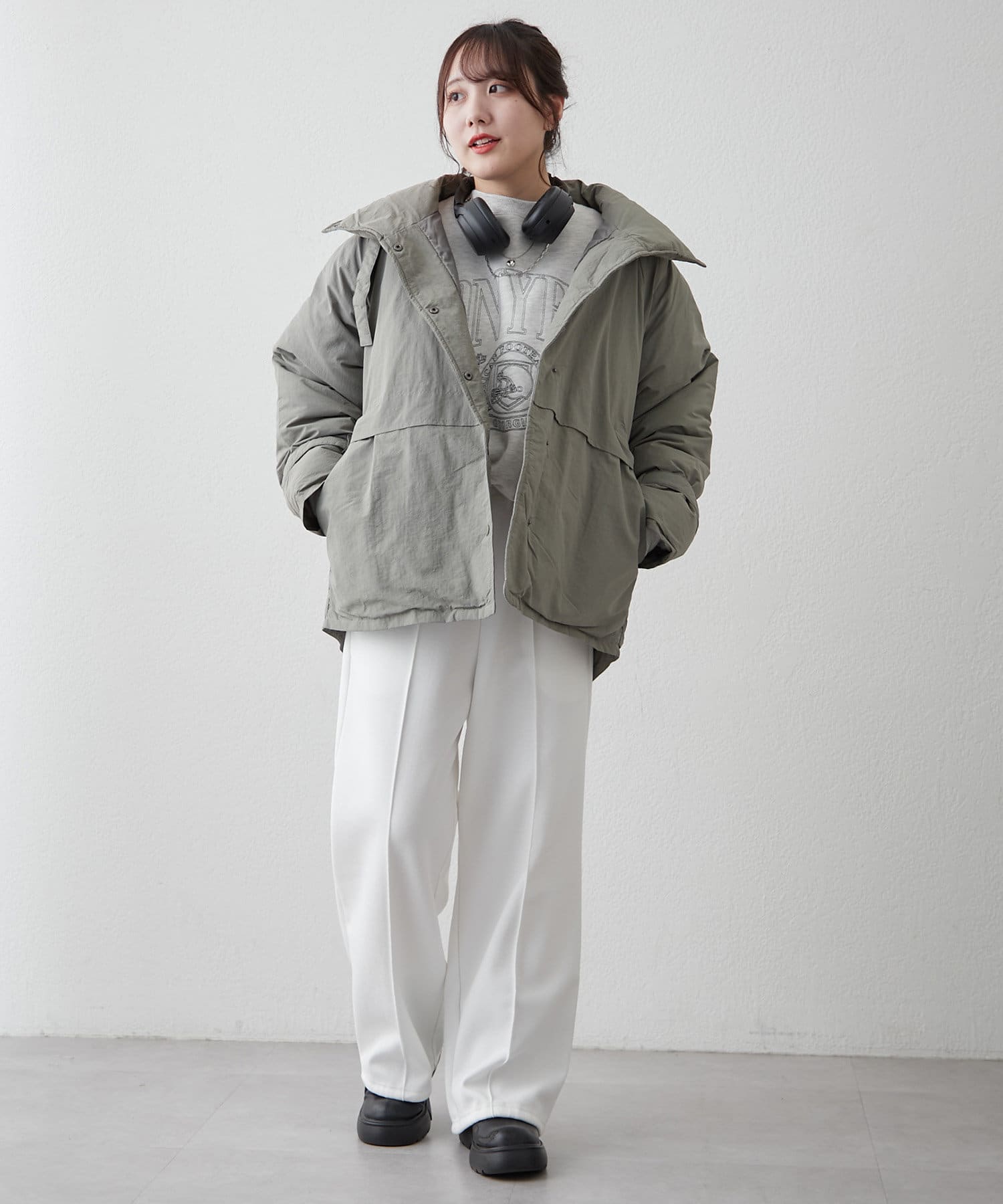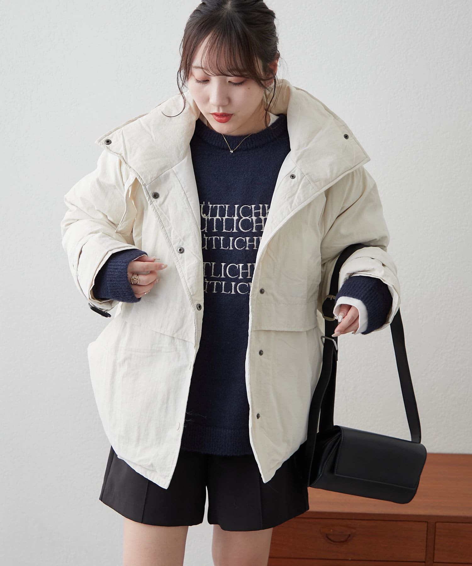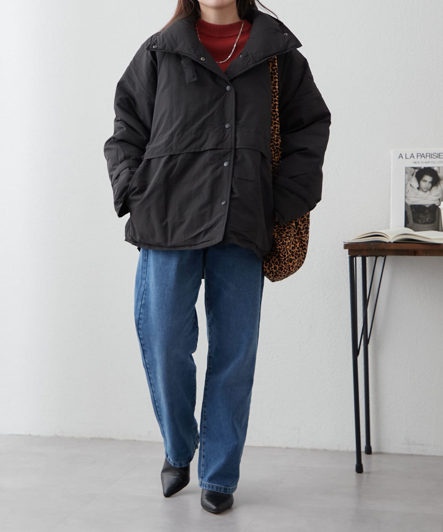 ・スタンドカラーにもなるフェイクダウンジャケット。