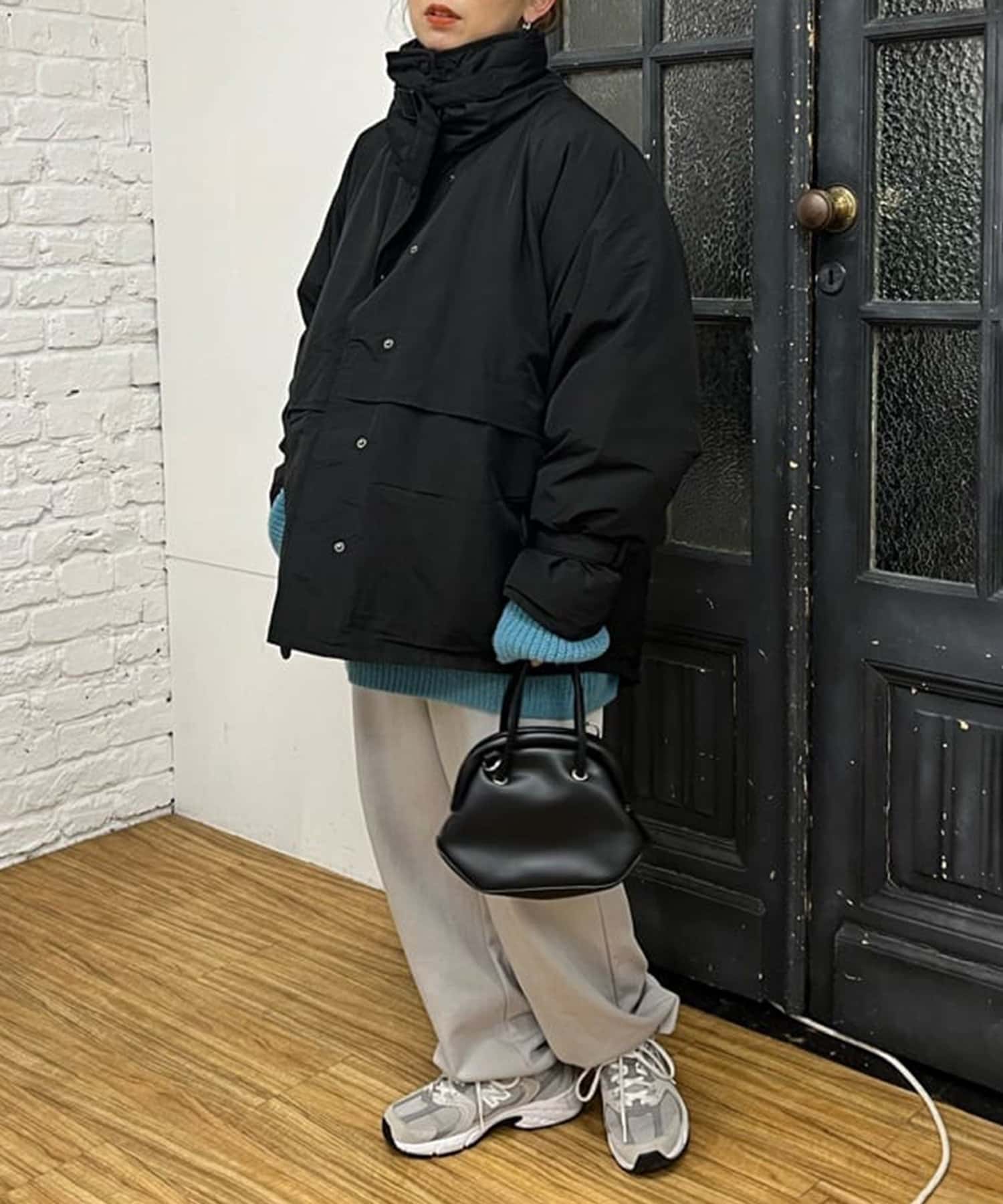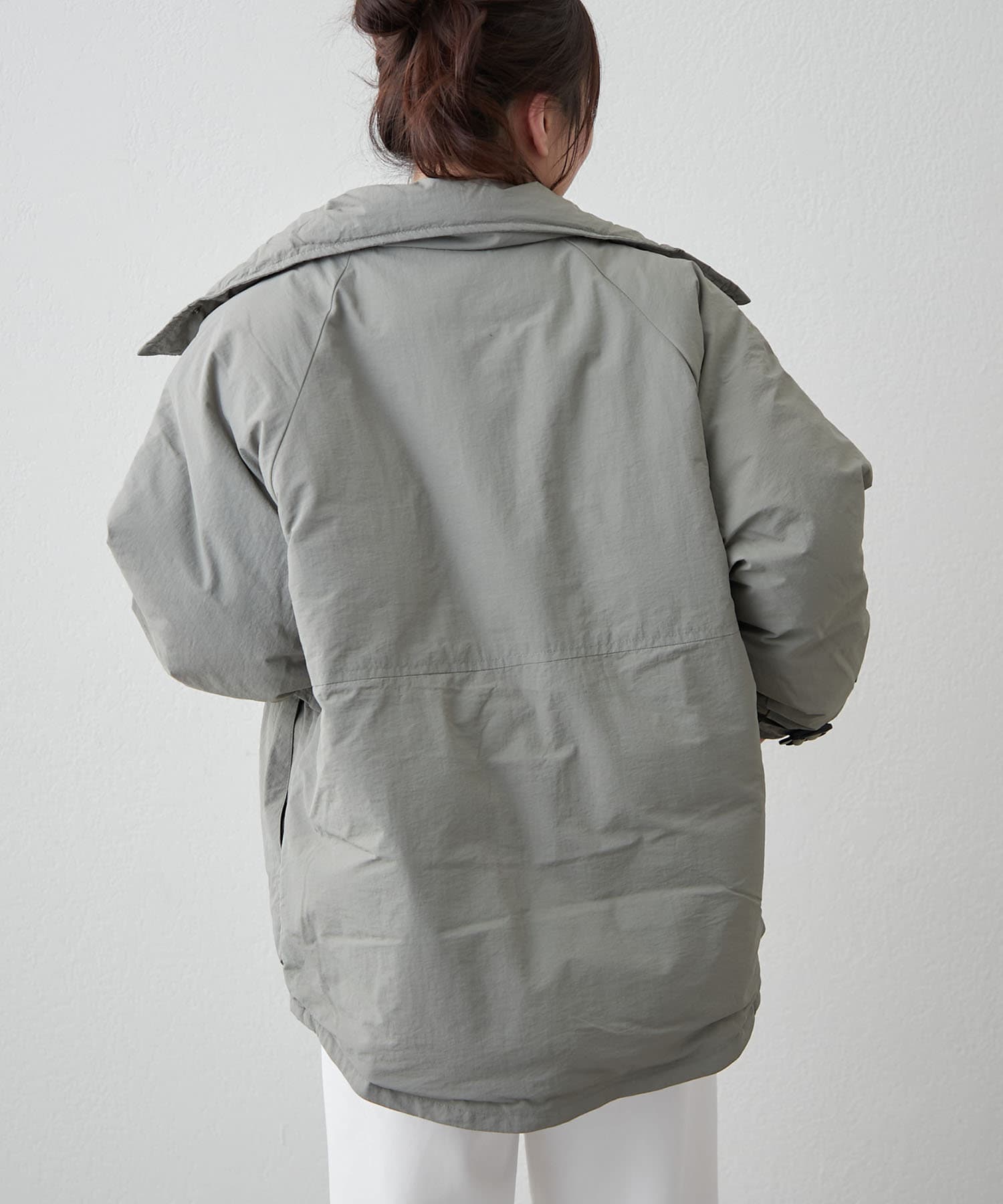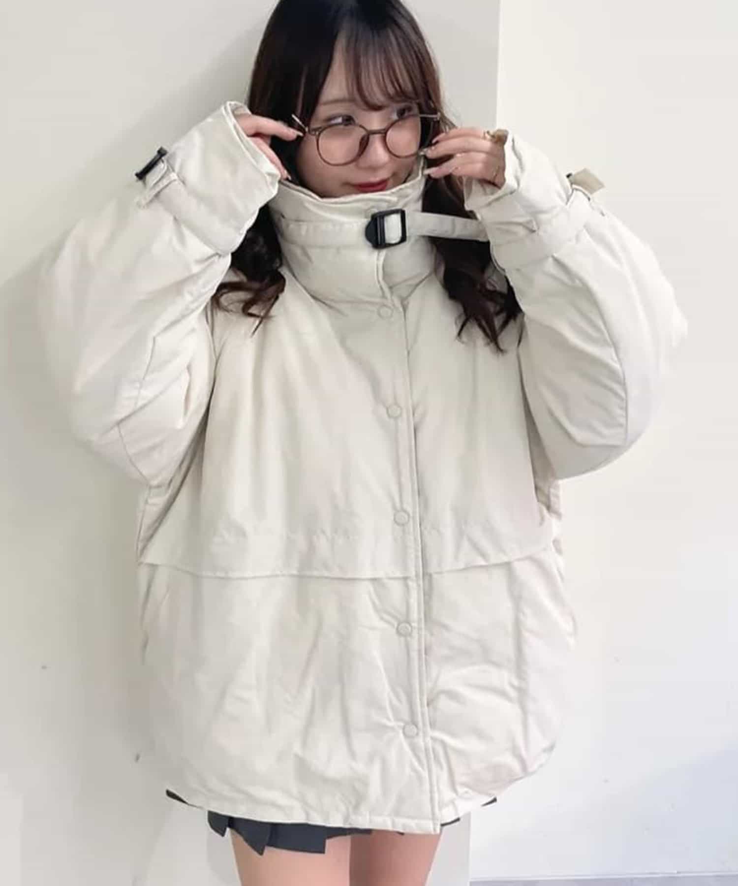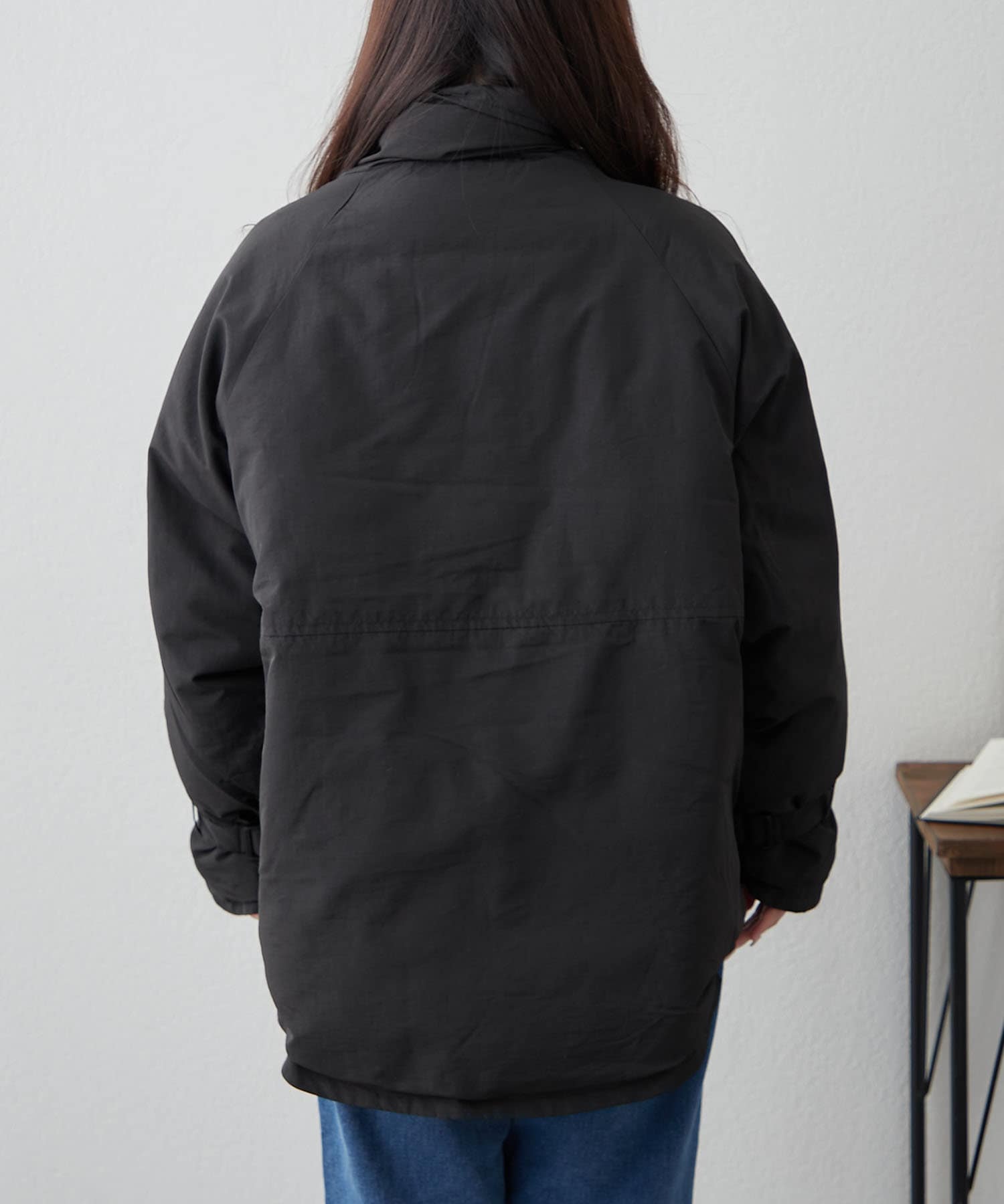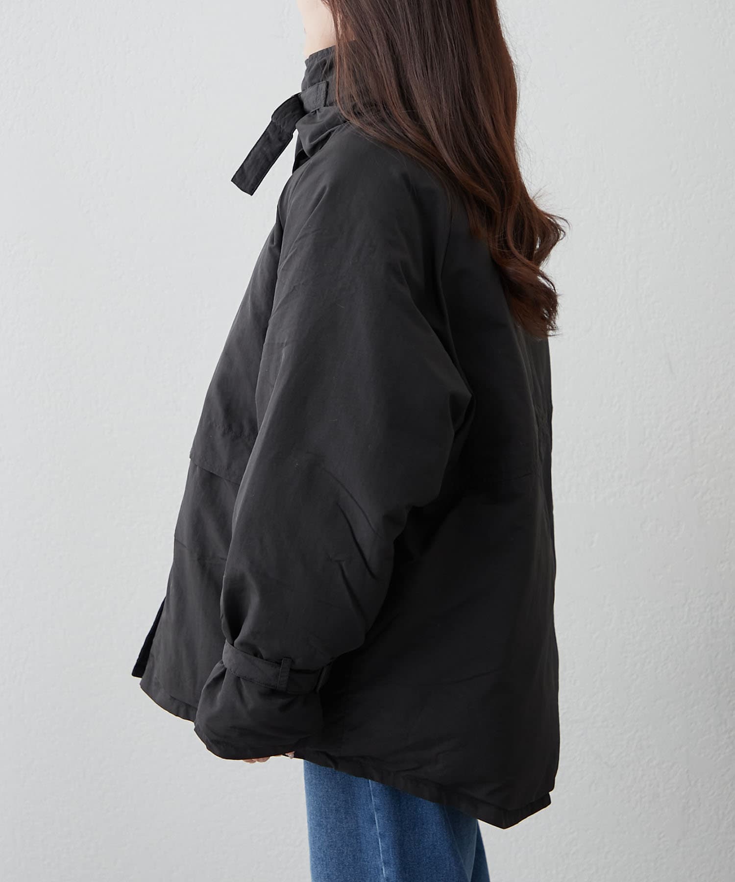 ・スタンドカラーにもなるフェイクダウンジャケット。