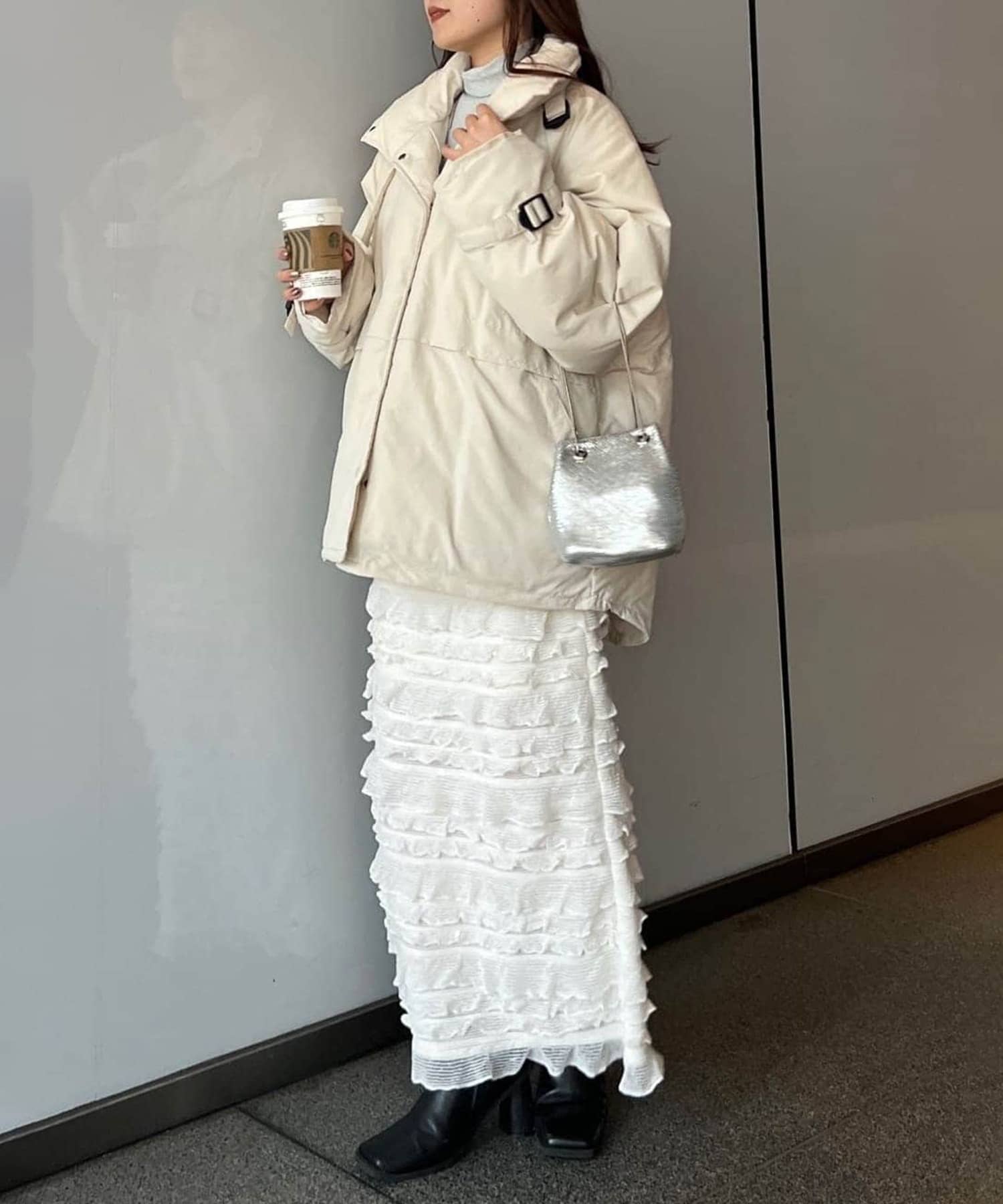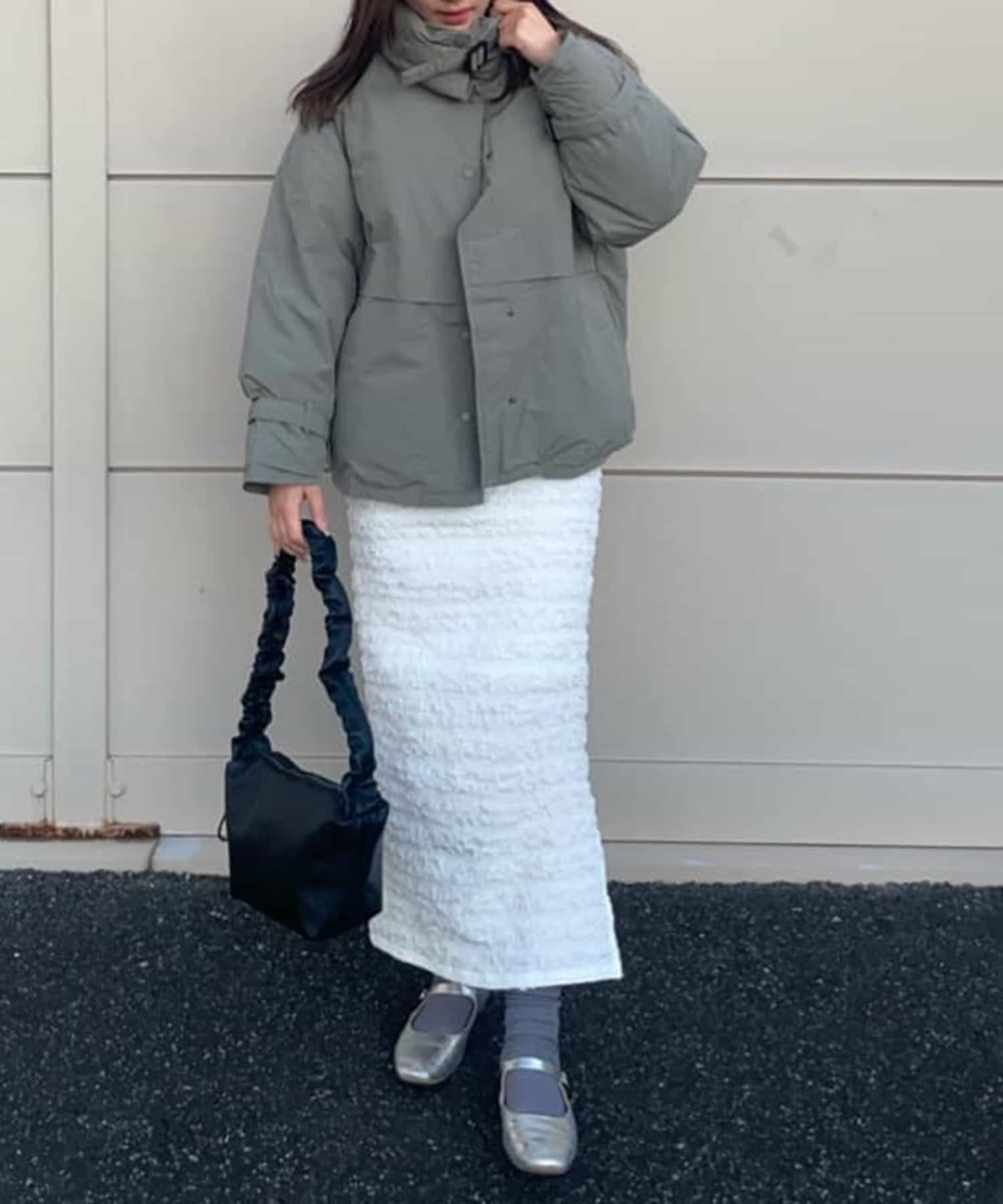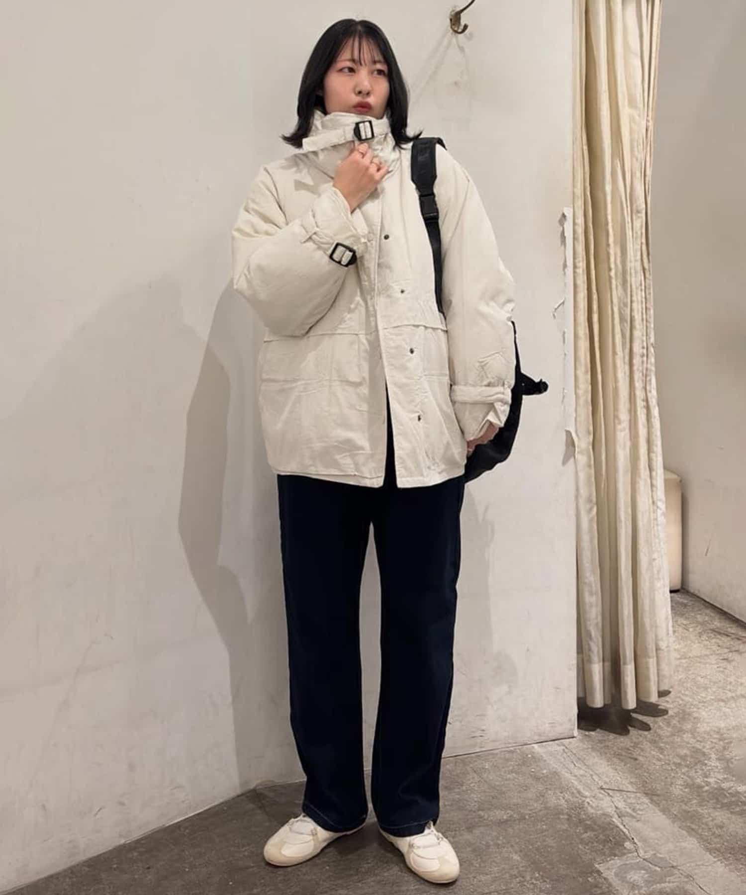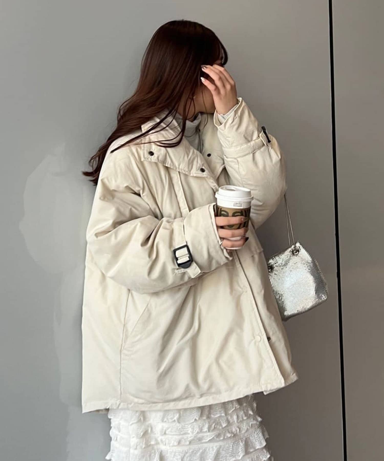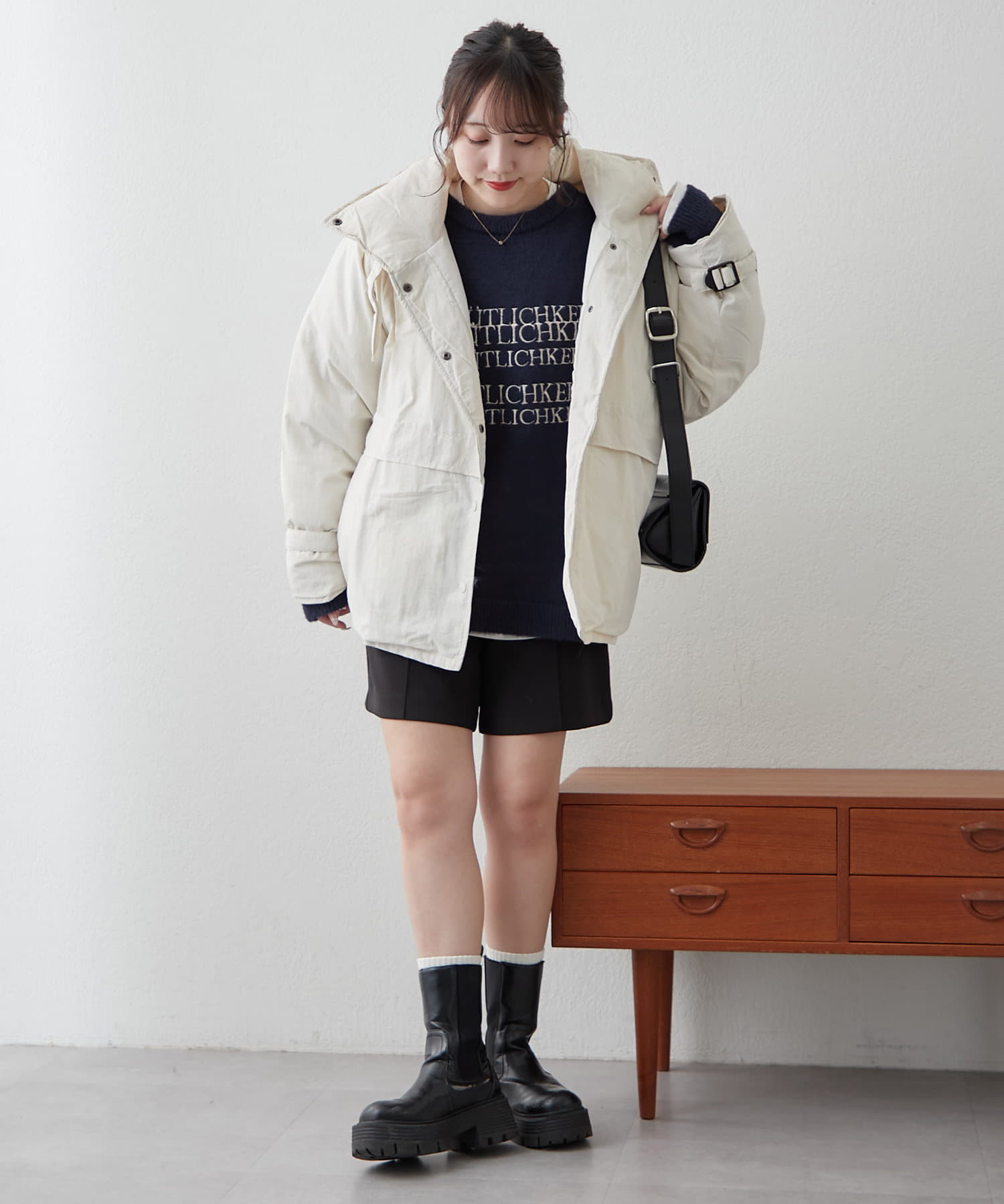 ・スタンドカラーにもなるフェイクダウンジャケット。