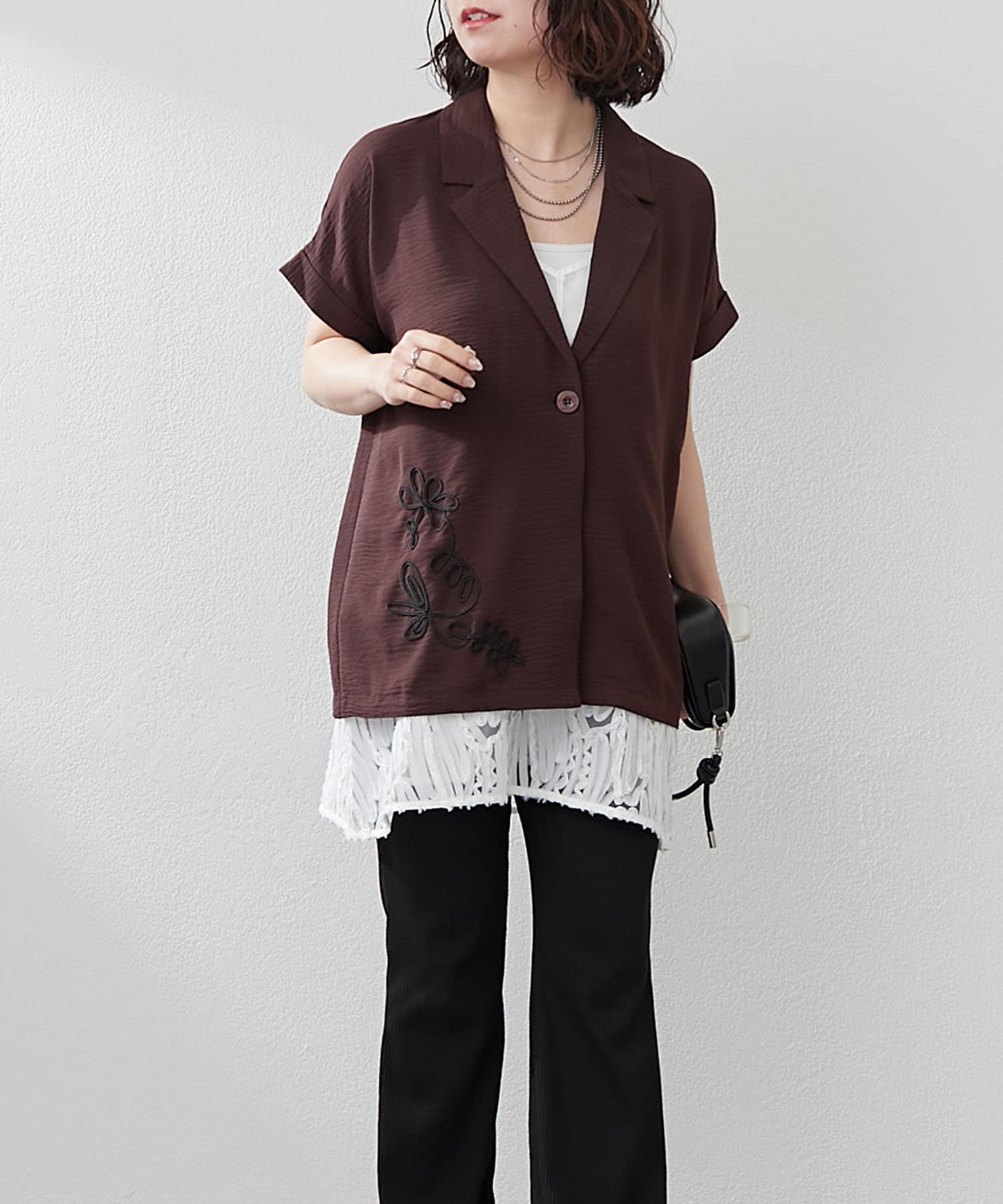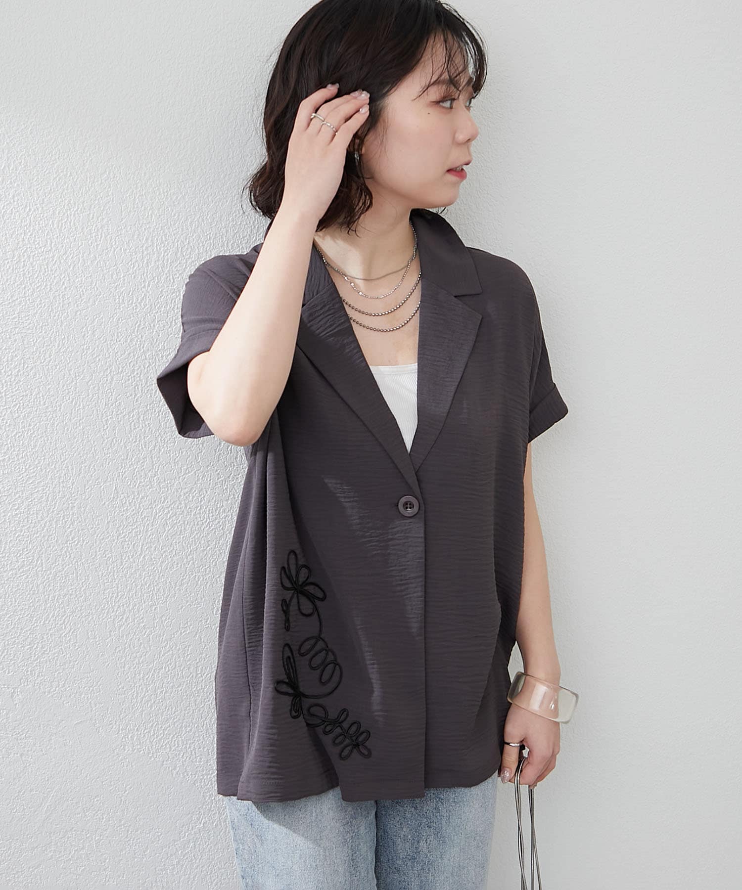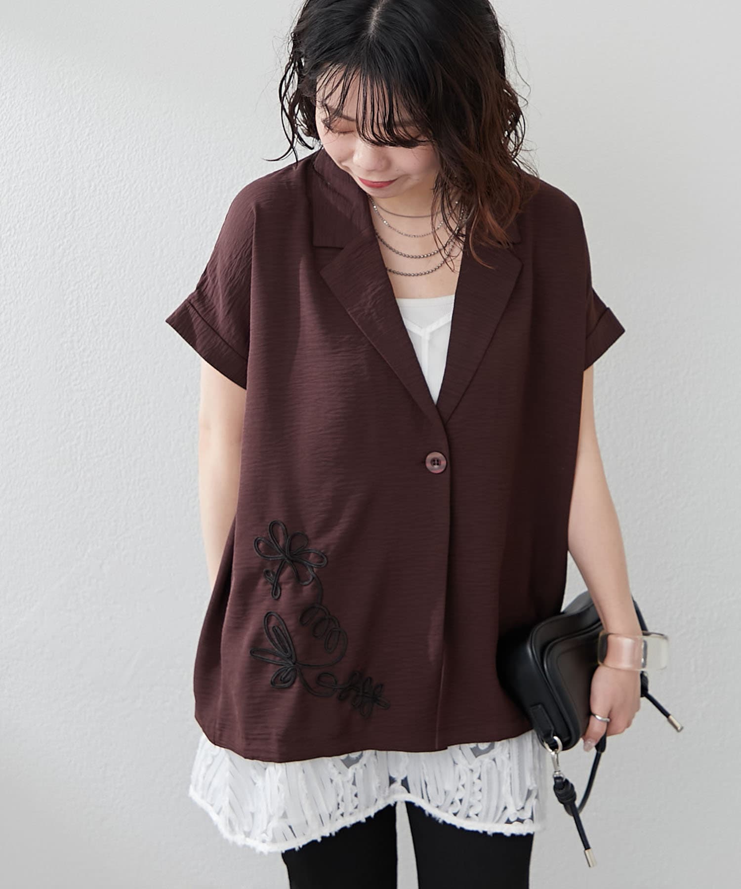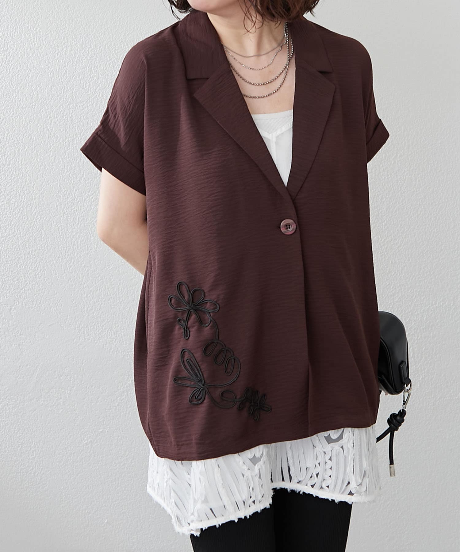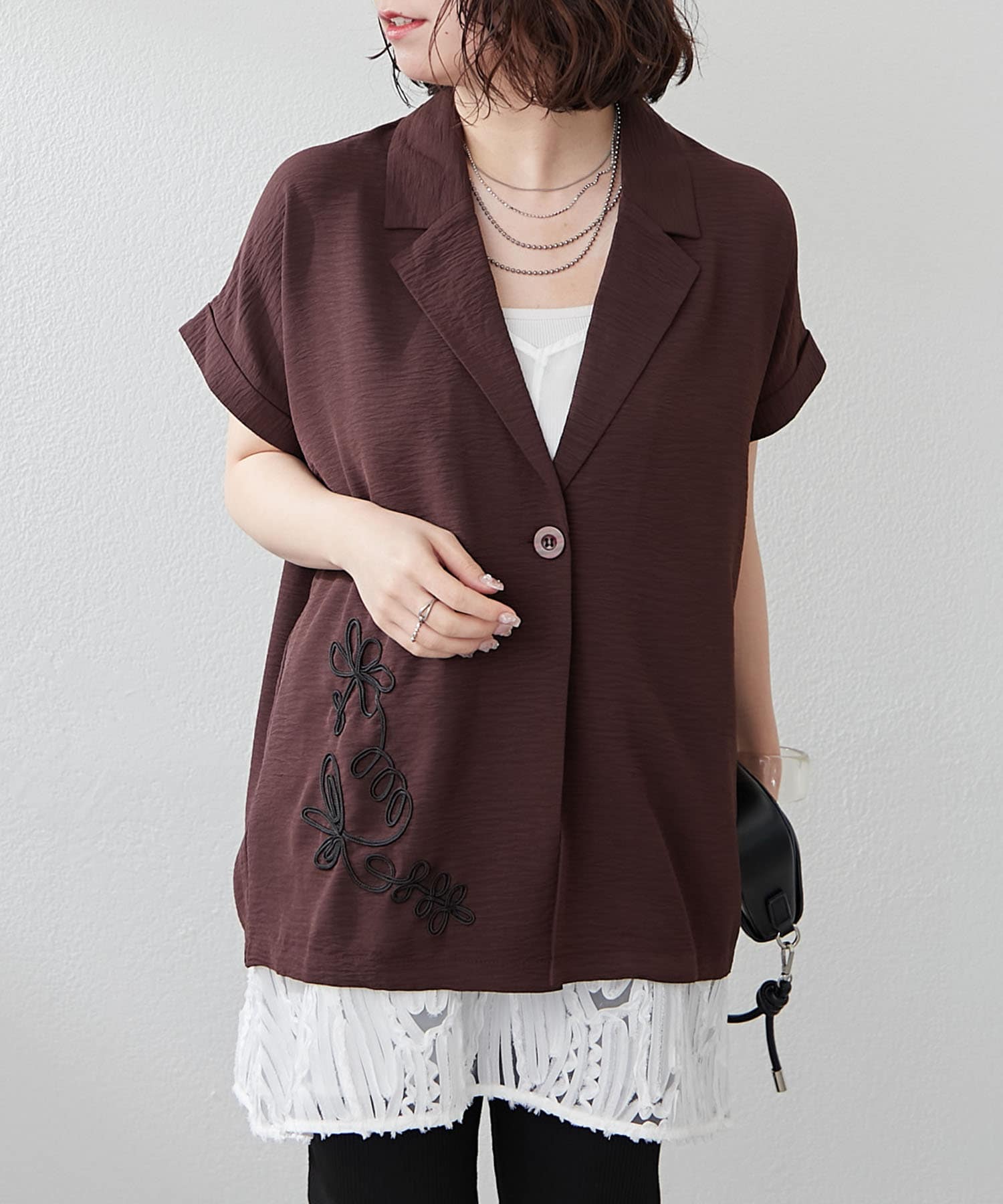 ・トレンドのコード刺繍デザインのテーラードジャケット
