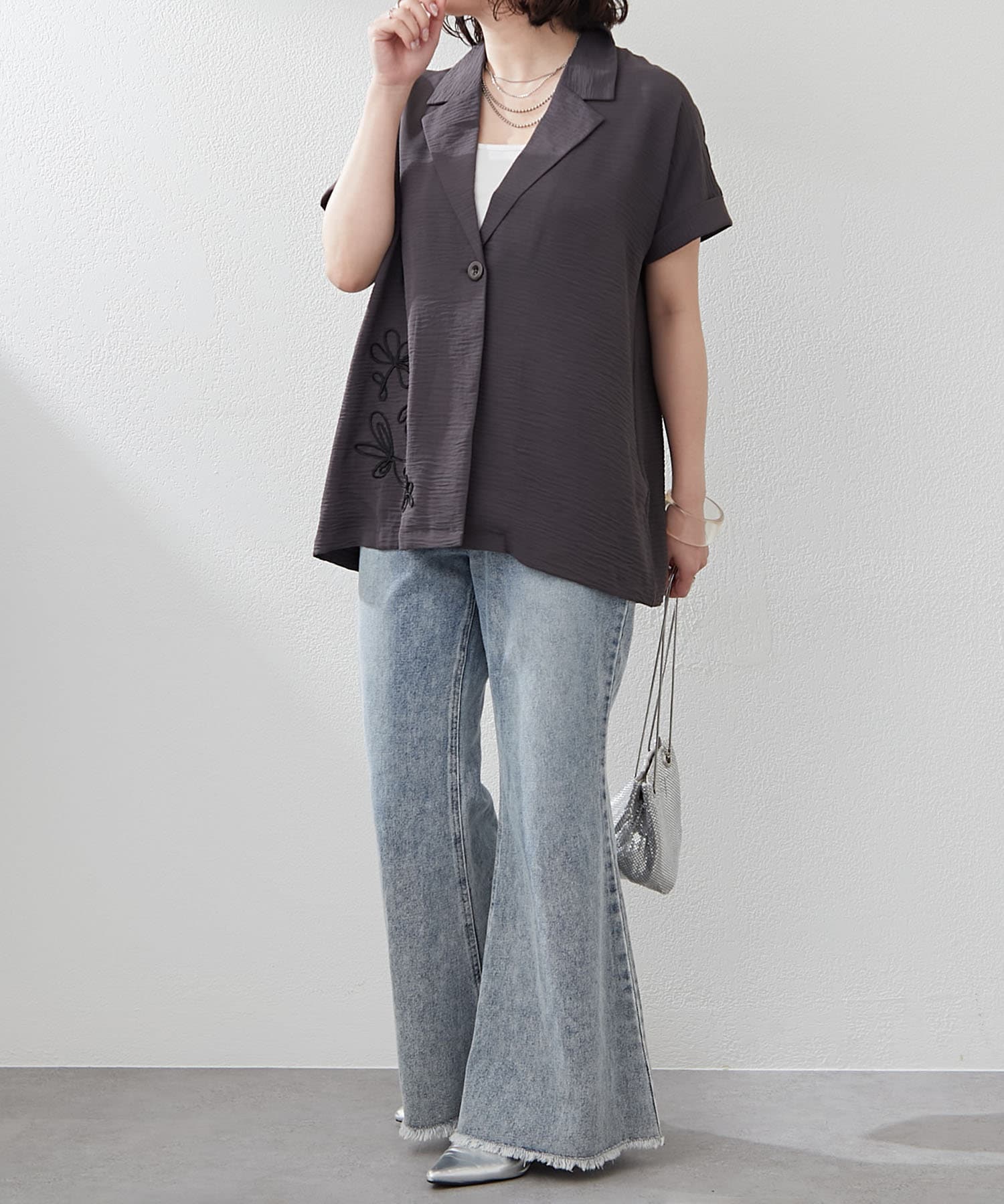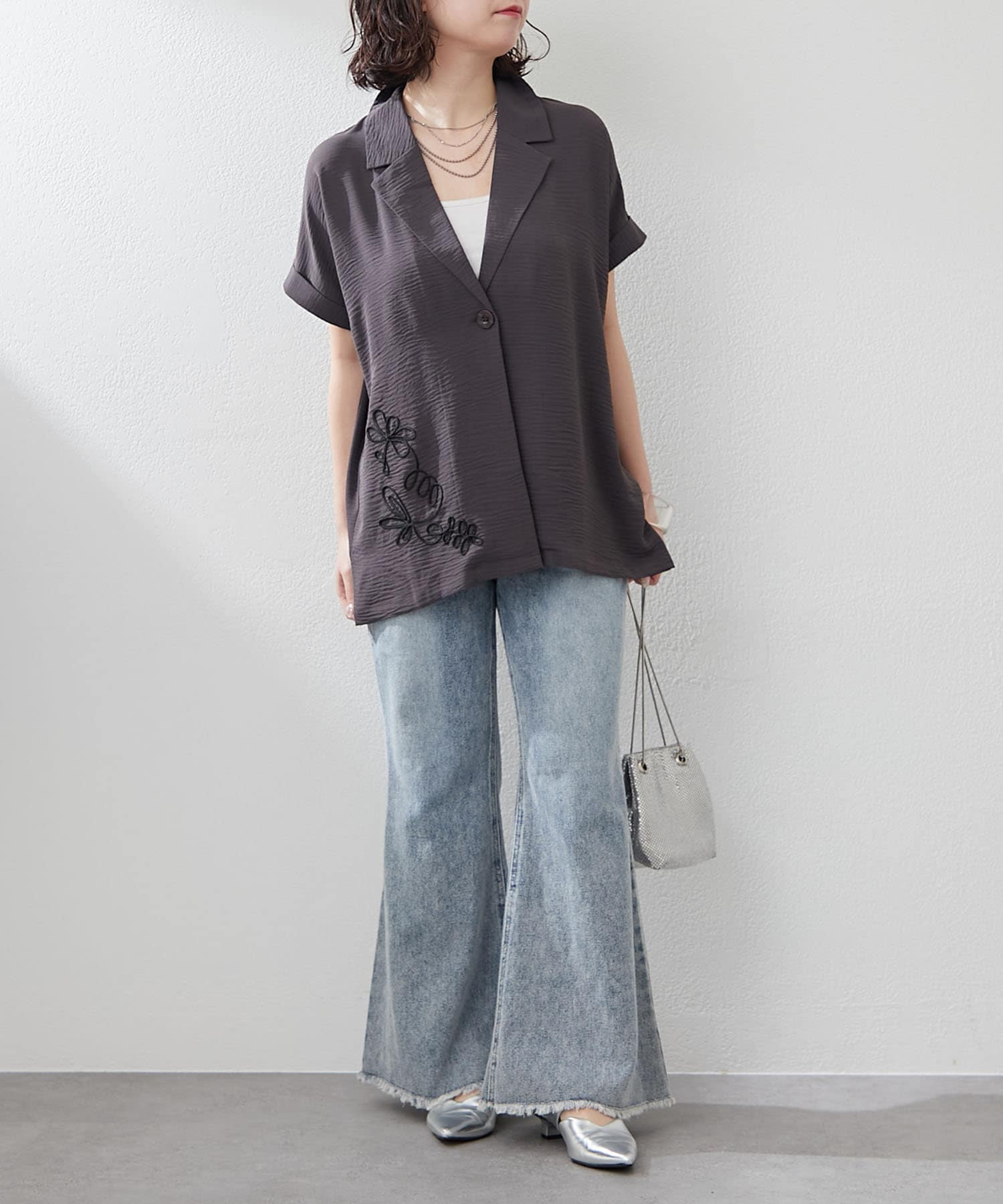 ・落ち感のある柔らかい素材感がこなれ感を演出する一枚