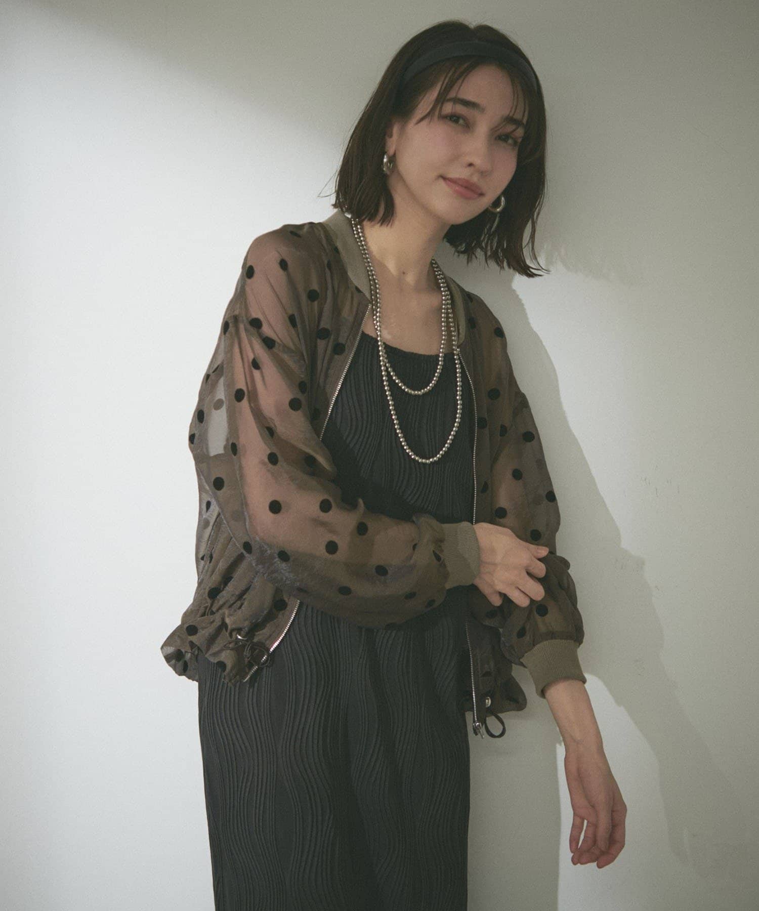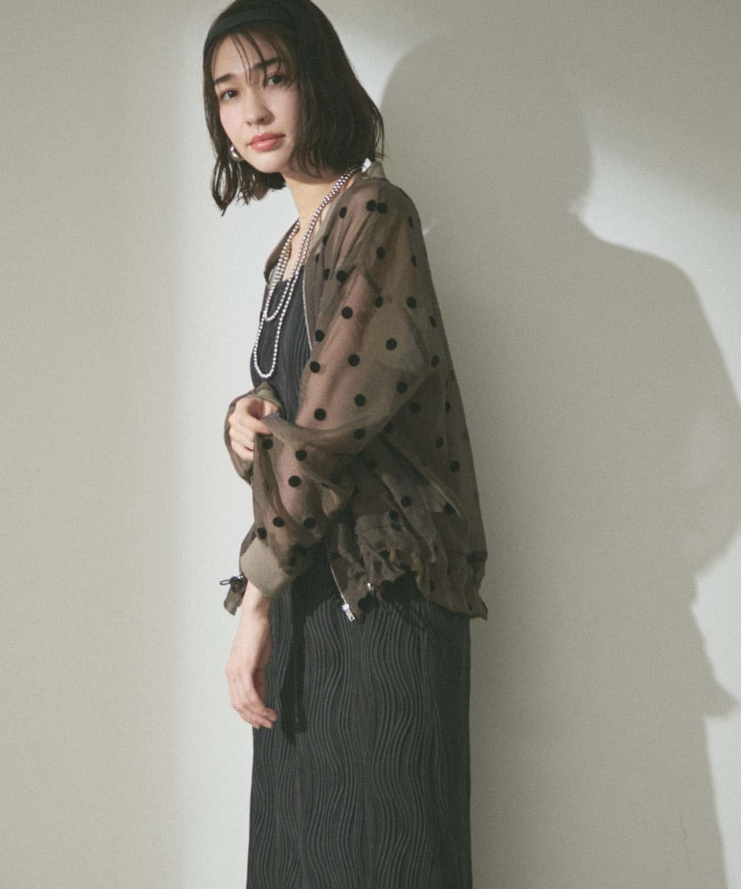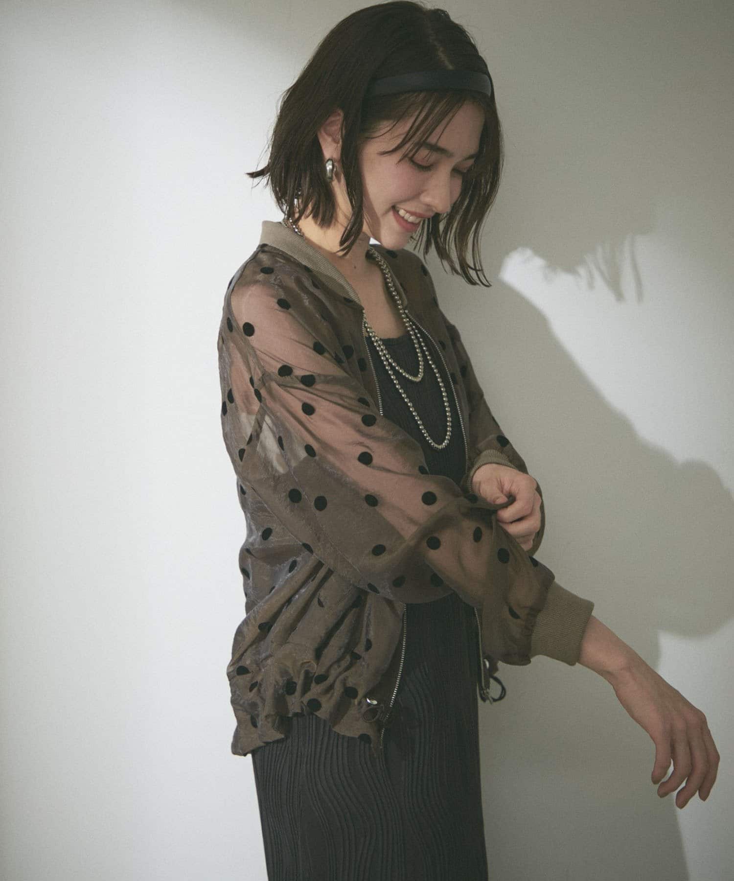 ・インナーによっていろいろな表情を見せてくれるシアー素材のブルゾン