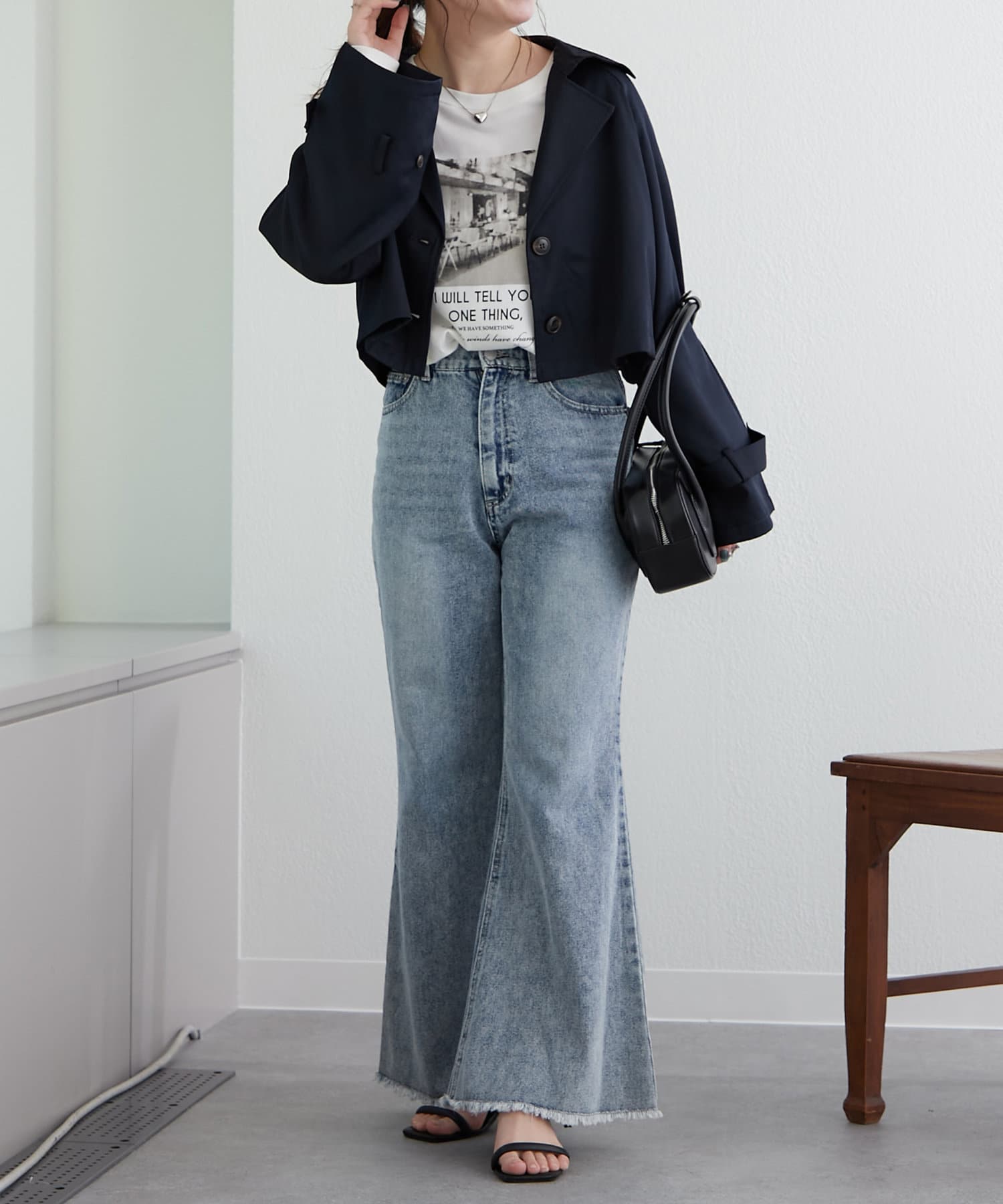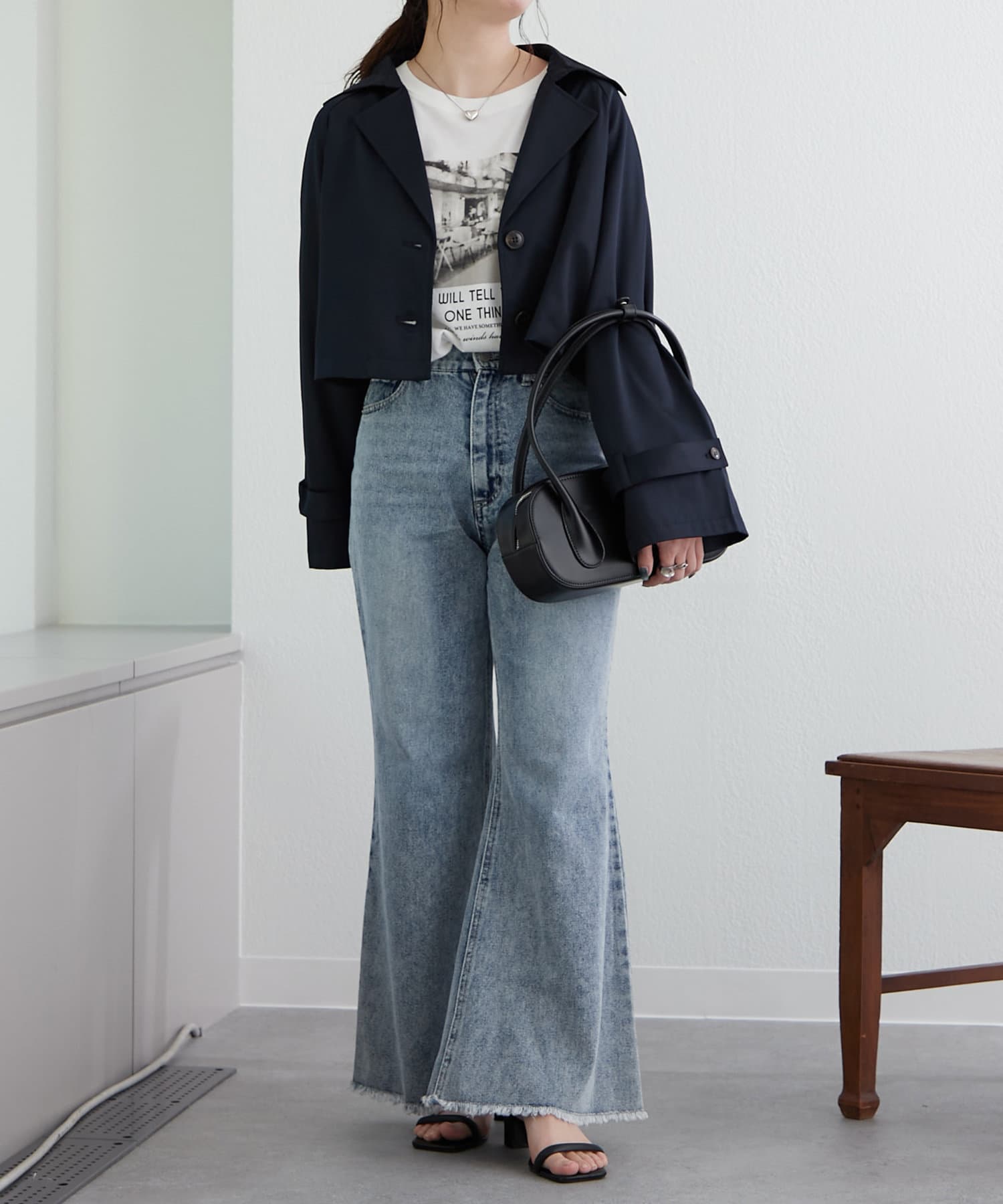・ショートジャケットにデニムを合わせたカジュアルなスタイリングも◎
