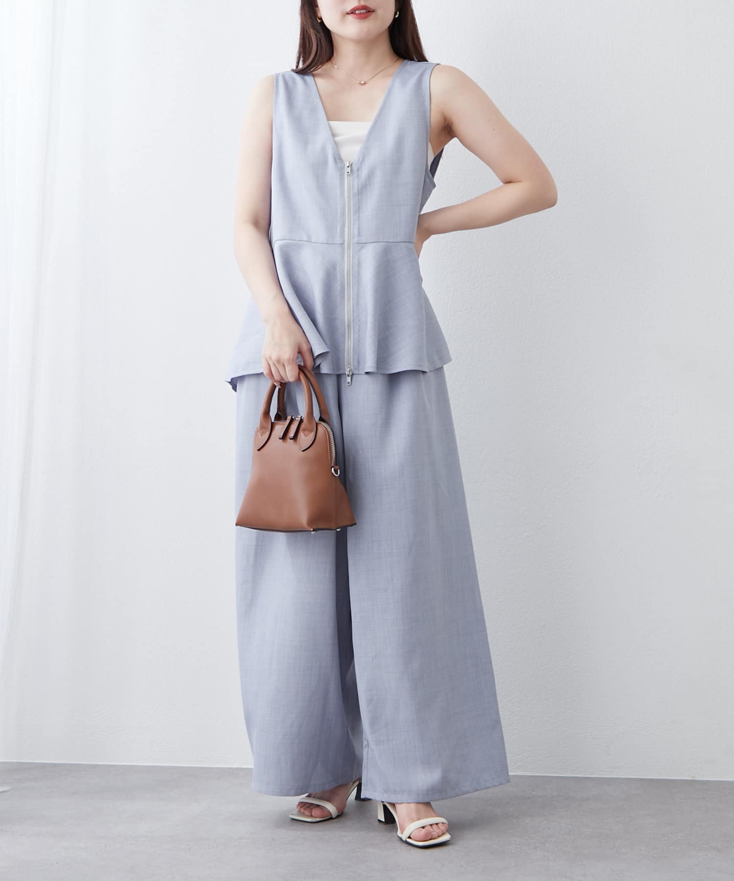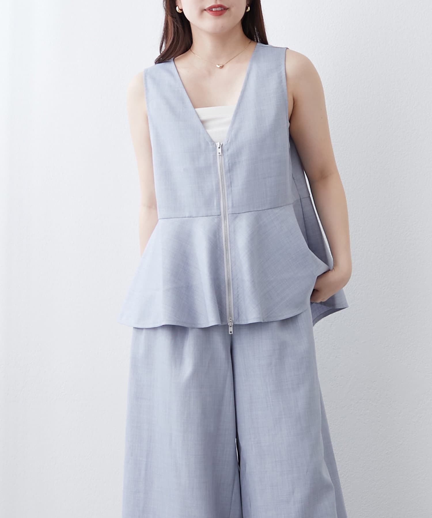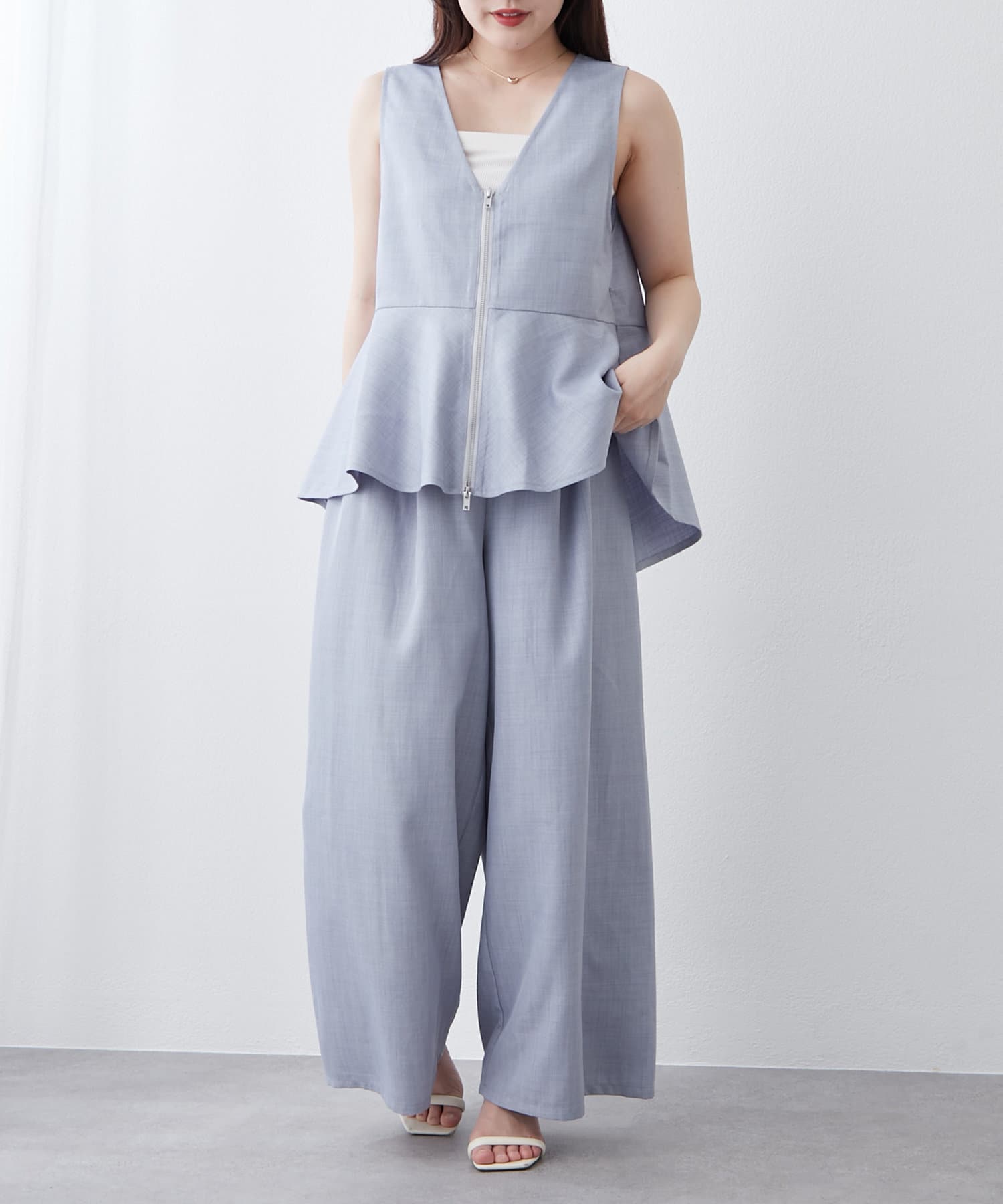 【RMAF】【セットアップ】前ZIPペプラムベスト&ワイドパンツ