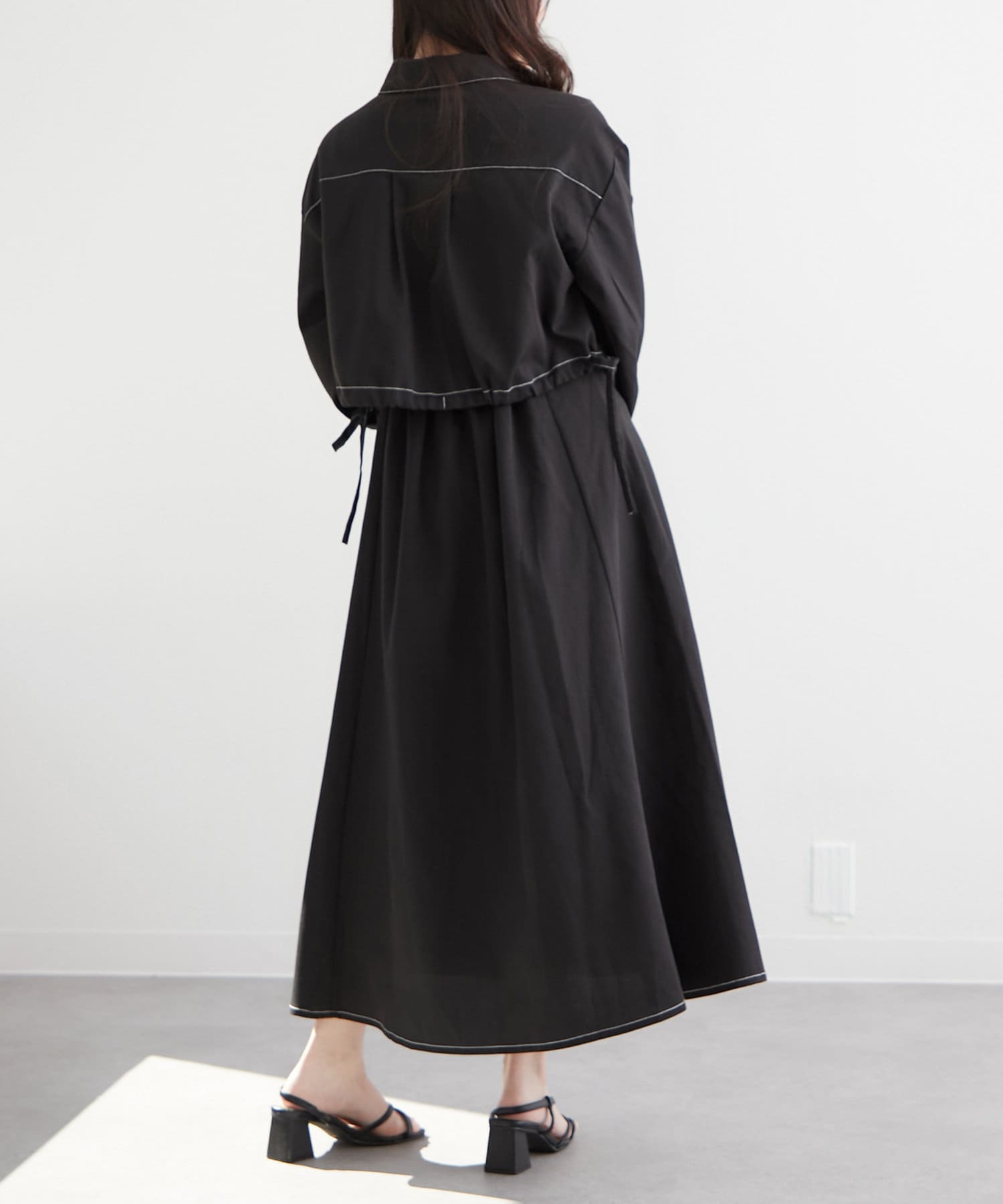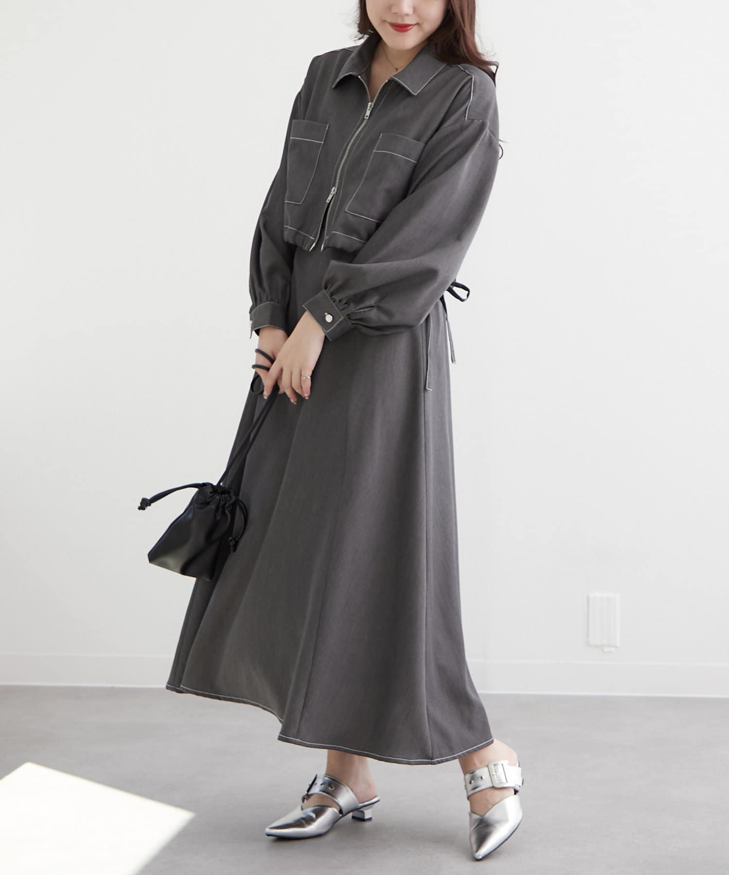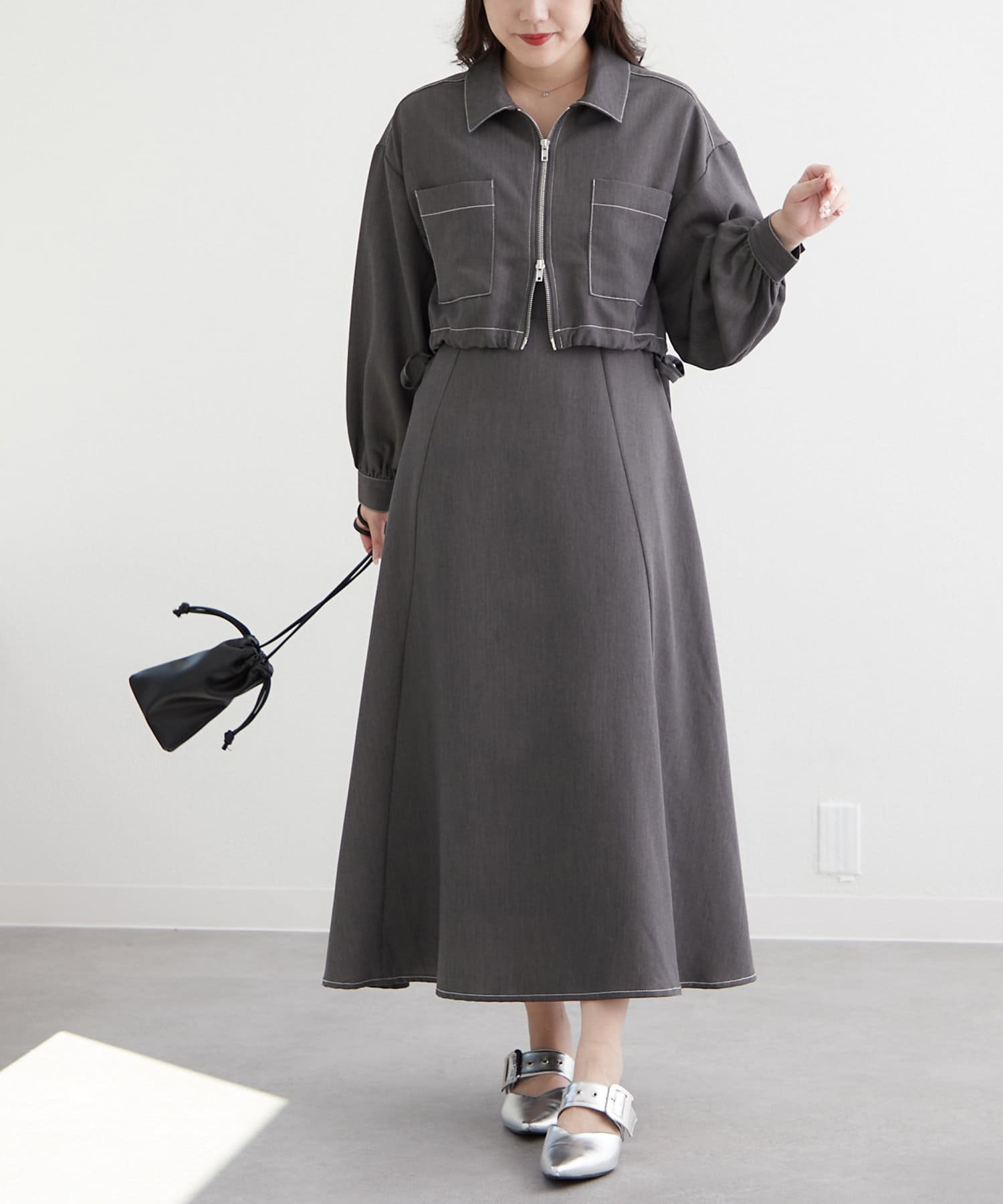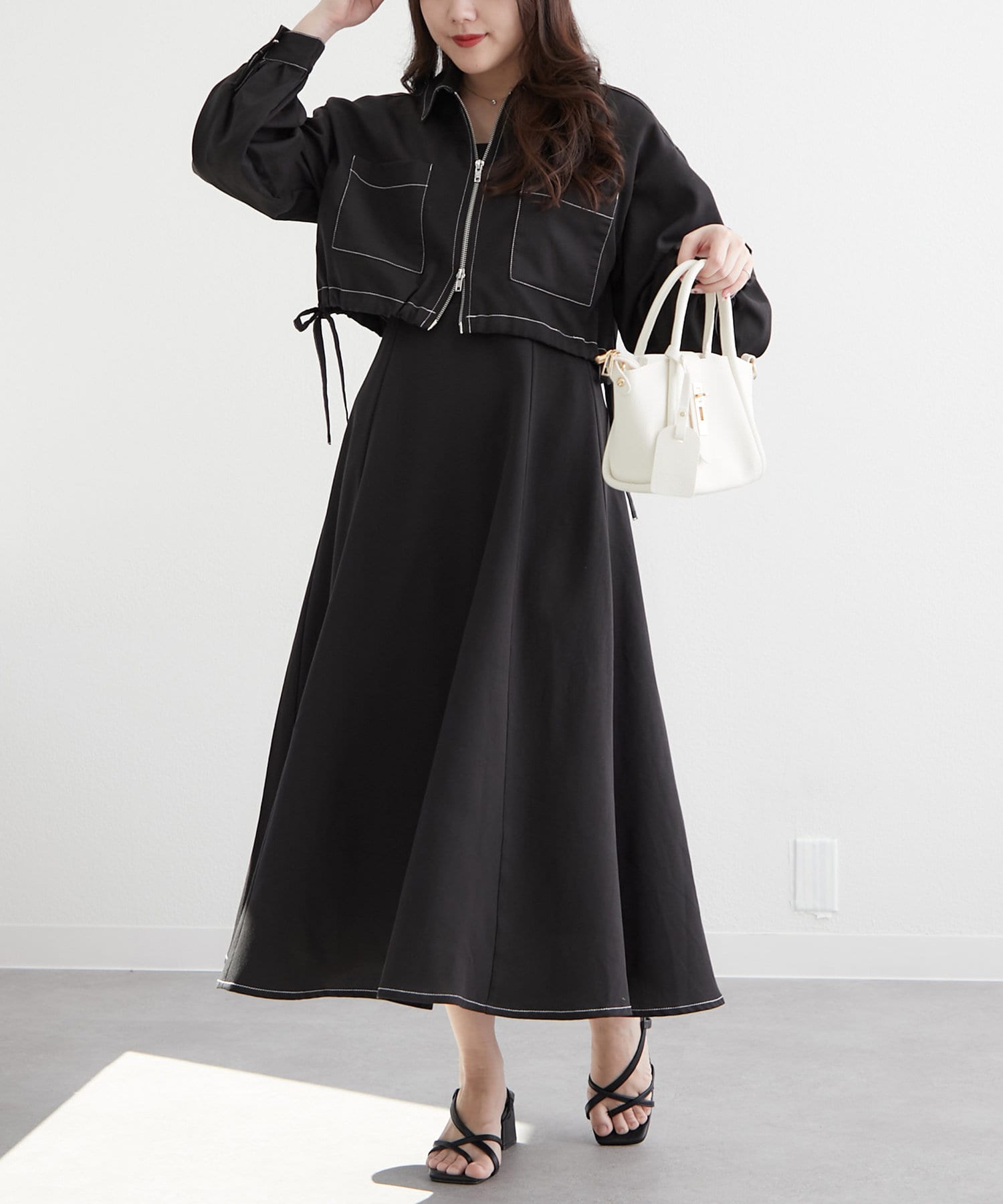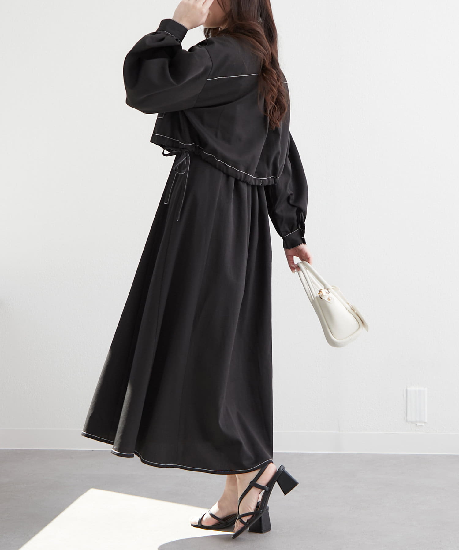 ・ステッチ配色がコーデにメリハリをプラスするジャケットとワンピースのセットアイテム