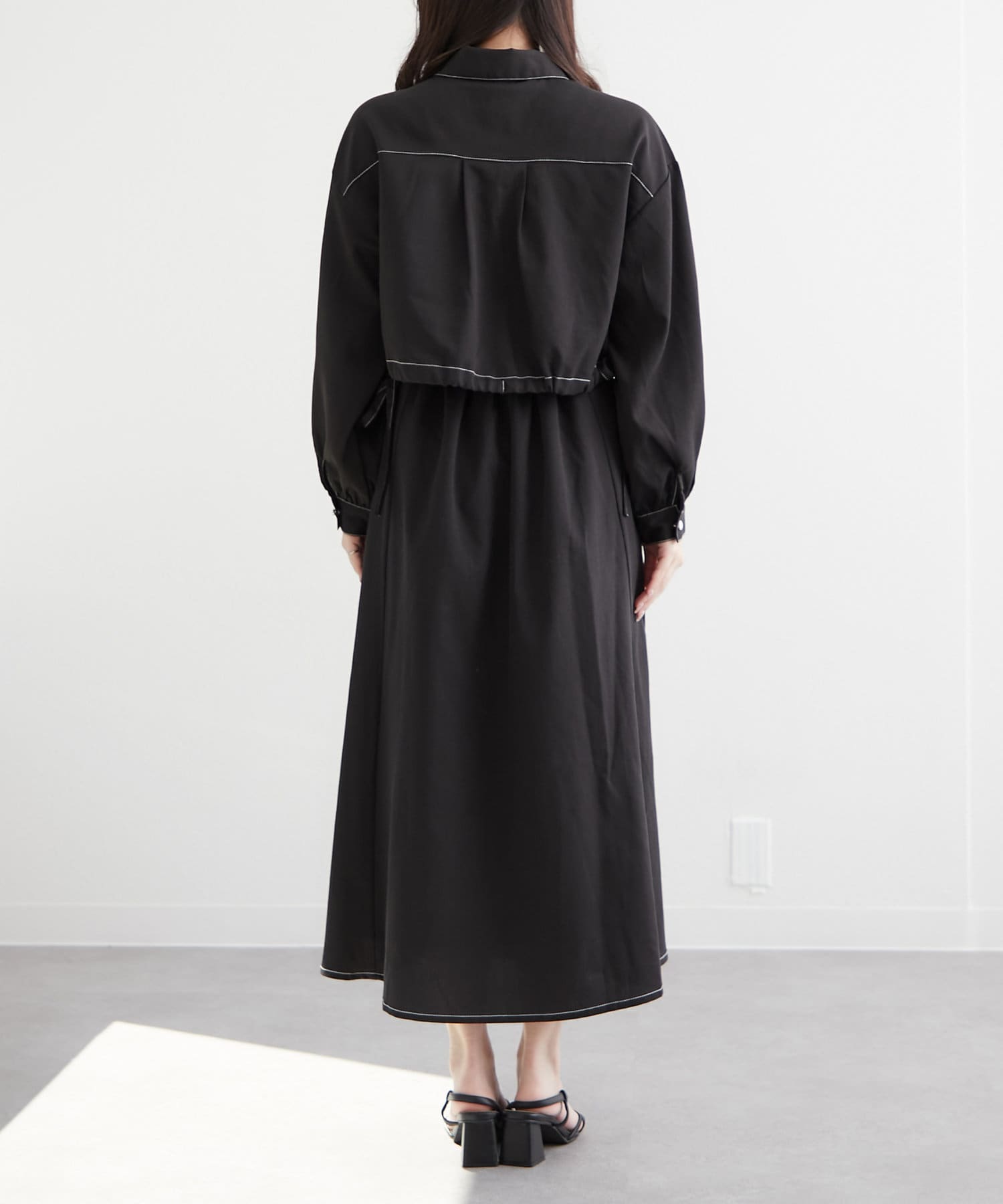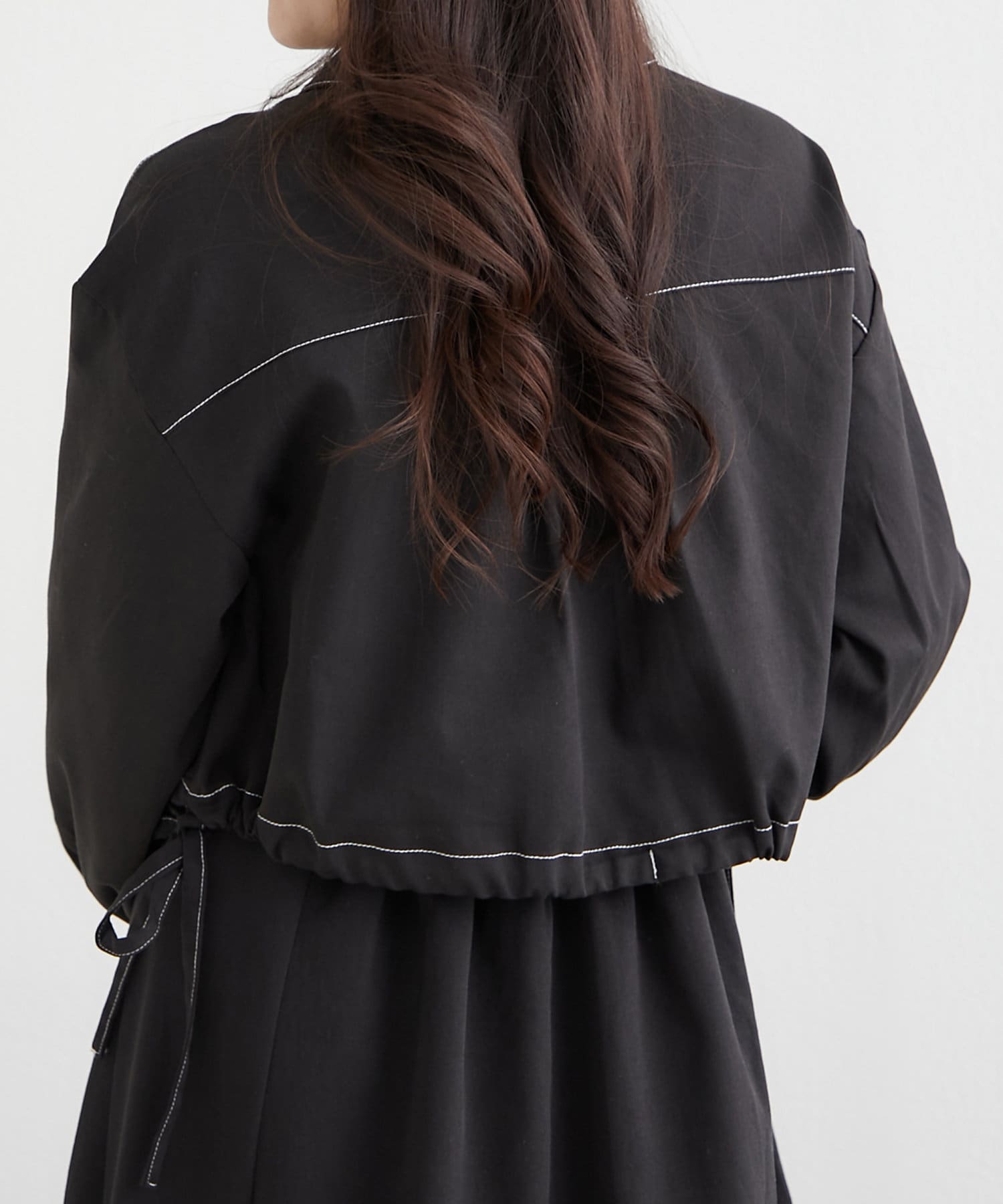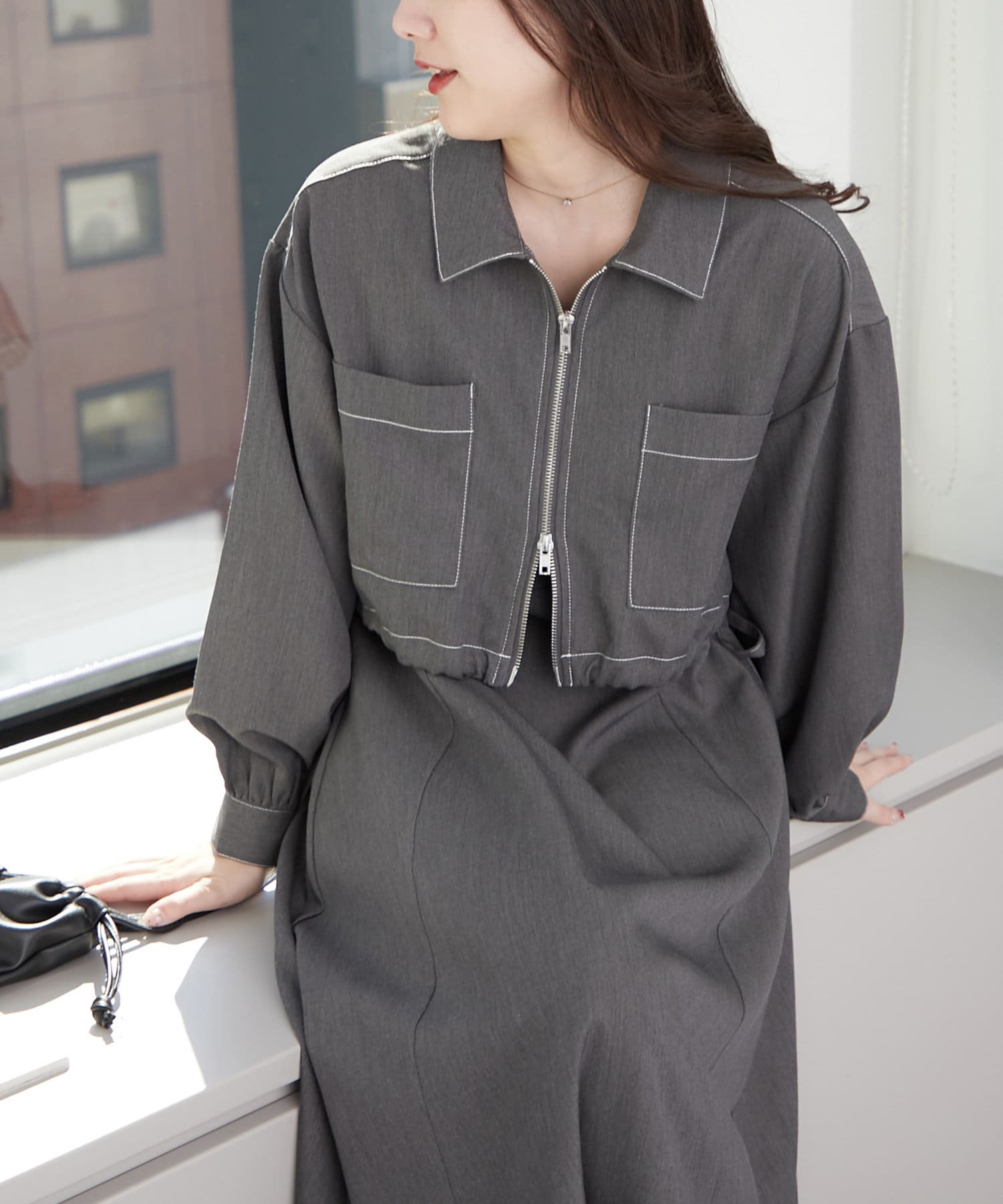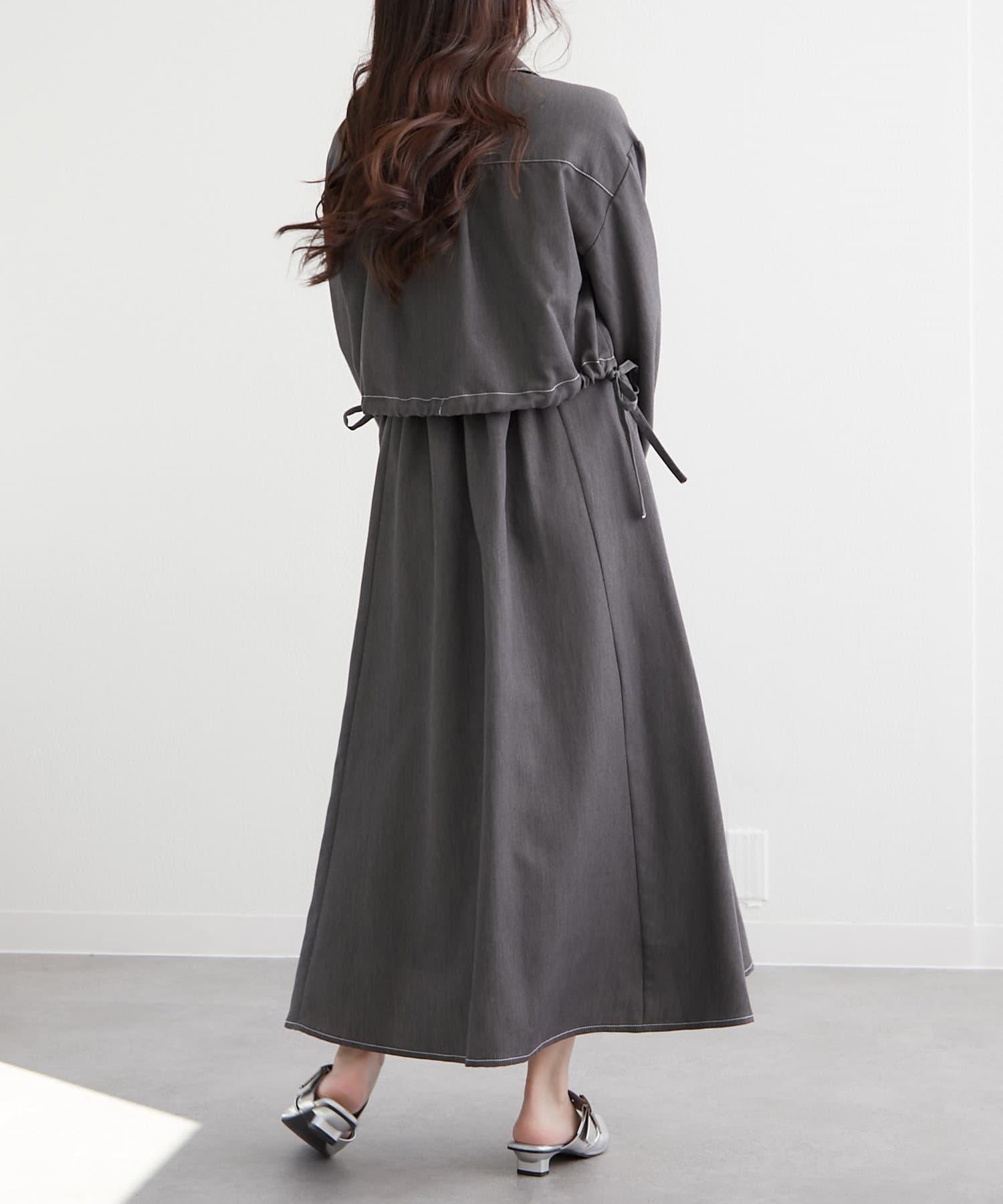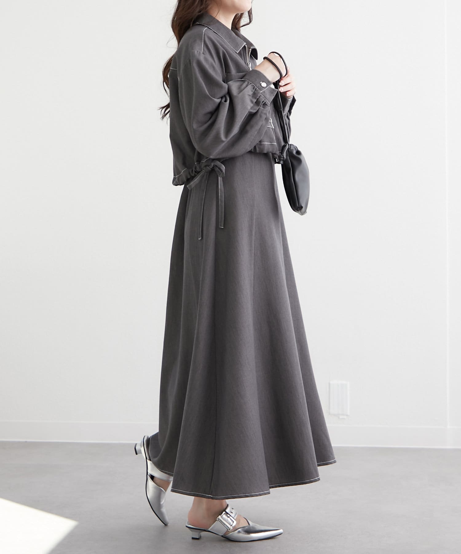 ・ステッチ配色がコーデにメリハリをプラスするジャケットとワンピースのセットアイテム