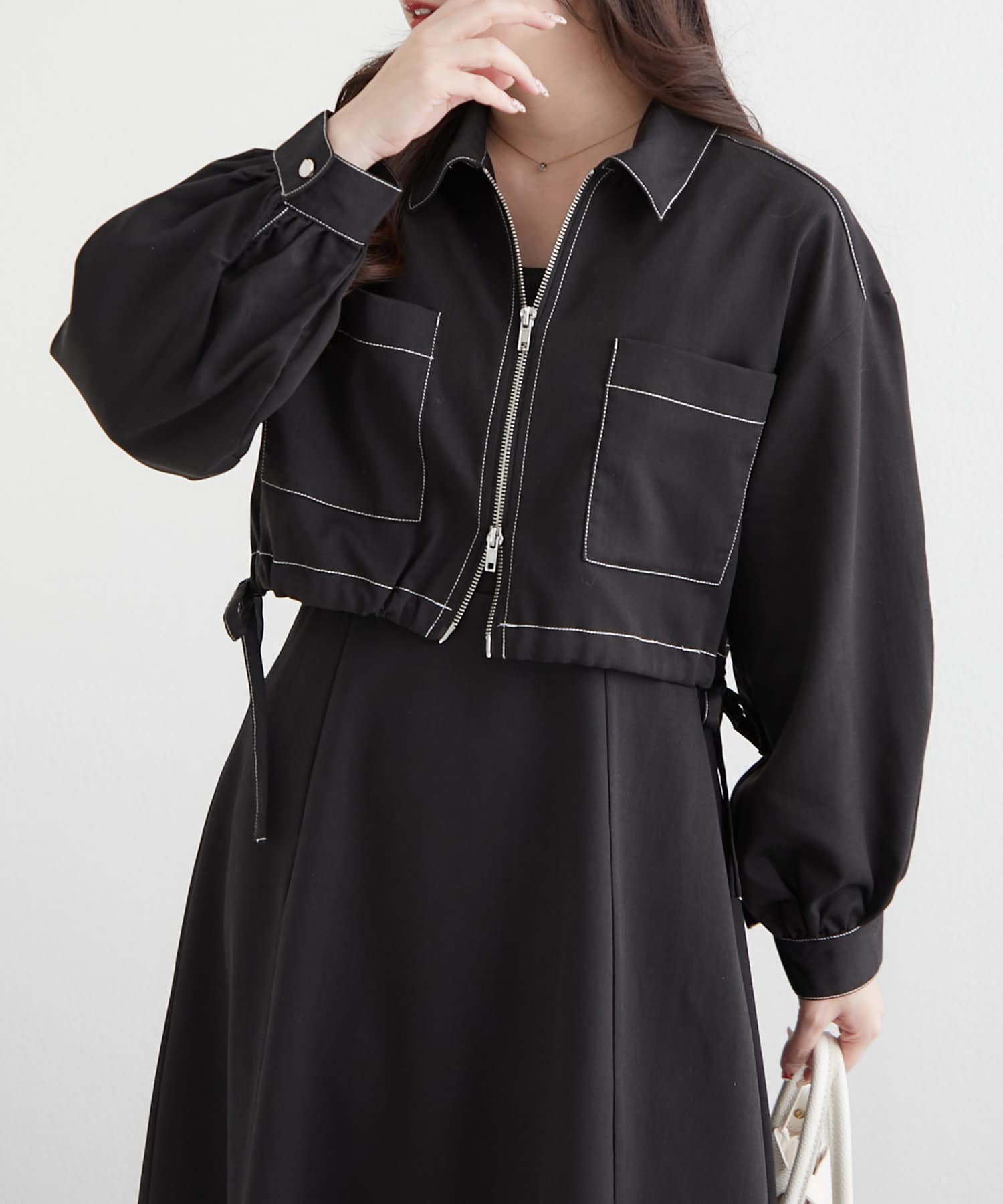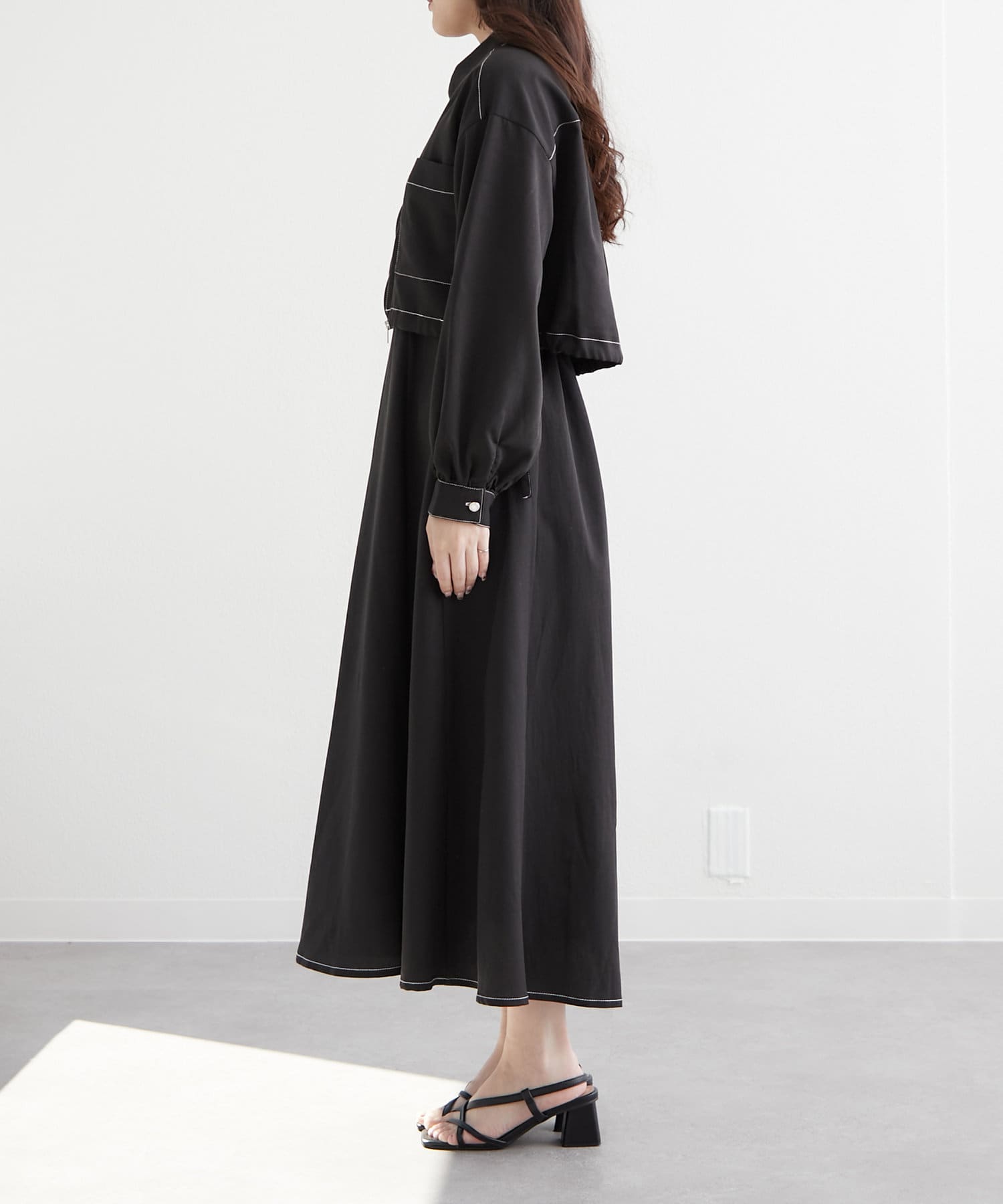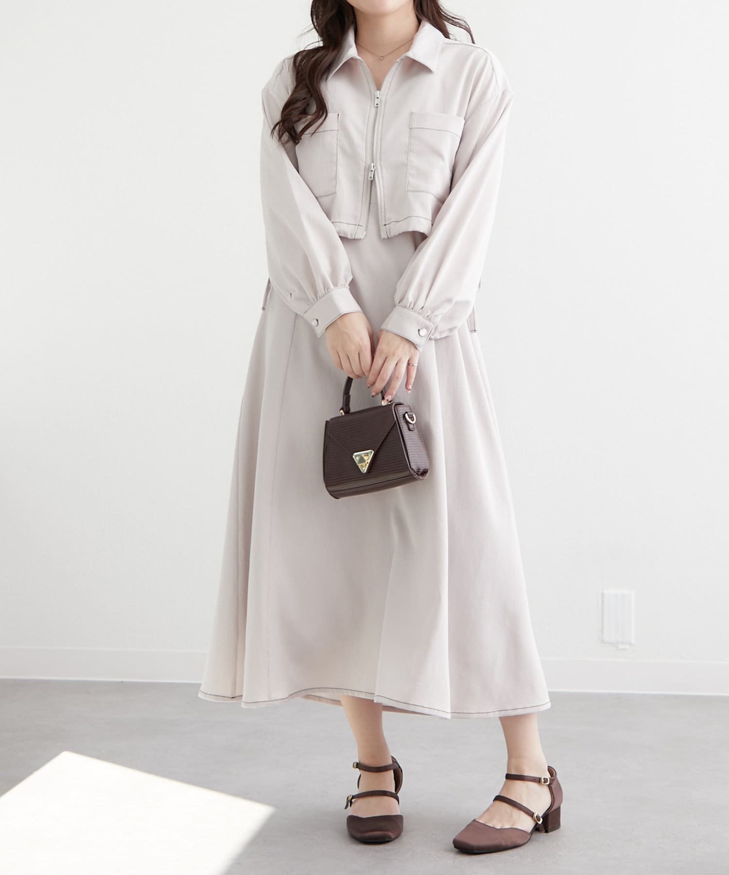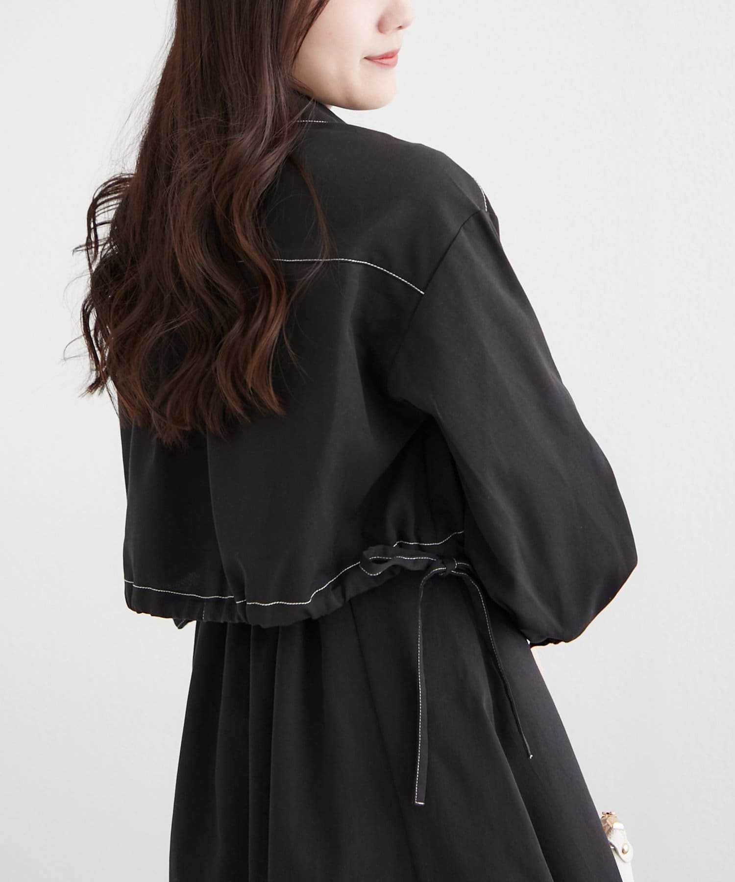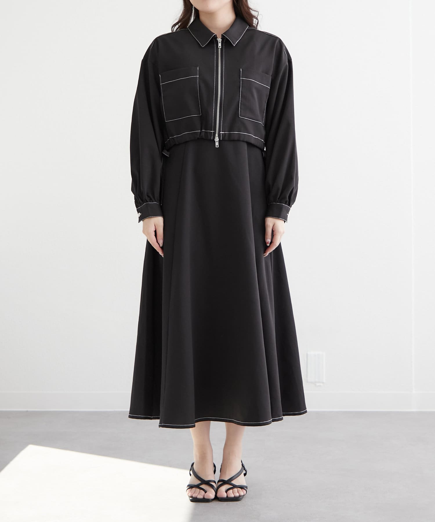 ・ステッチ配色がコーデにメリハリをプラスするジャケットとワンピースのセットアイテム