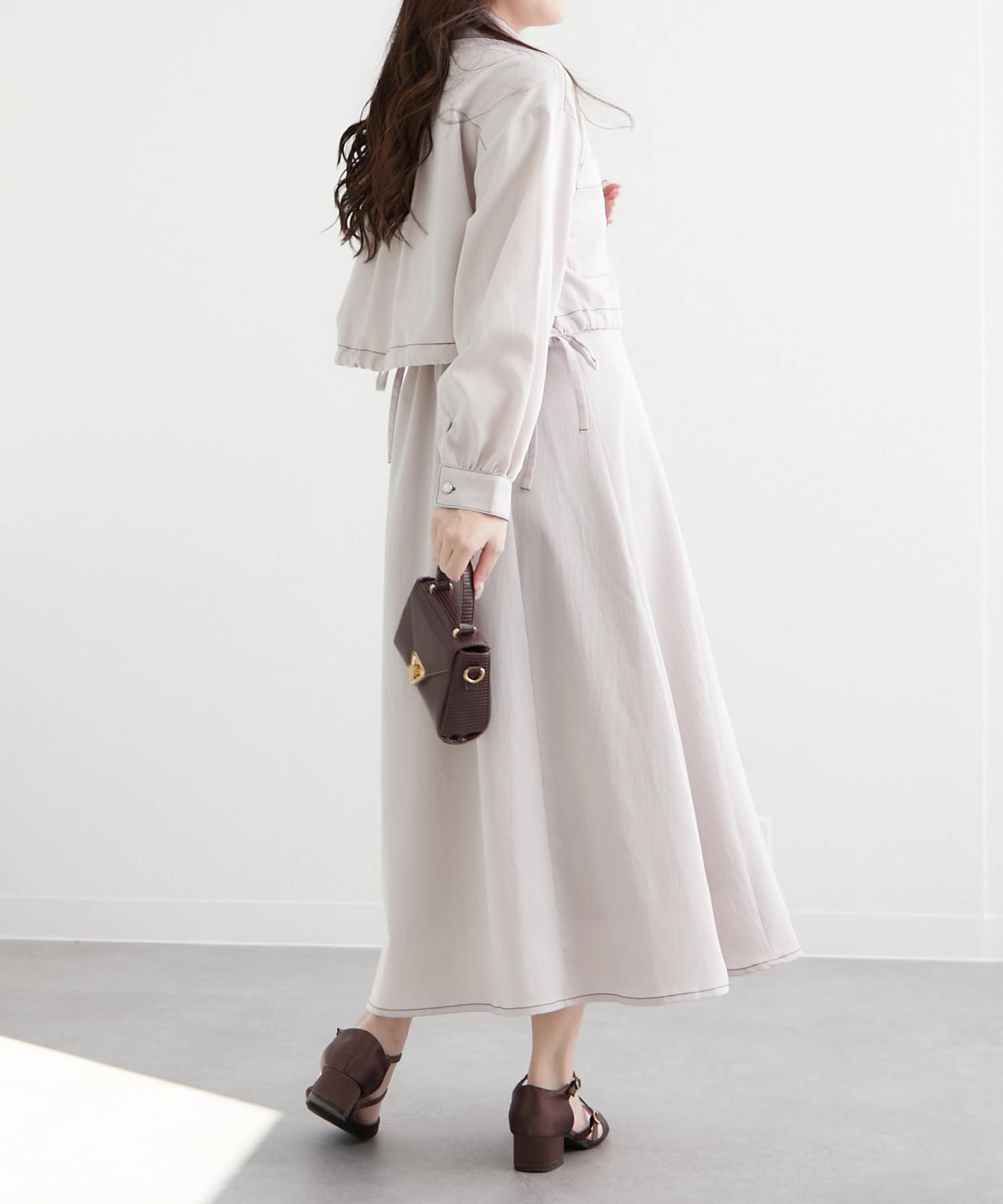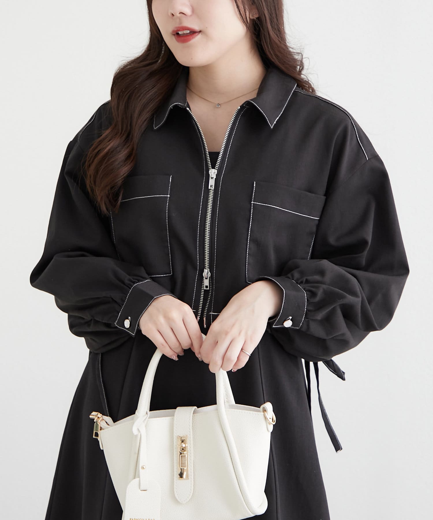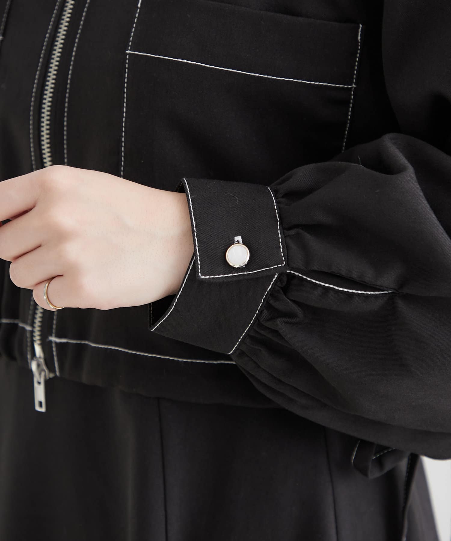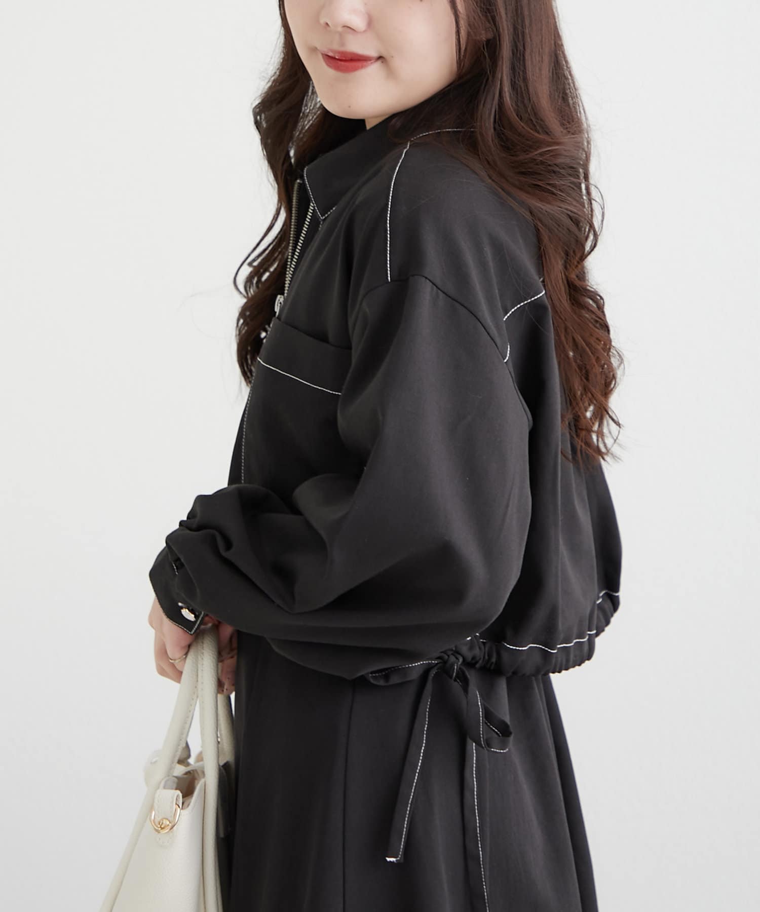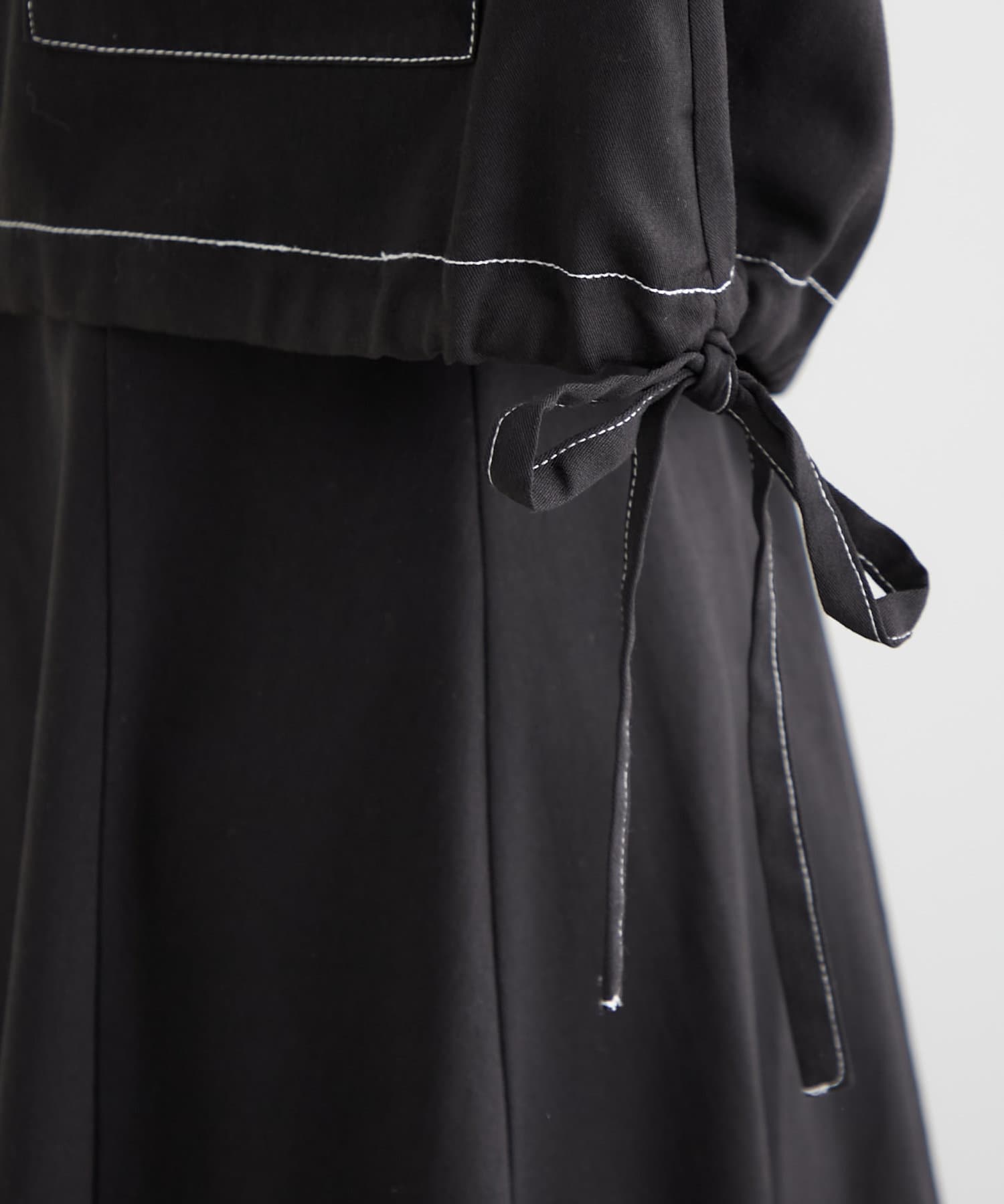 ・ステッチ配色がコーデにメリハリをプラスするジャケットとワンピースのセットアイテム