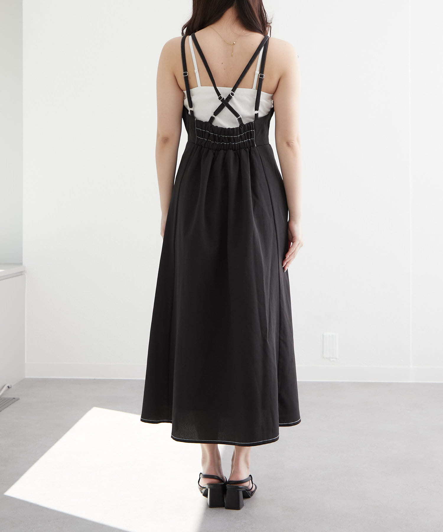 ・ワンピースはキャミソールタイプなのでレイヤードコーデを楽しめる一枚