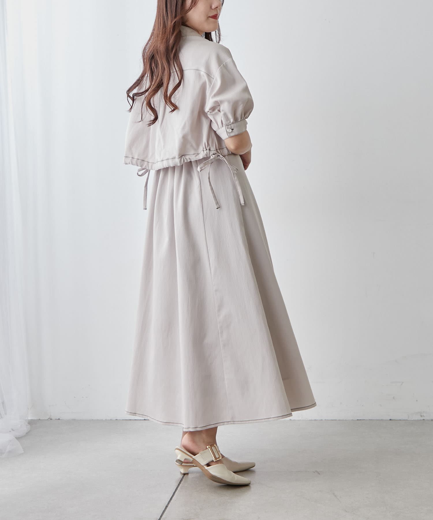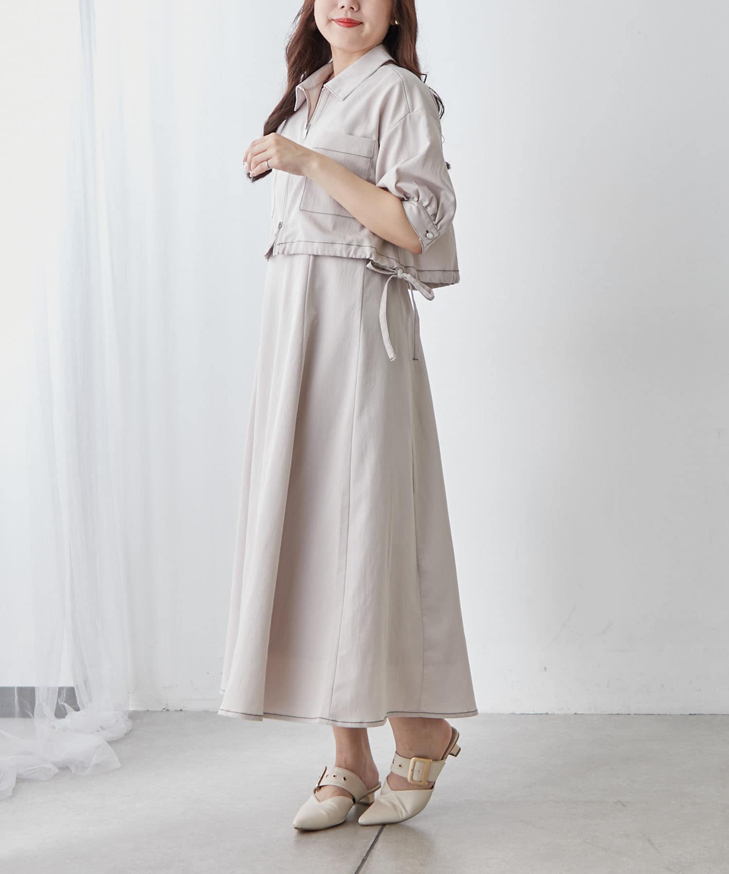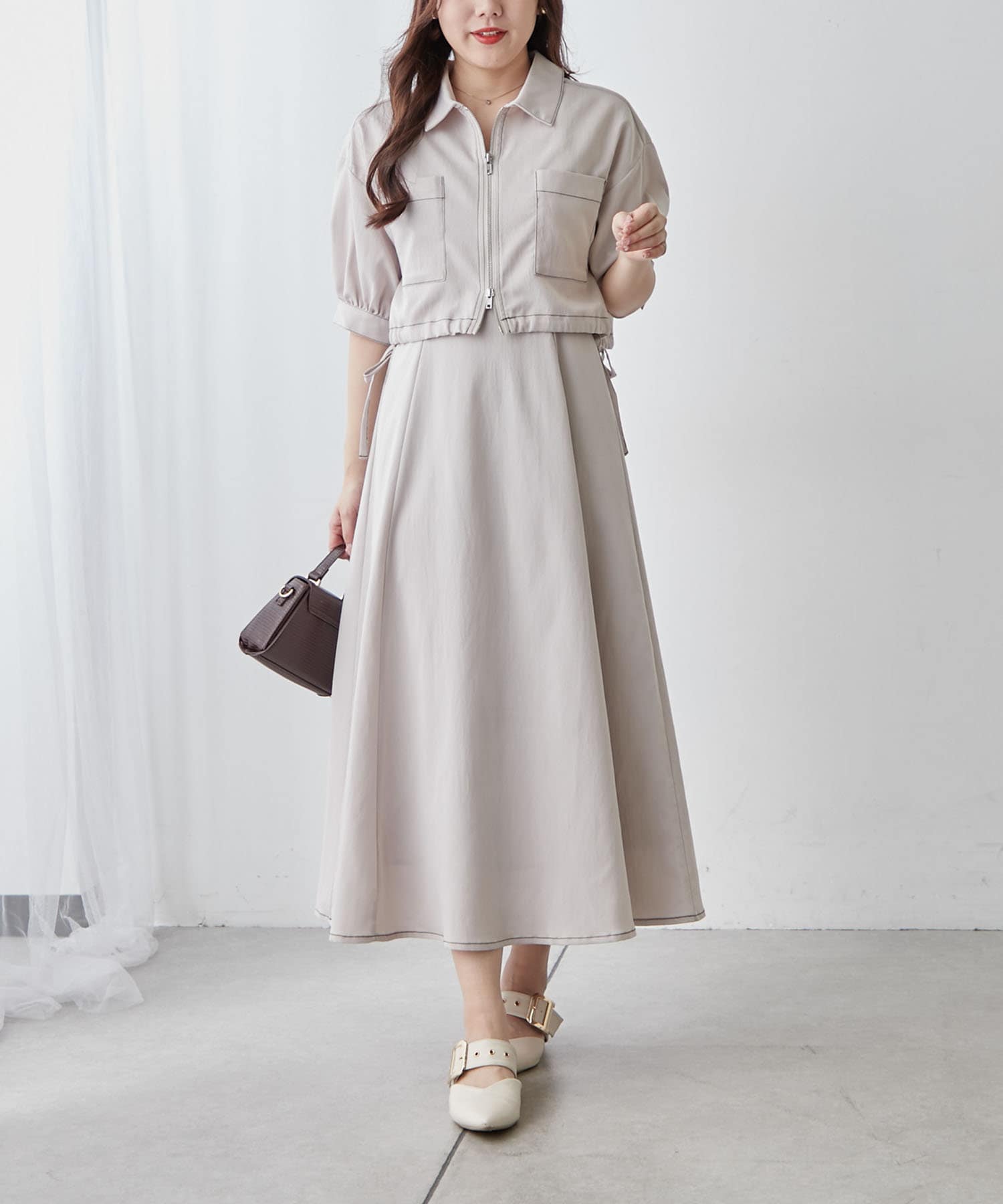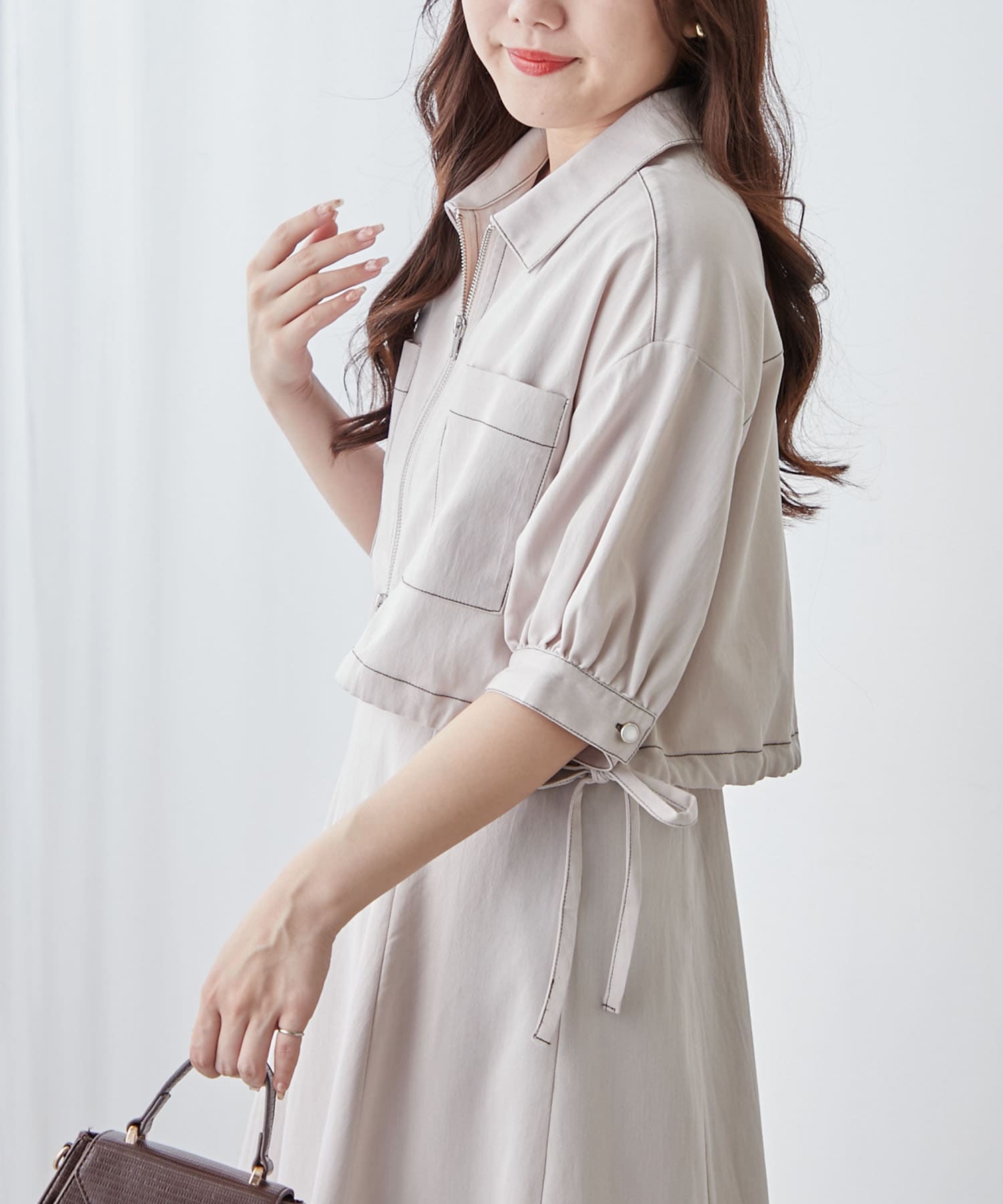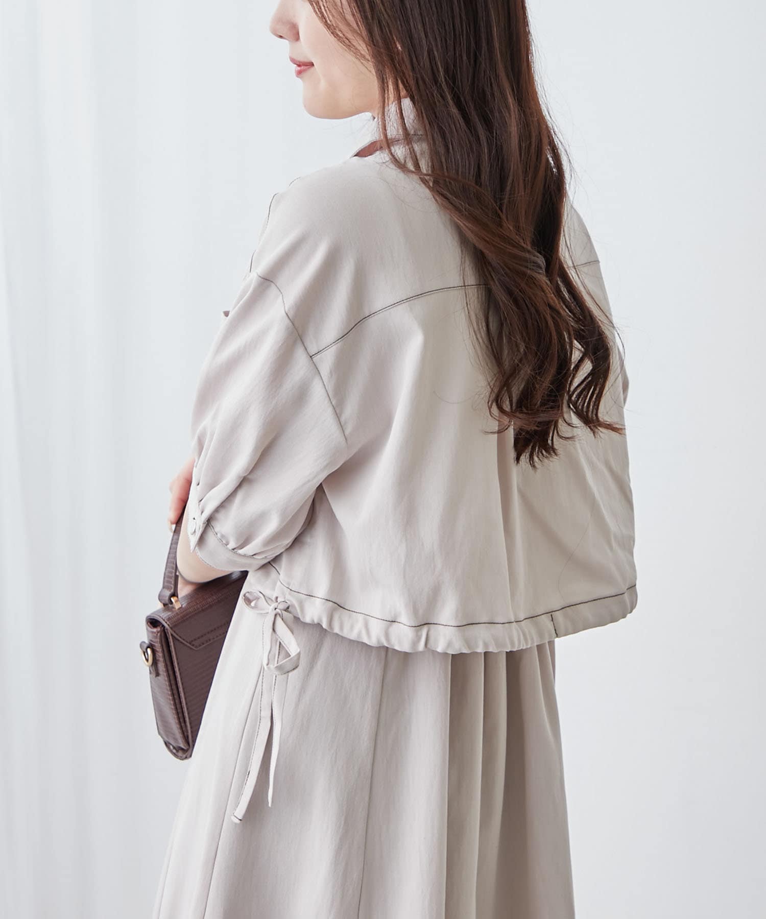 伸縮性:ワンピースウエストゴム、ジャケット裾部分ゴム