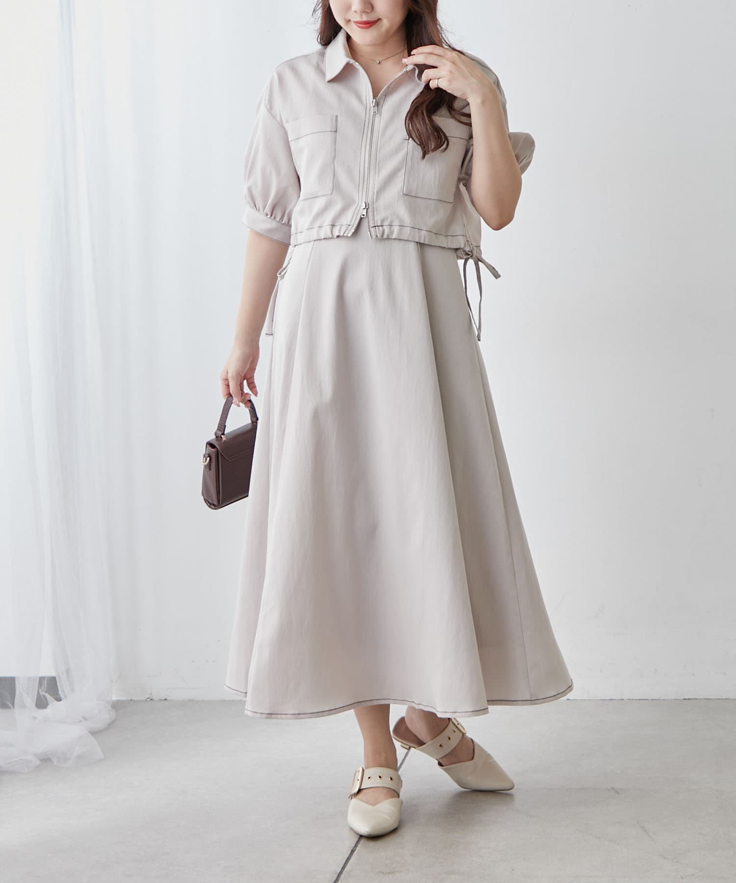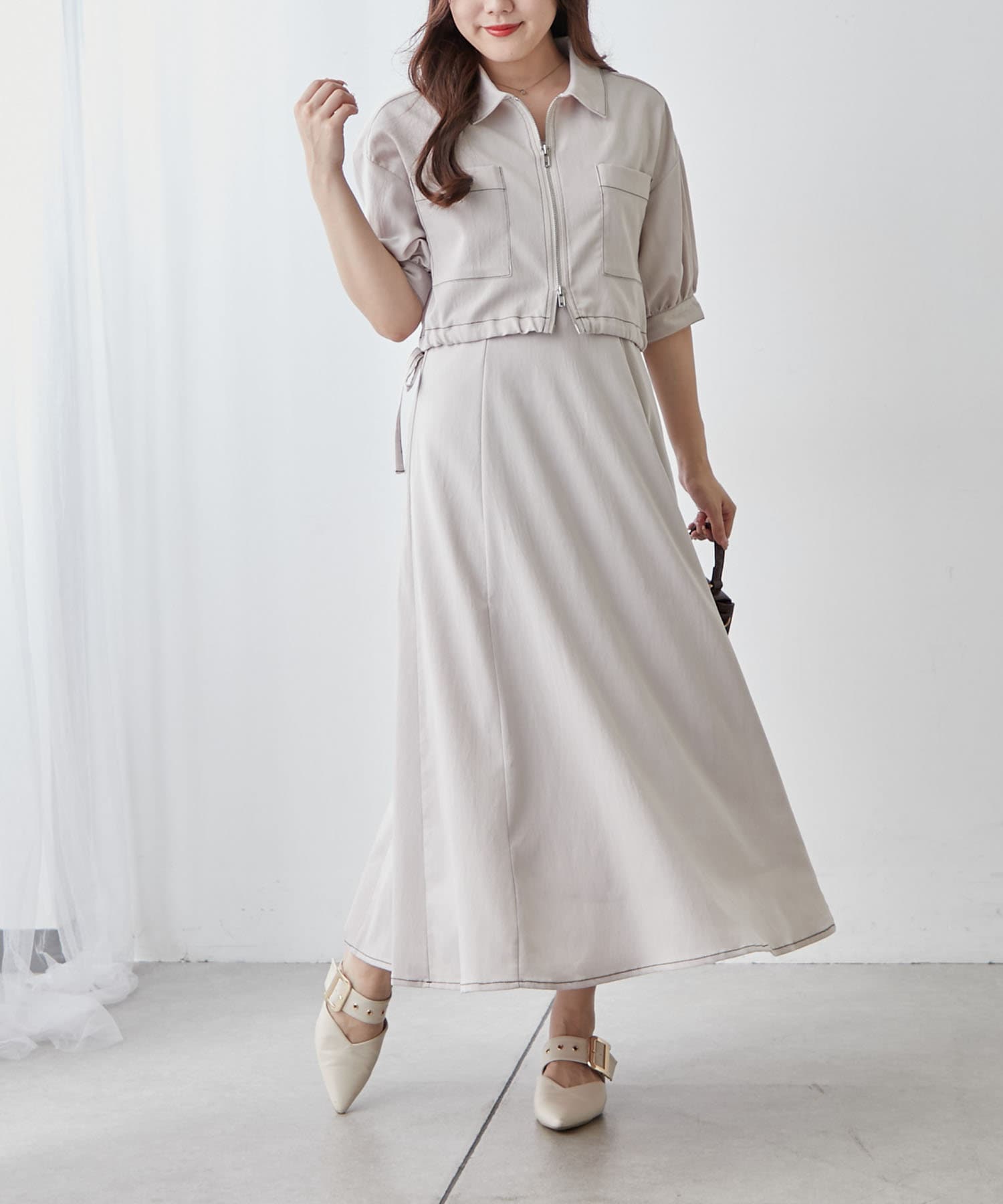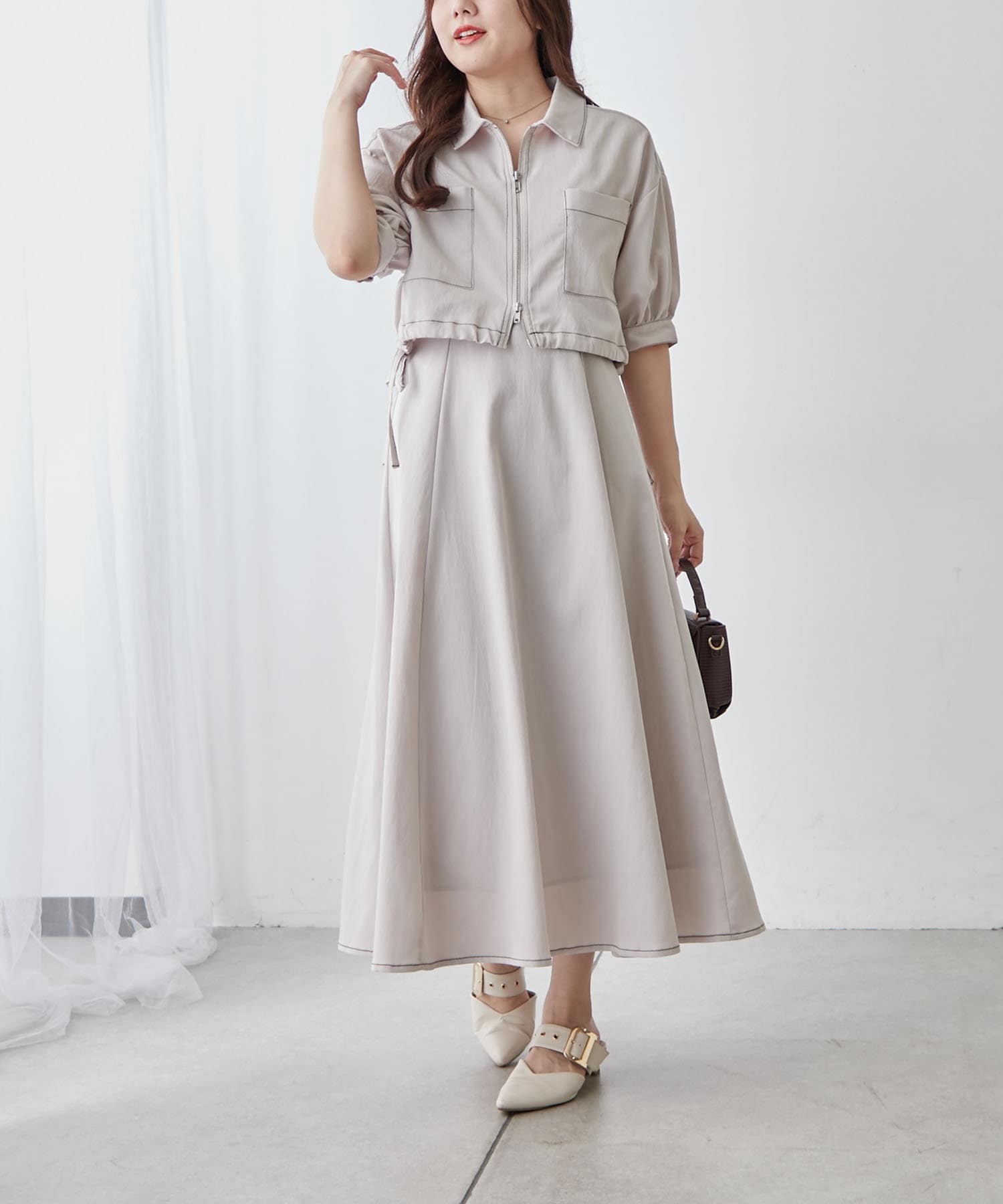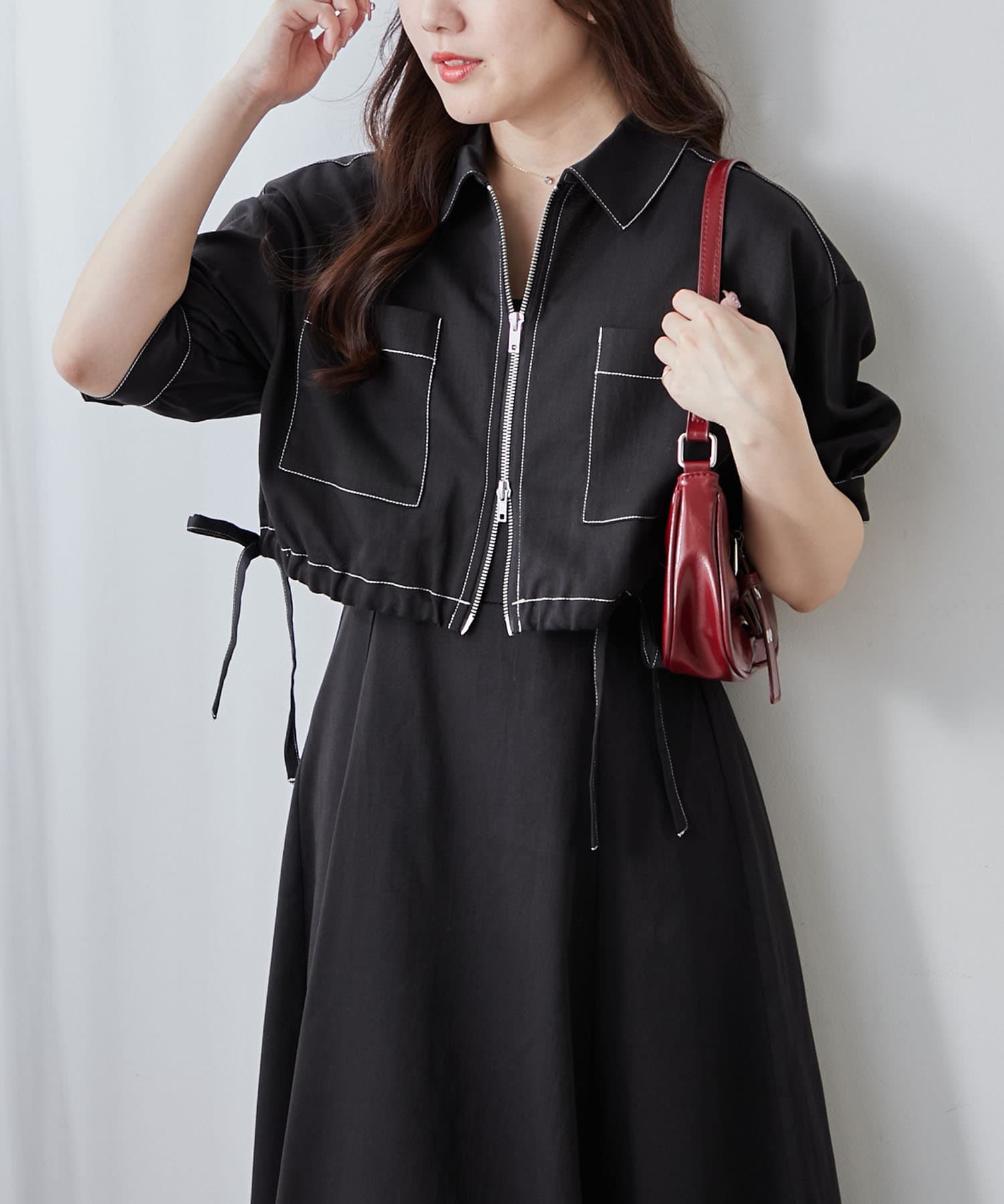 伸縮性:ワンピースウエストゴム、ジャケット裾部分ゴム