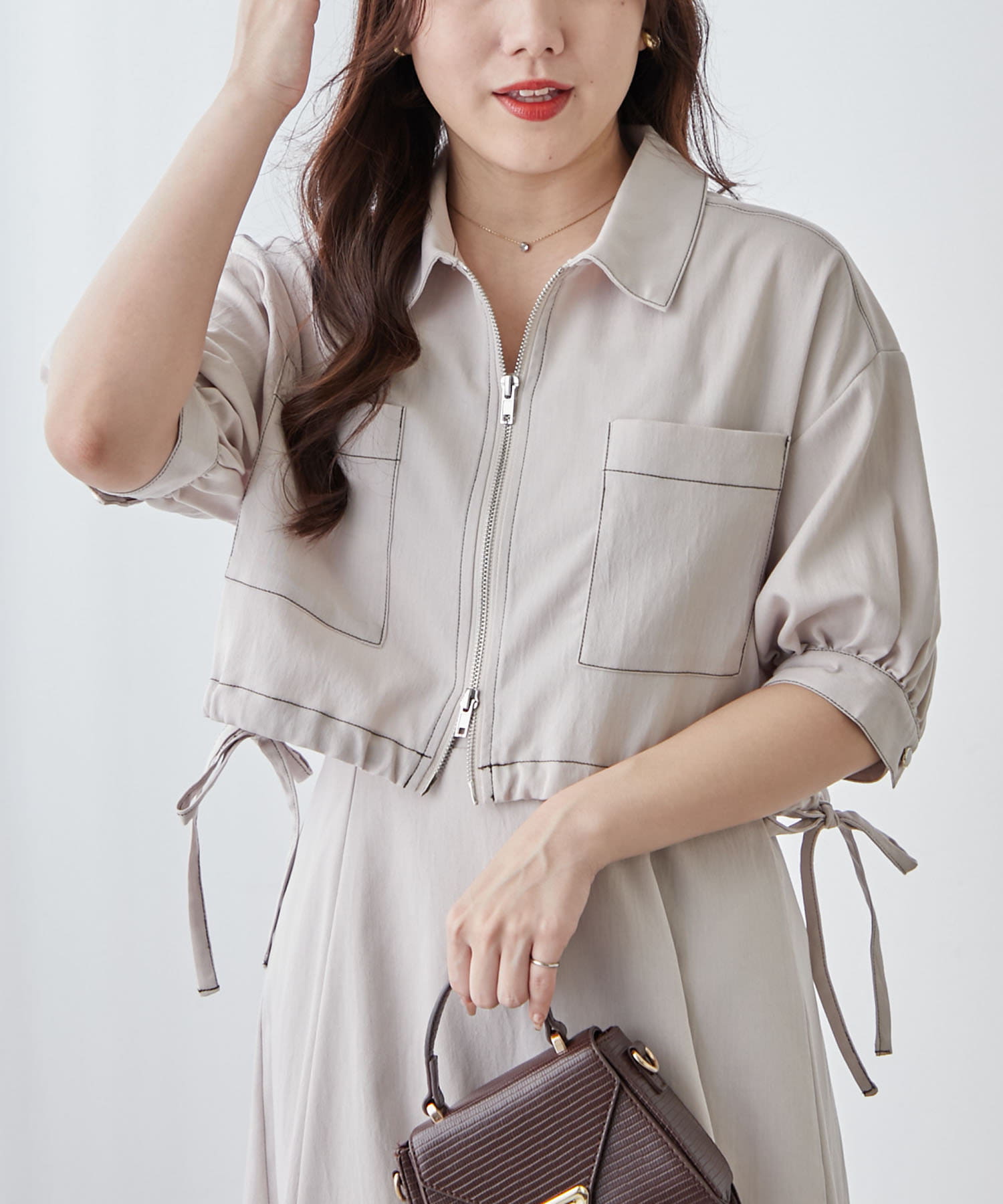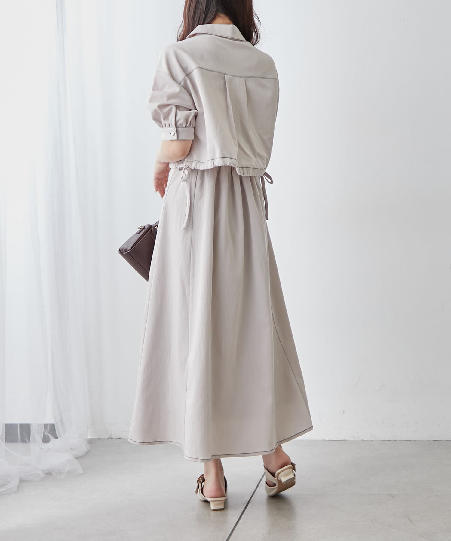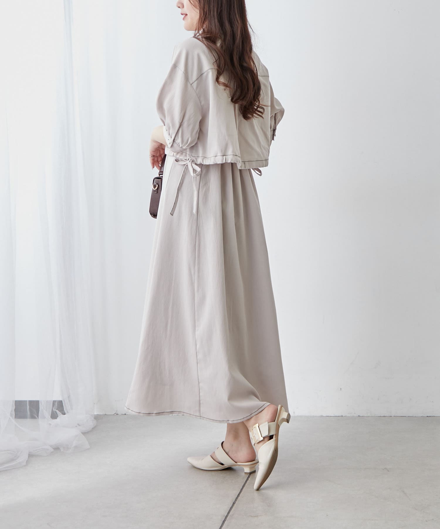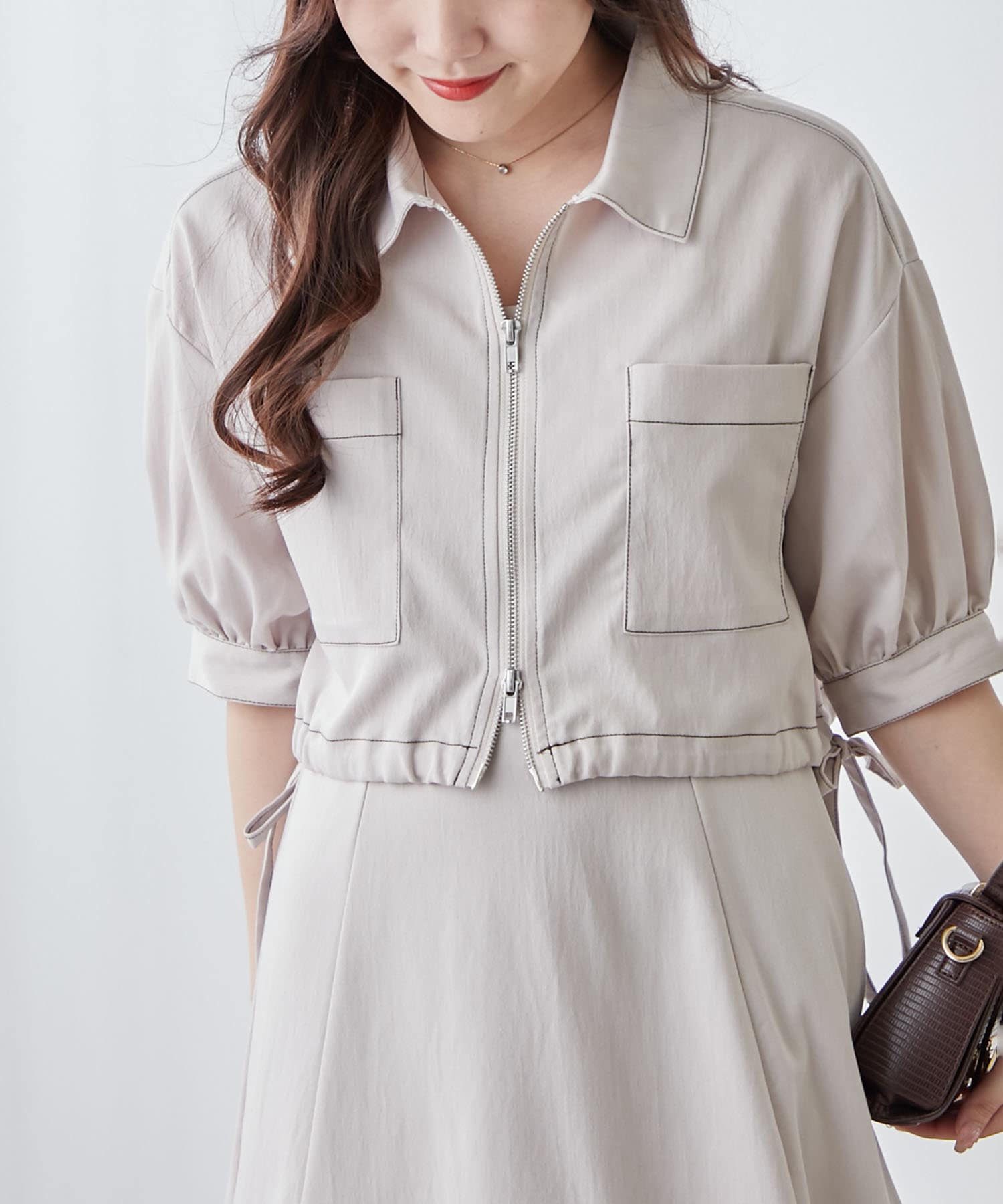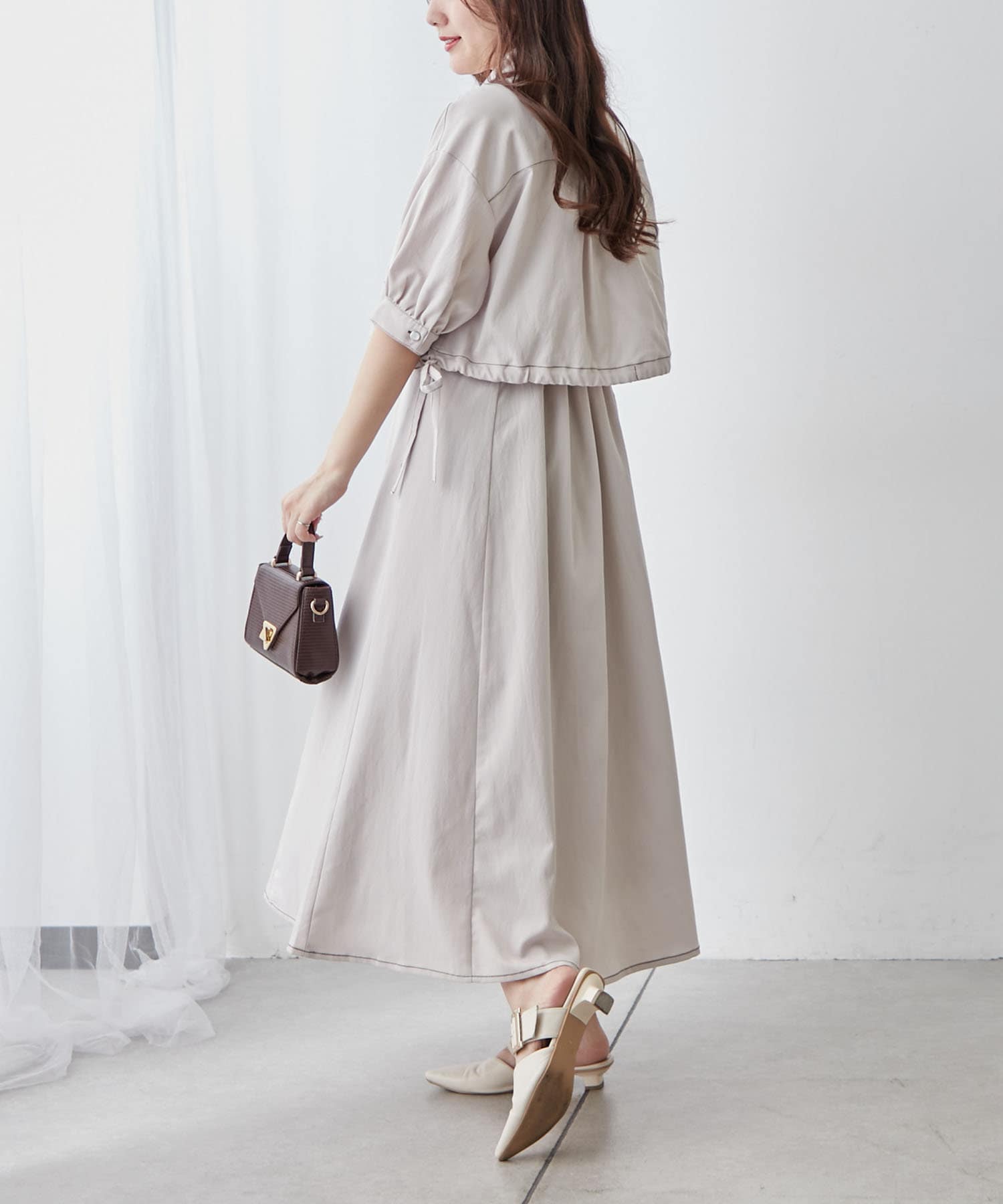伸縮性:ワンピースウエストゴム、ジャケット裾部分ゴム