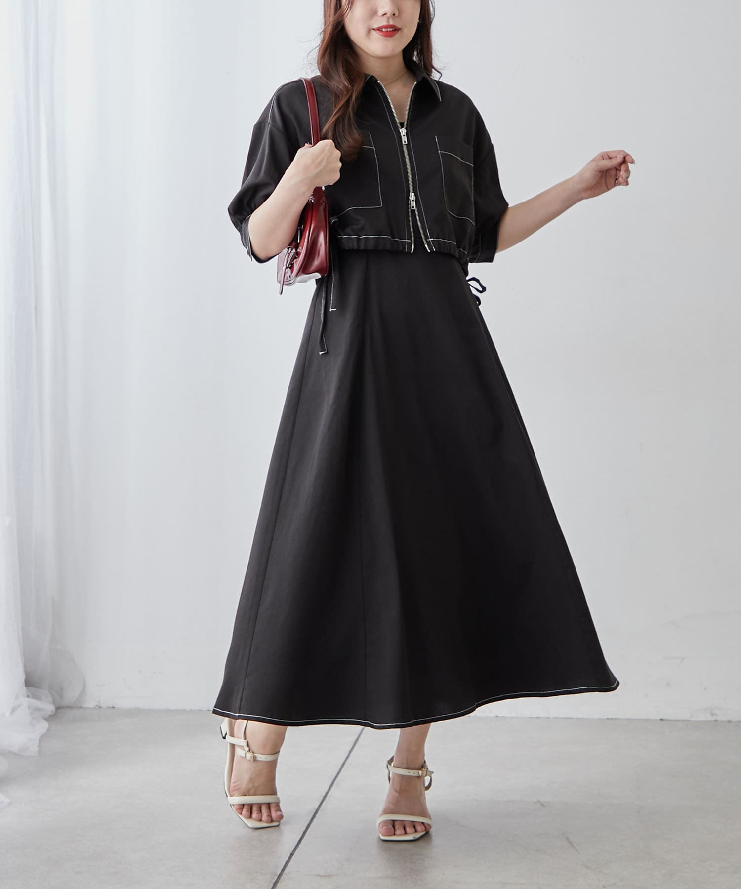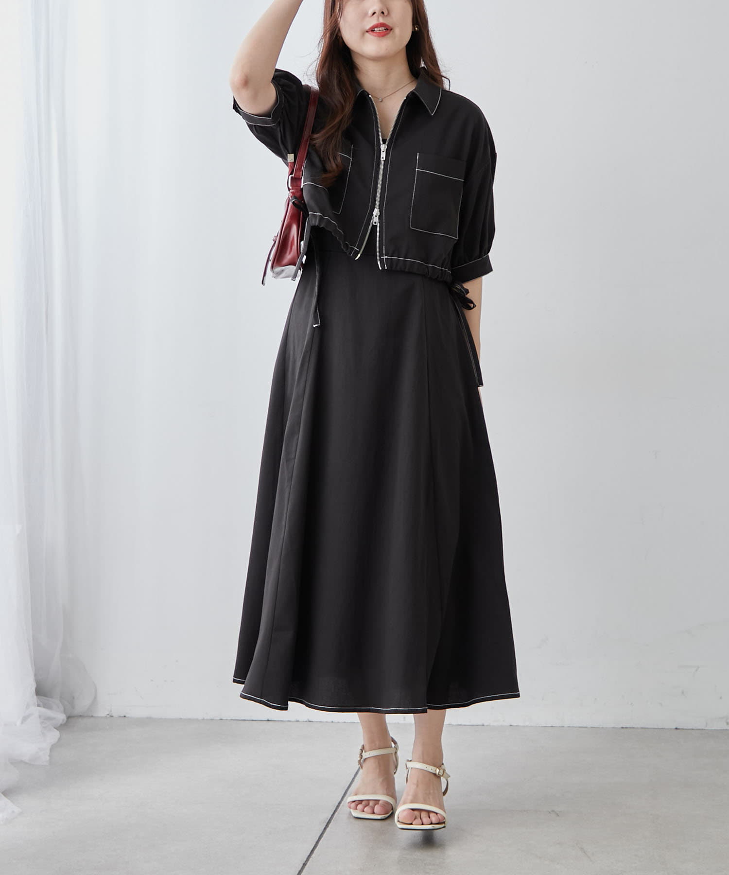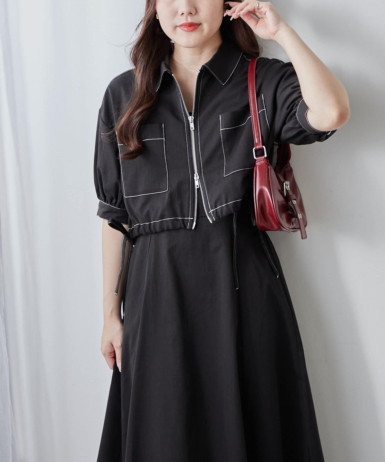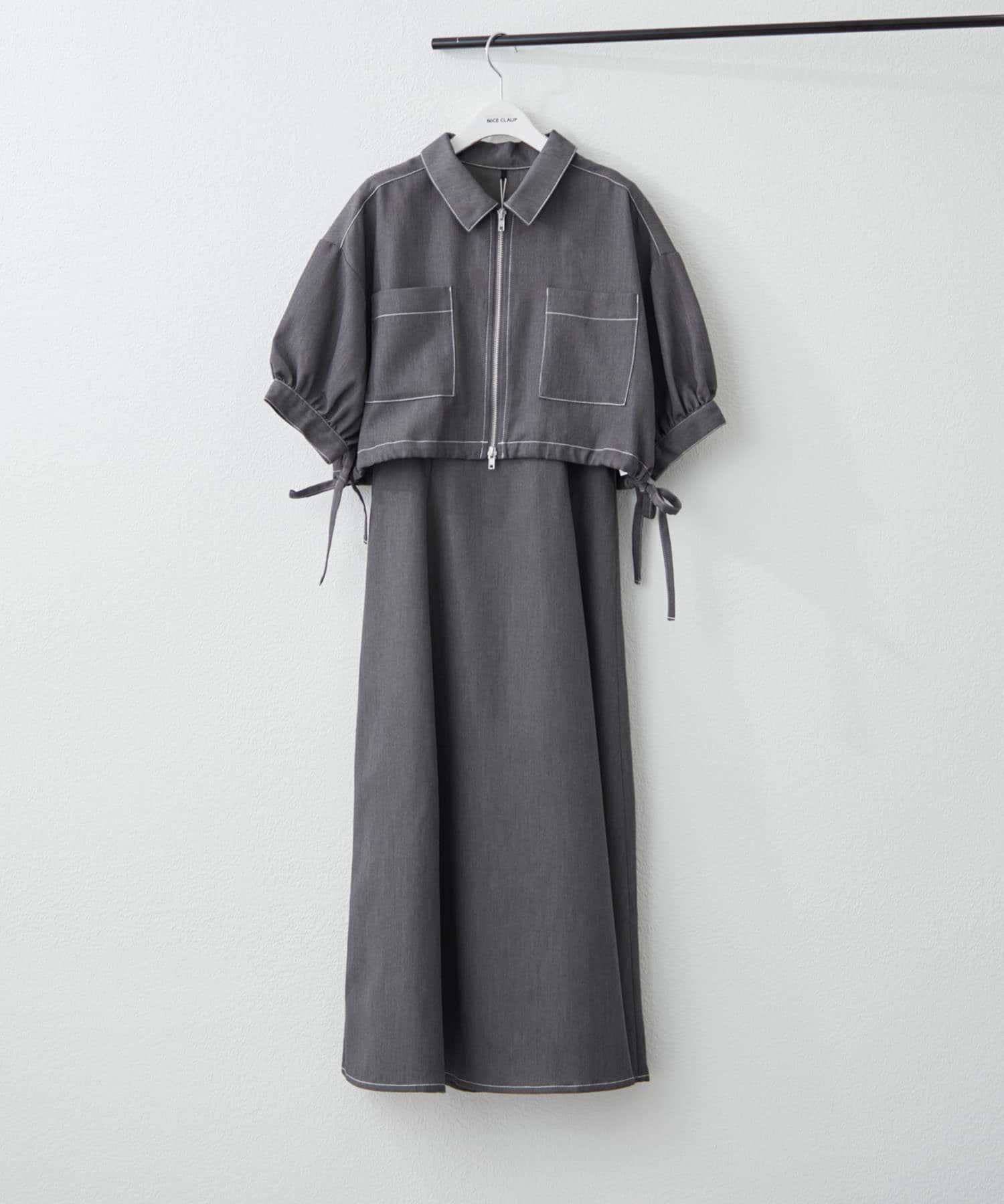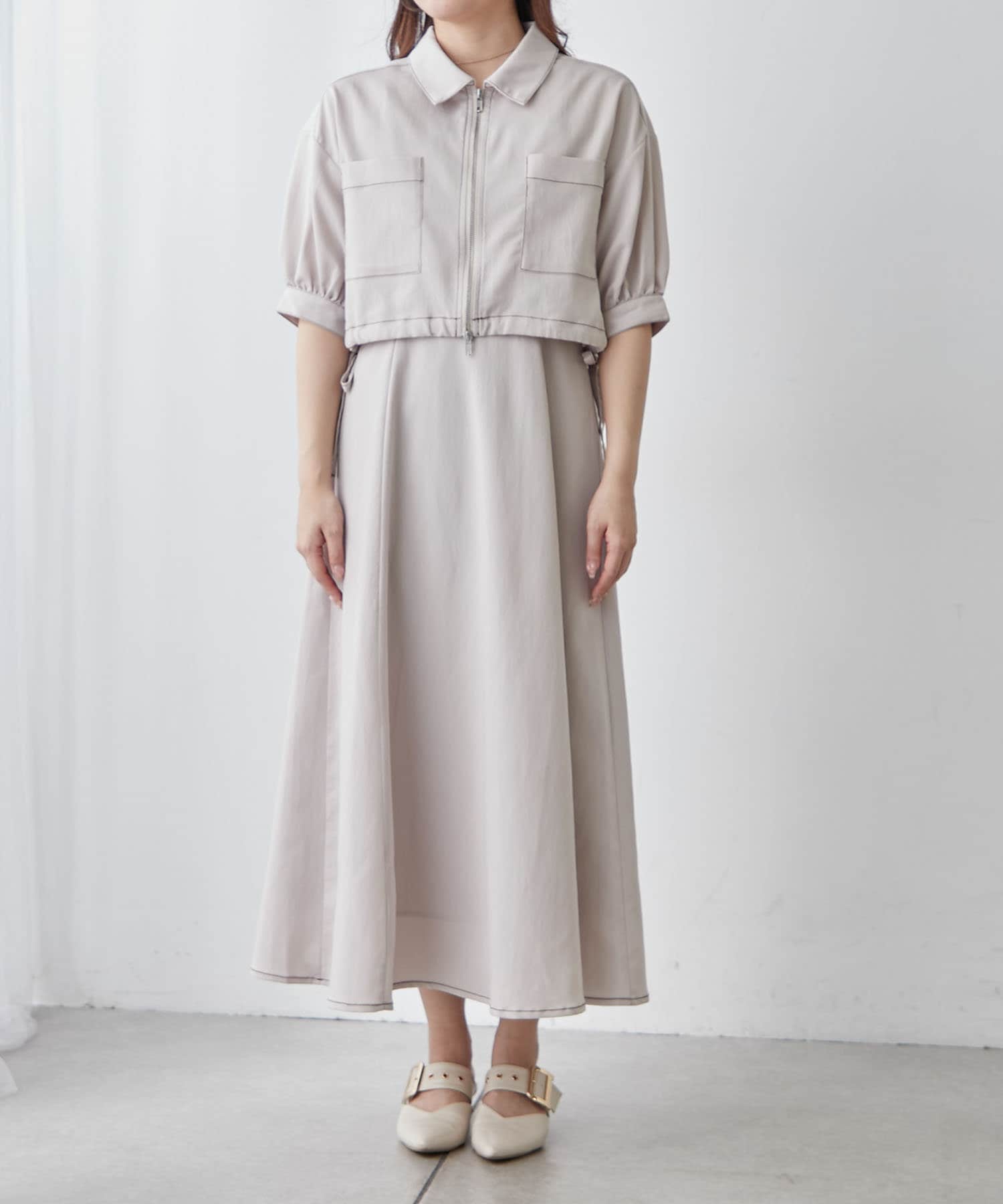 伸縮性:ワンピースウエストゴム、ジャケット裾部分ゴム