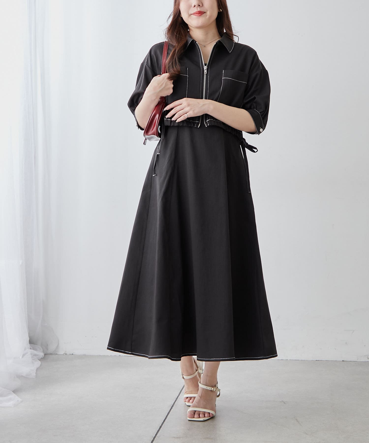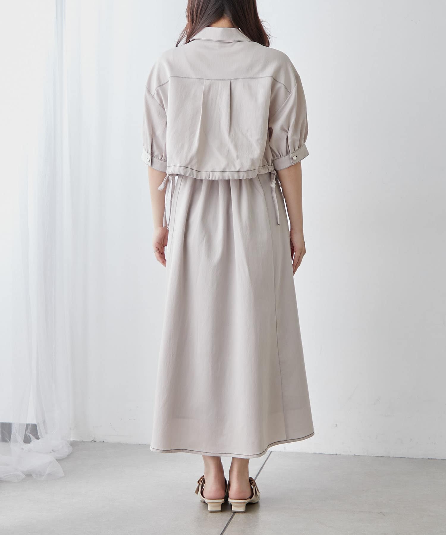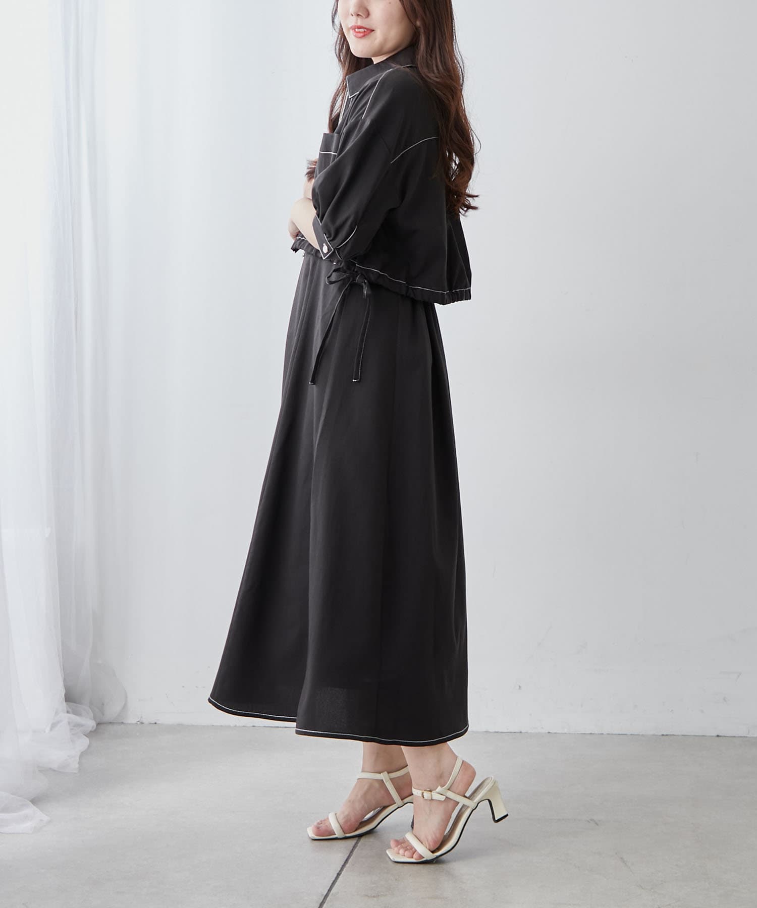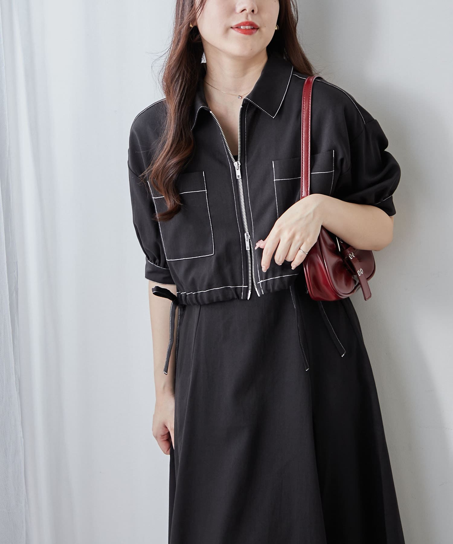 伸縮性:ワンピースウエストゴム、ジャケット裾部分ゴム