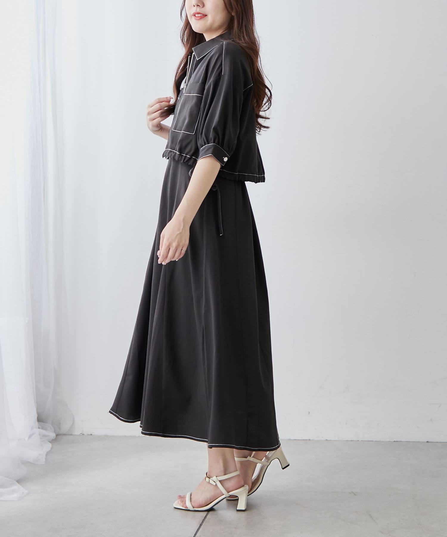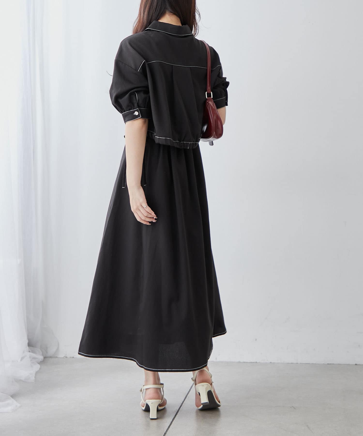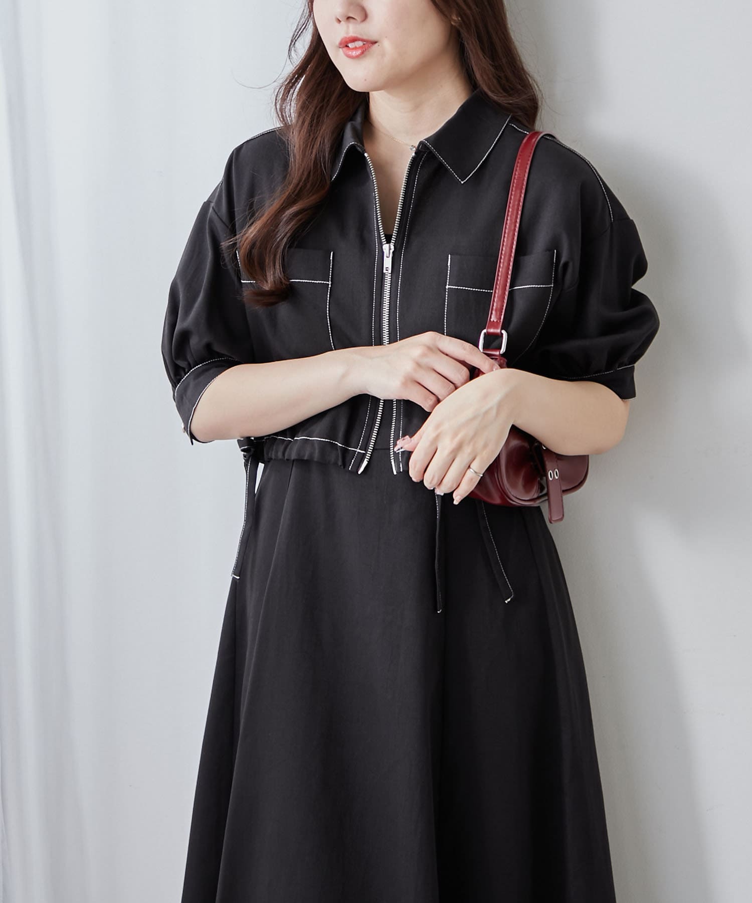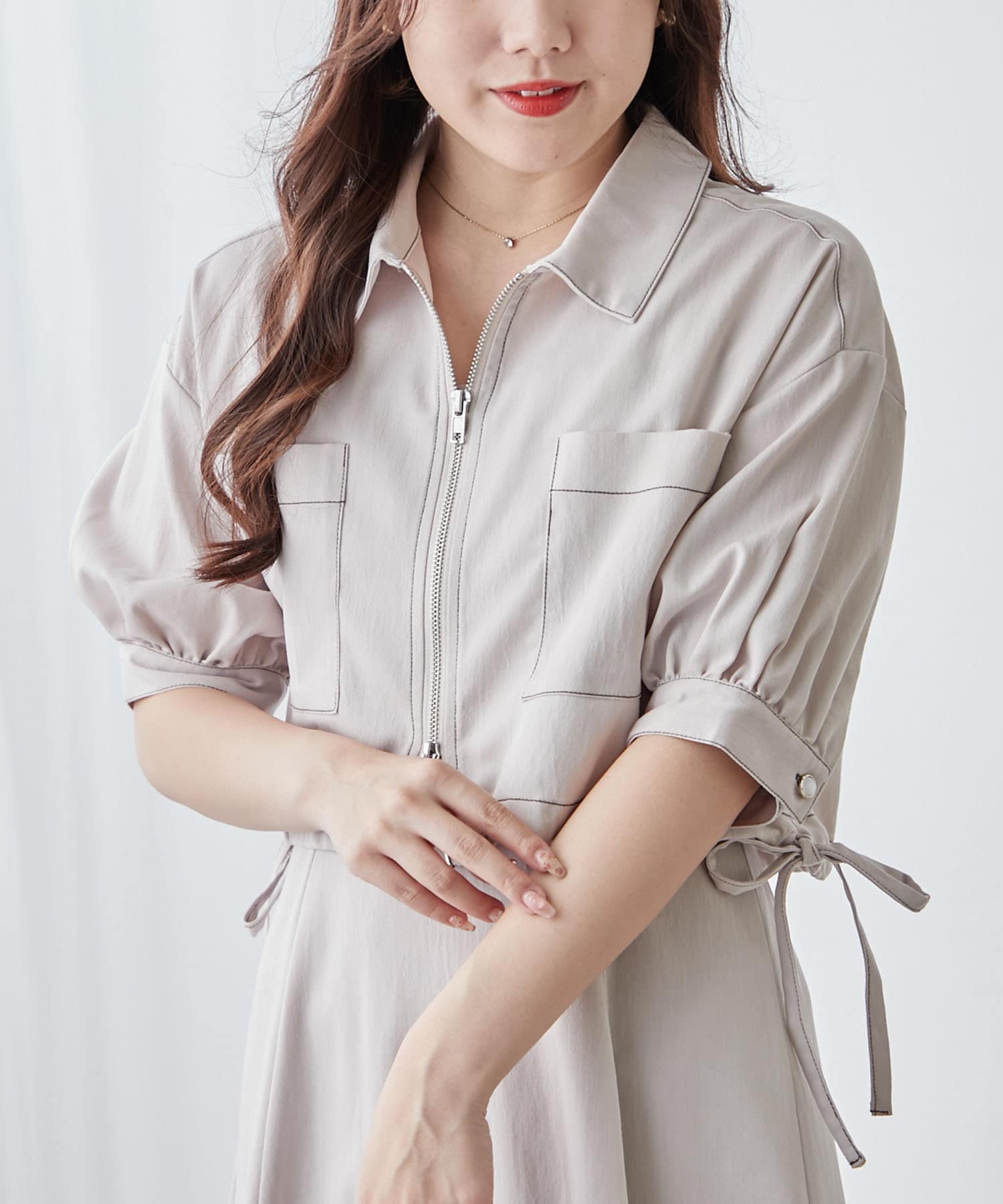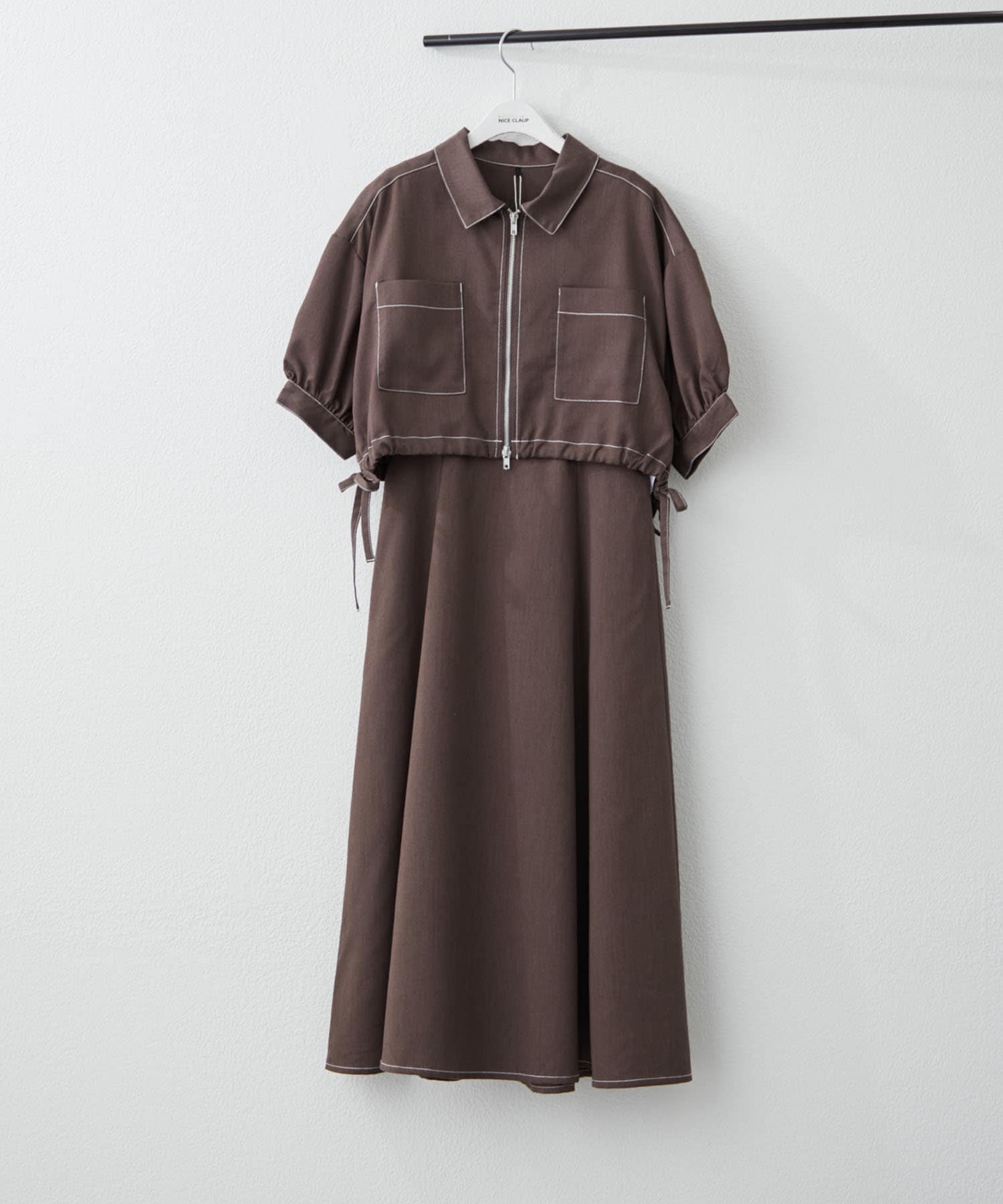 伸縮性:ワンピースウエストゴム、ジャケット裾部分ゴム