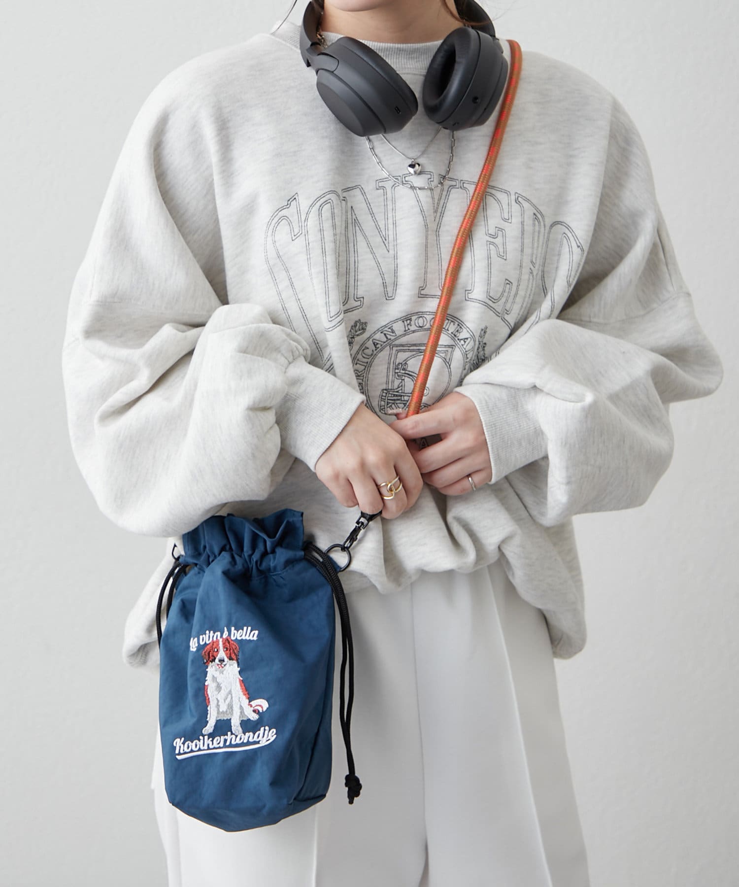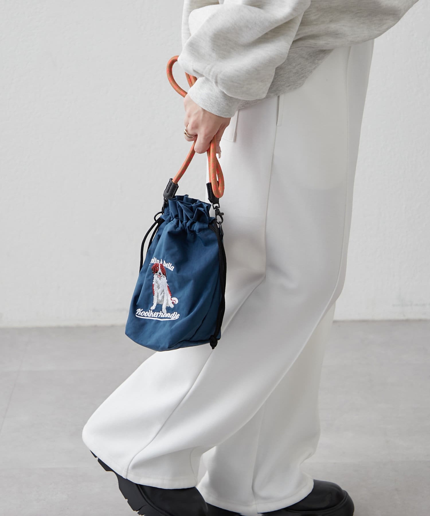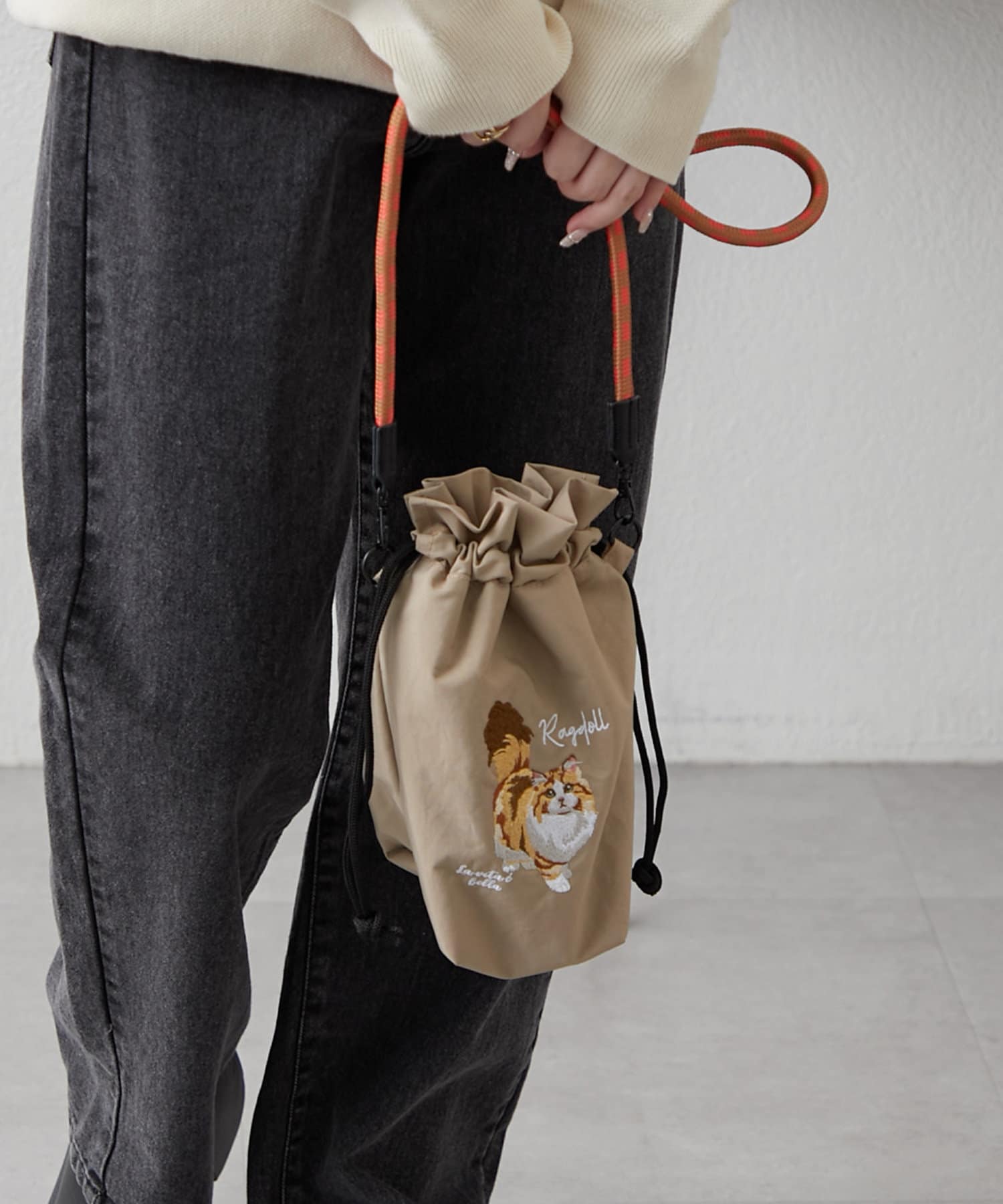・アニマルの刺繍とカラフルなコードの持ち手が目を引くショルダーバッグ
