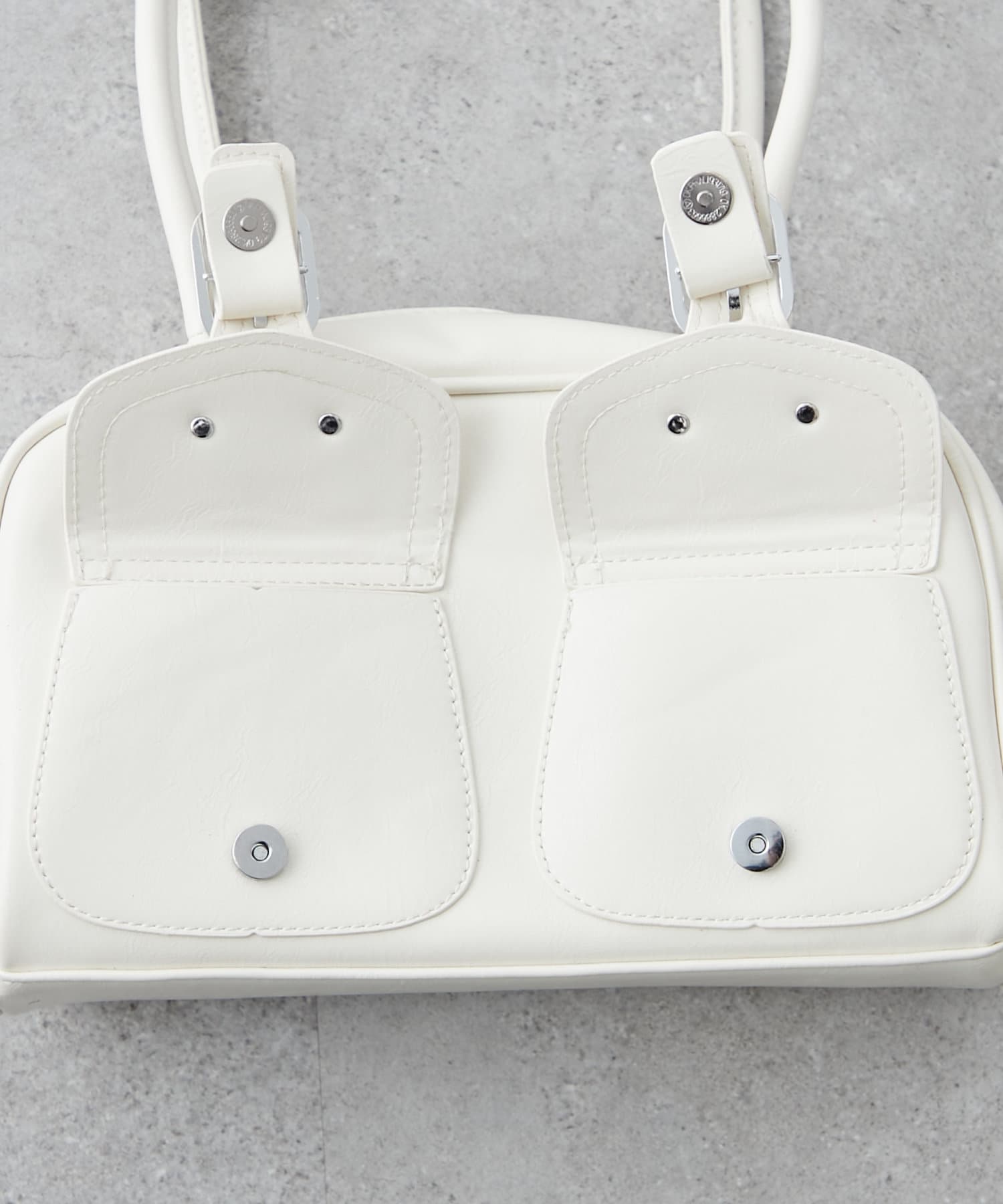 ・マルチポケットデザインが目を引く、収納力たっぷりの2WAYショルダーバッグ。