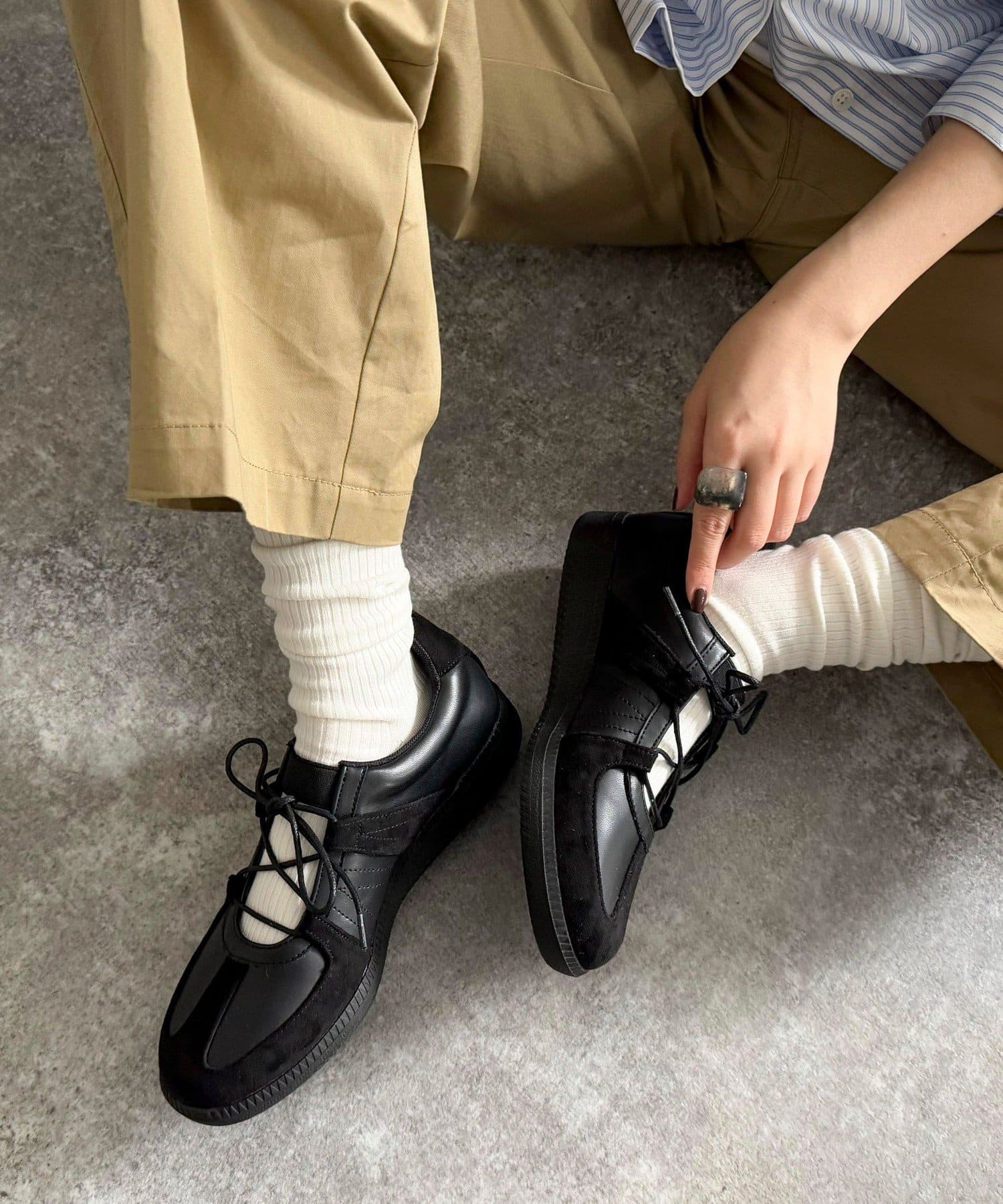 メリージェーンとスニーカーをかけ合わせたトレンドシューズ