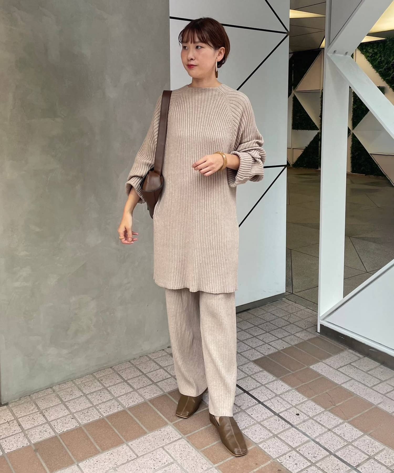 デニムパンツやフレアパンツ、ショートパンツとも相性◎同素材シリーズのリブニットパンツとセットアップでお召し頂くのもおすすめです。