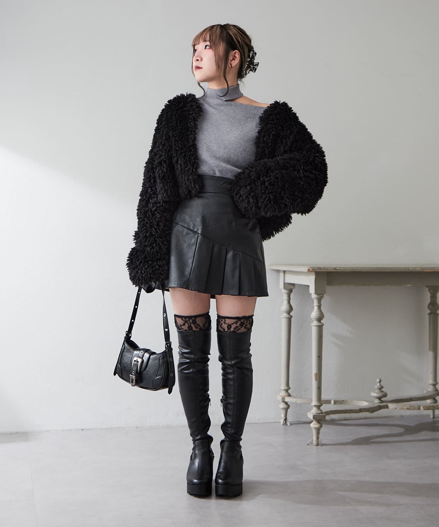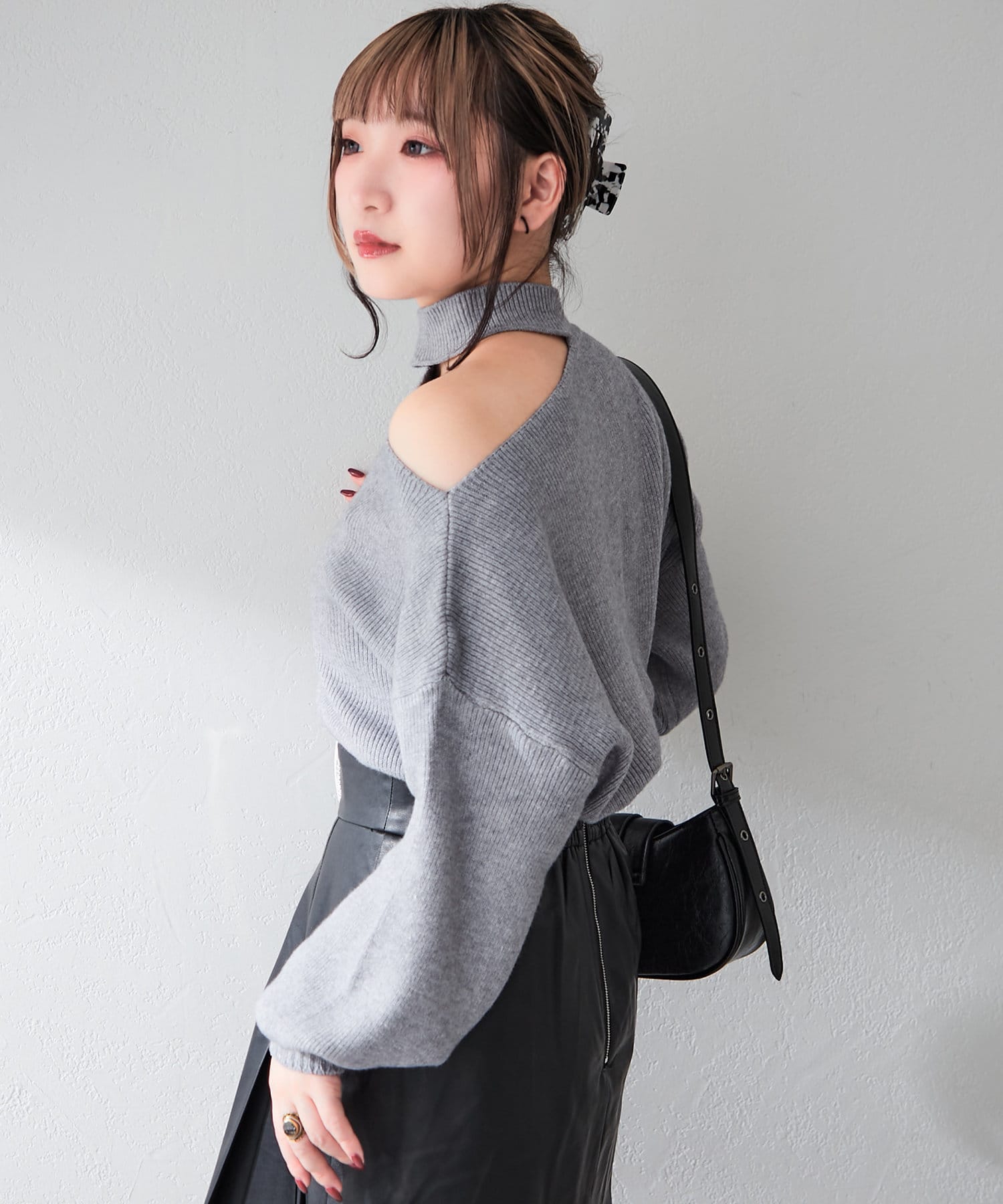 ・オープンショルダーでヘルシーな肌見せができます。