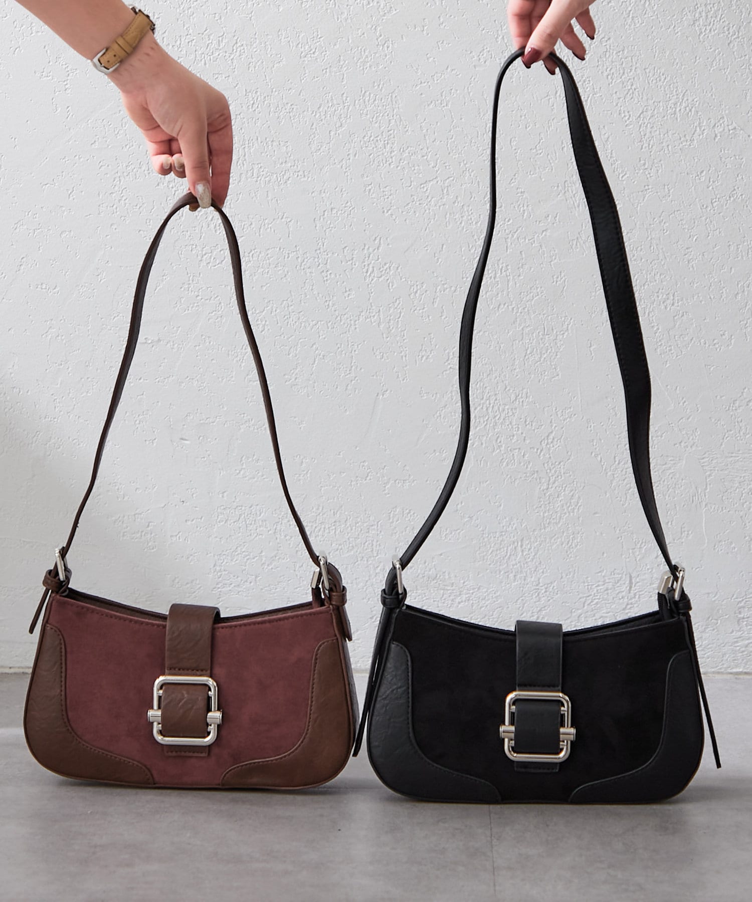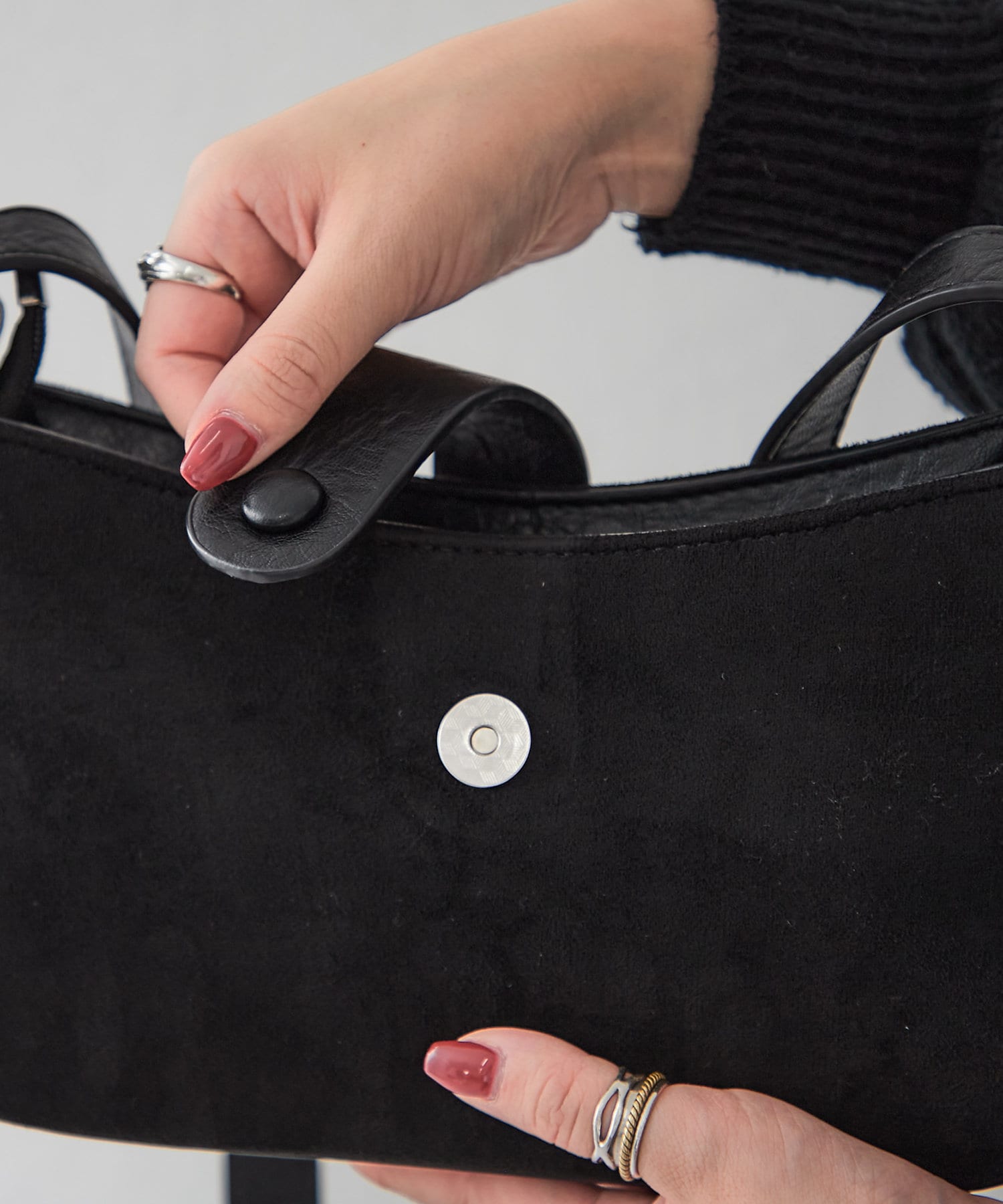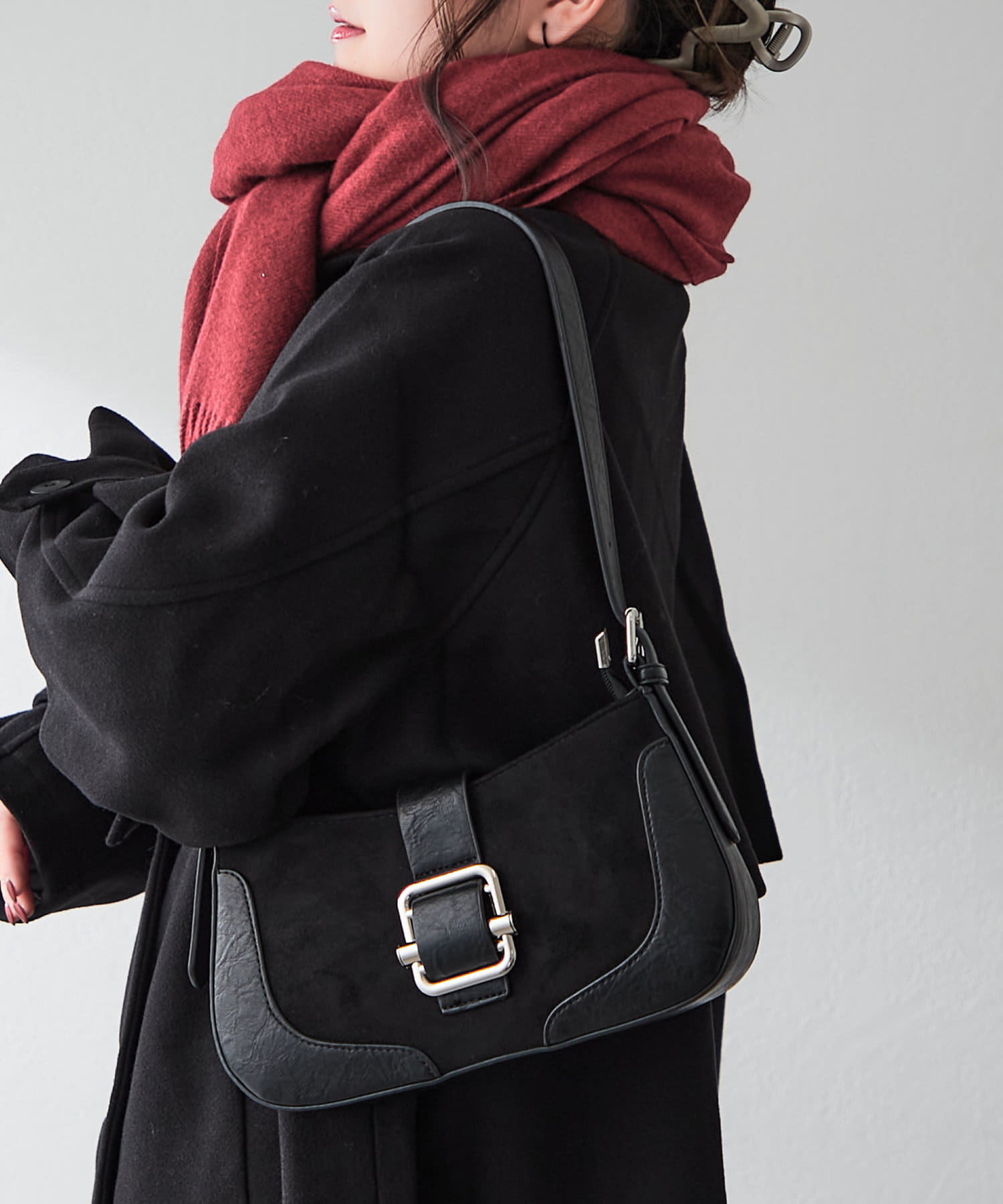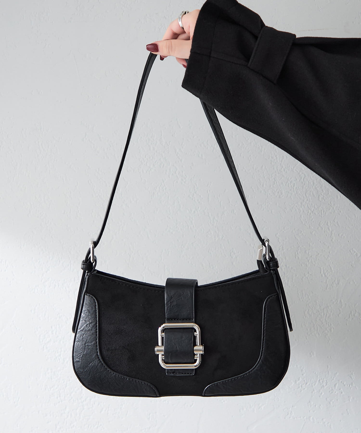 ・スエードと合皮の異素材MIXでシンプルになりすぎず、コーデのアクセントに◎