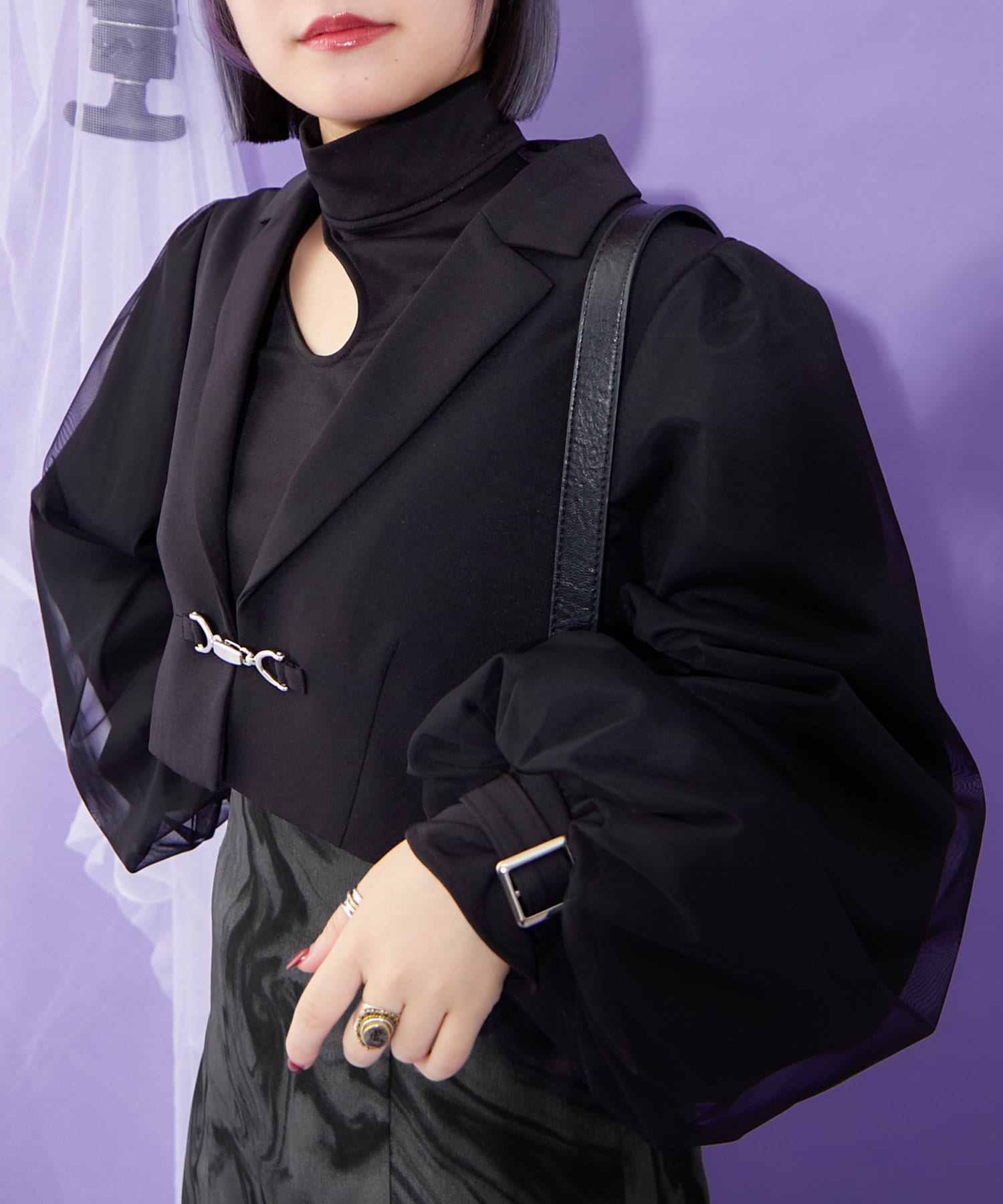 【Mavie..7】袖チュールショートジャケット
