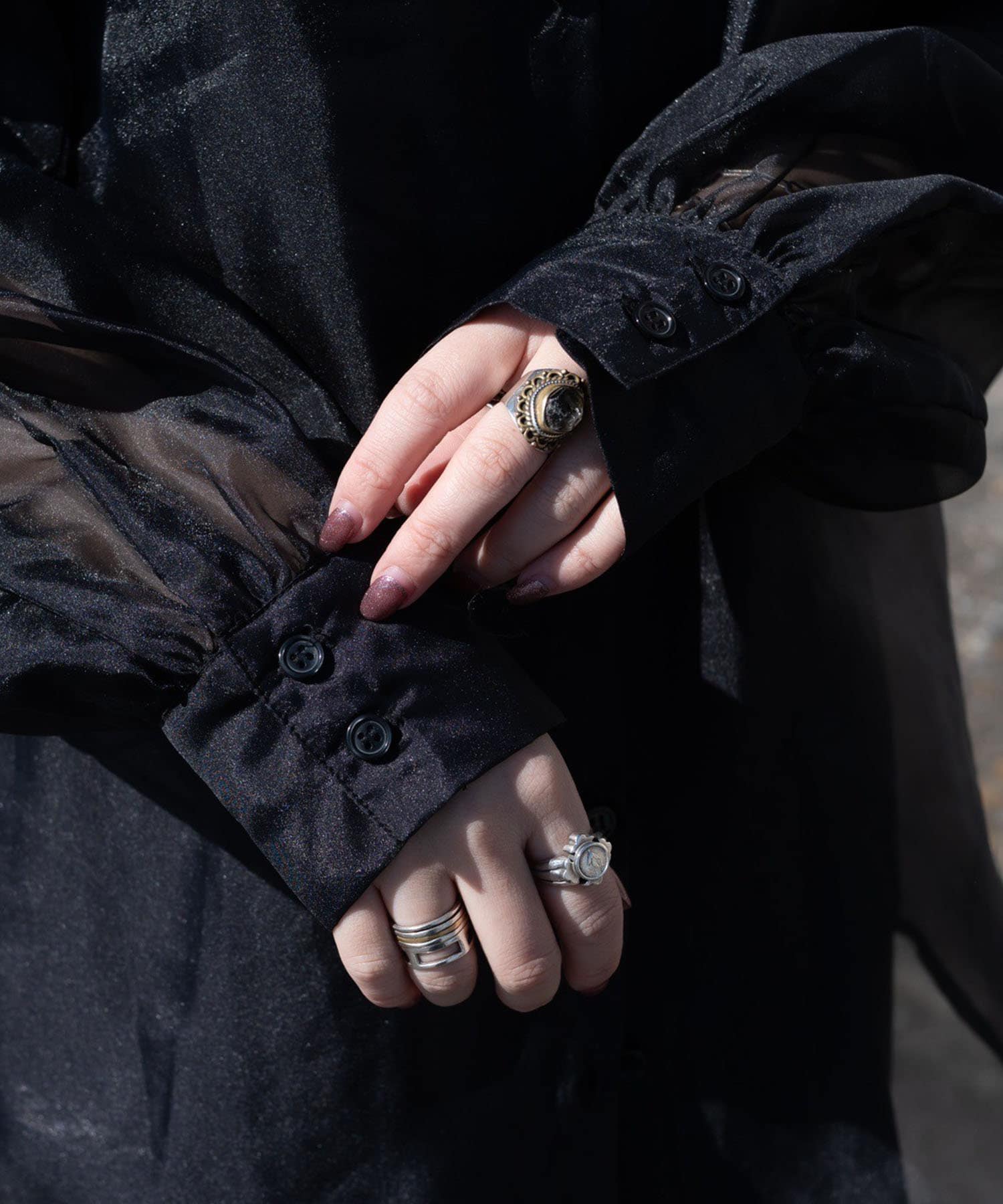 ・肘当たりのギャザーからふわっとお袖が広がるシルエットで女性らしさも◎