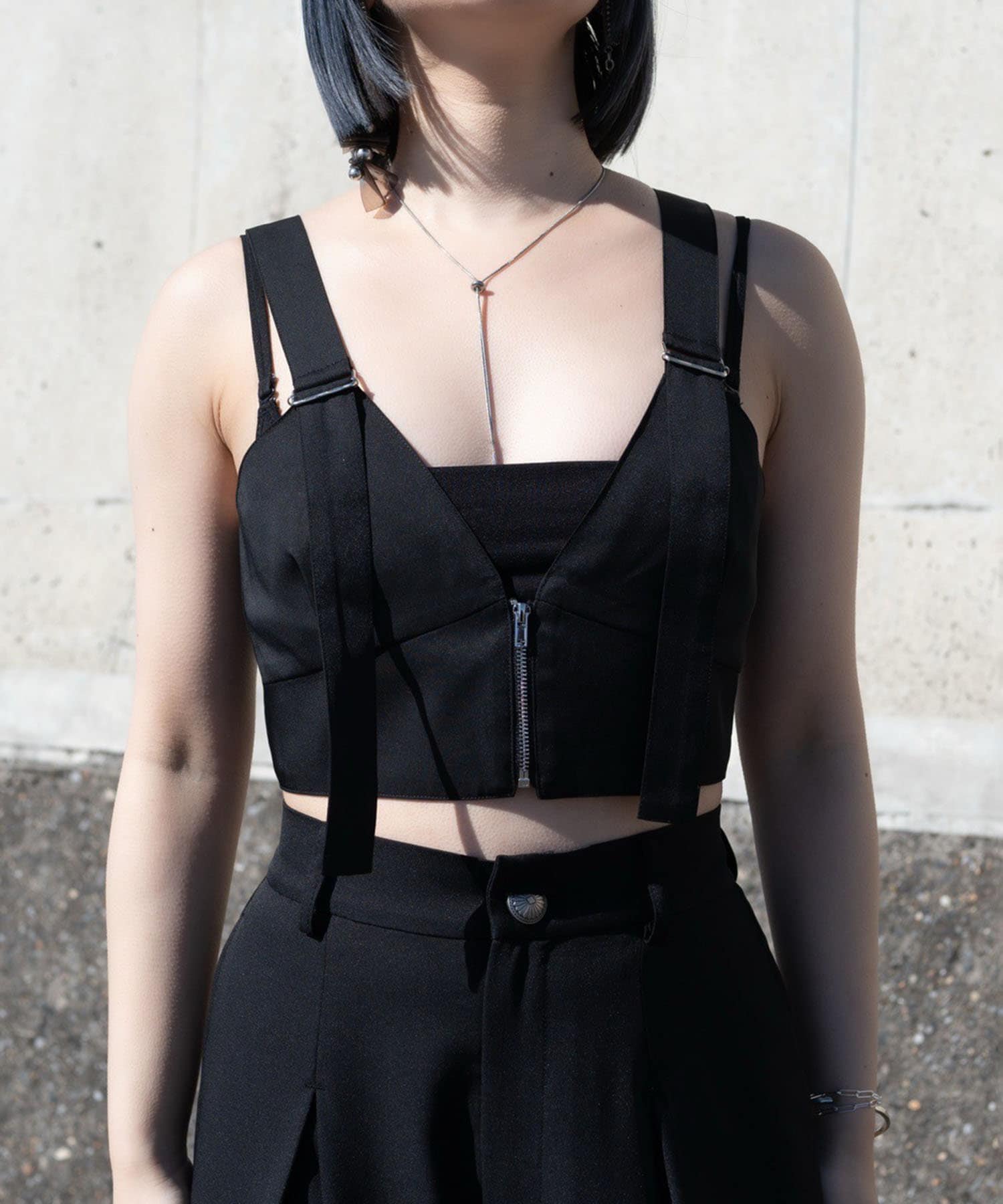 ・ビスチェはざっくりと胸元が開いたデザインとフロントジップが印象的なデザイン。