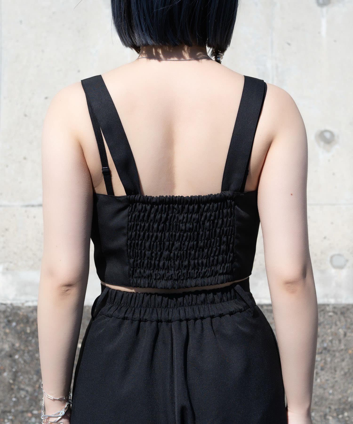 伸縮性:ビスチェの背中部分にゴムあり