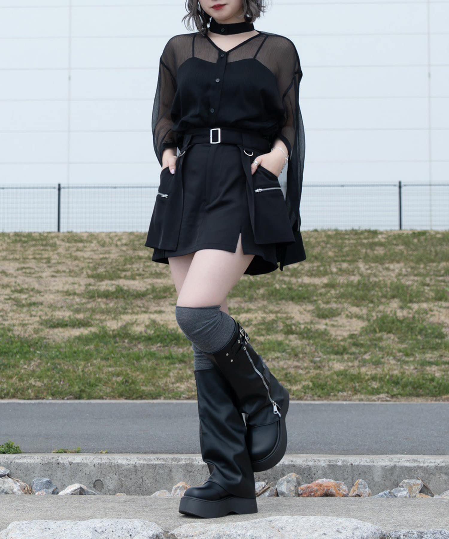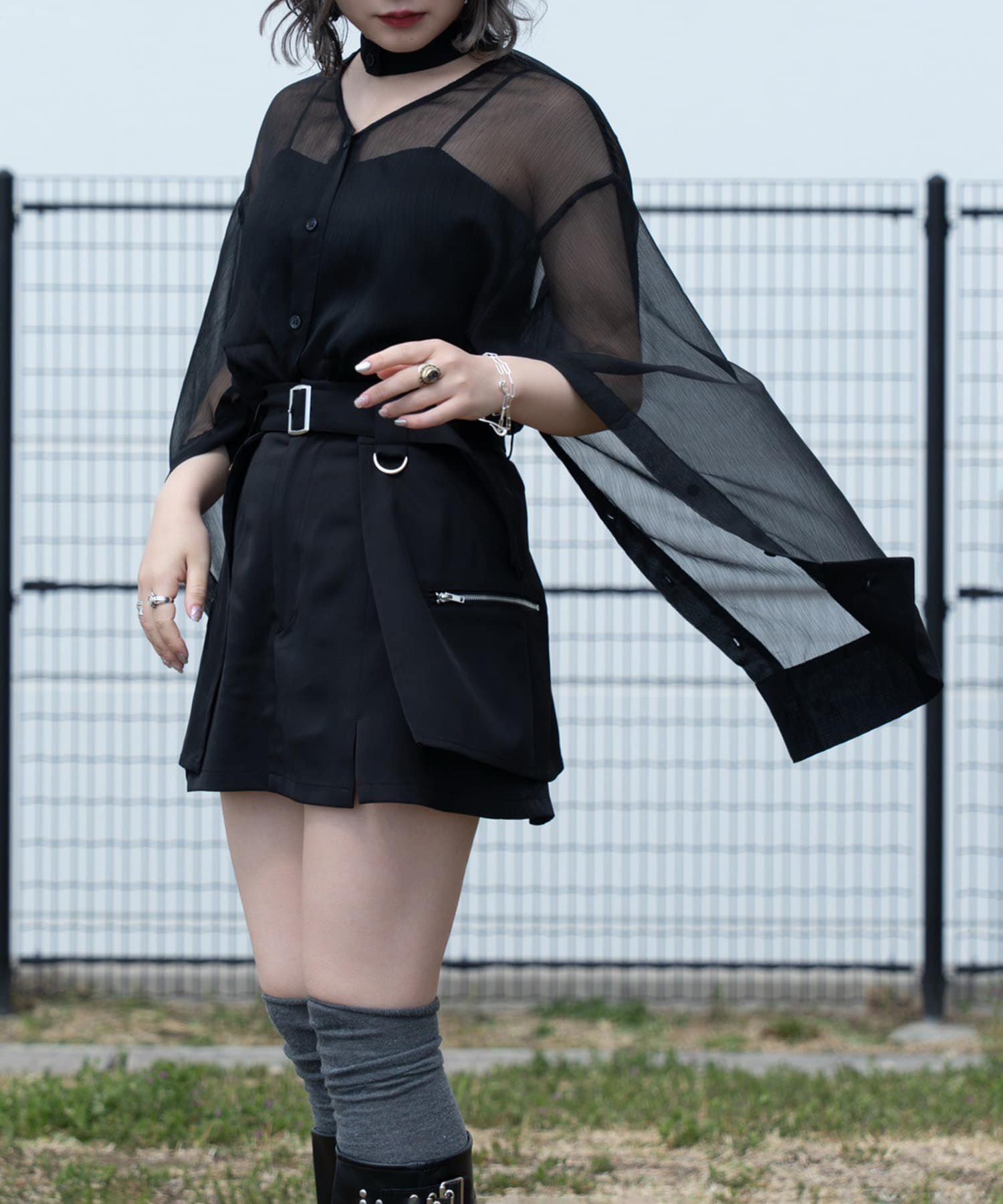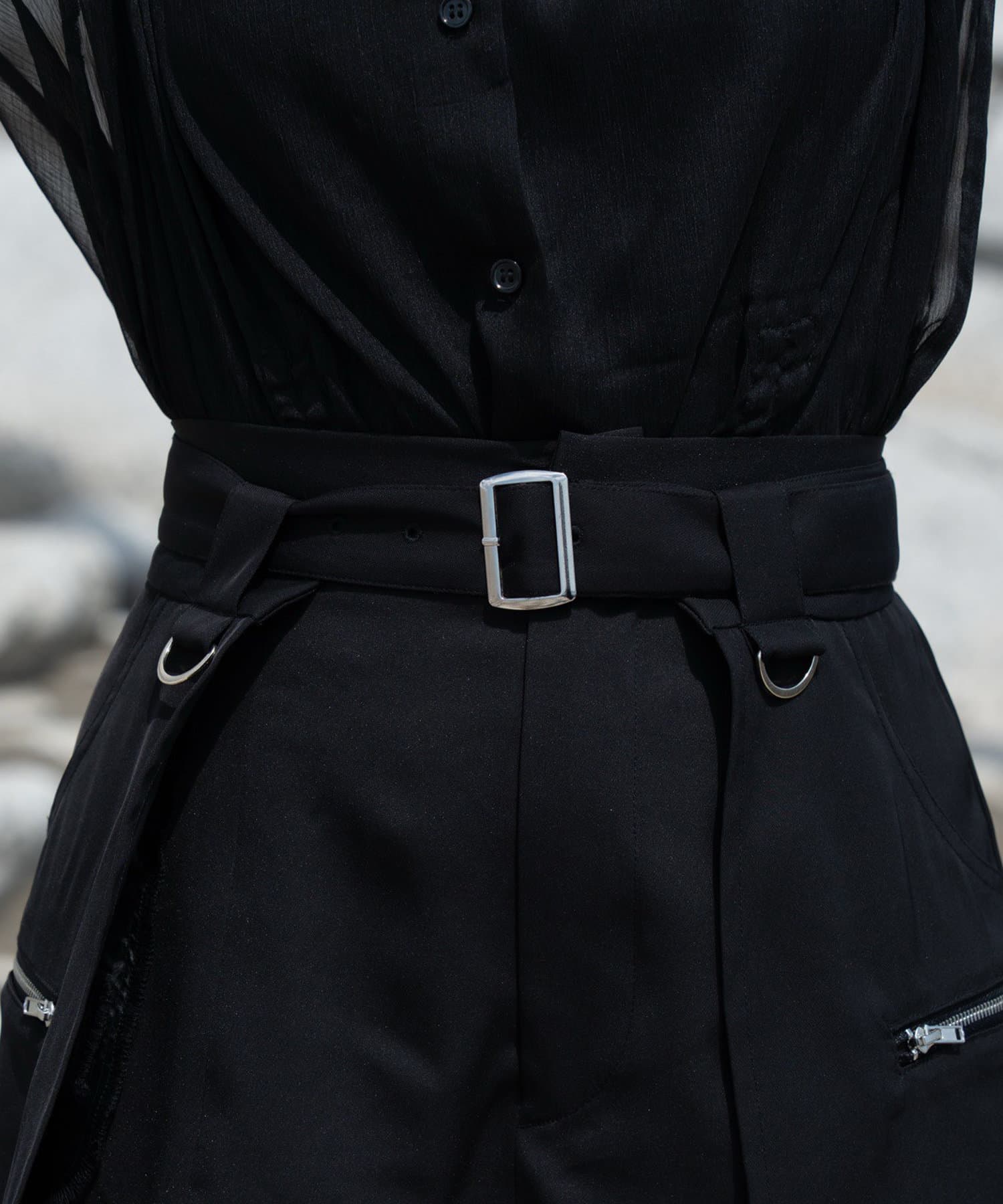 ・ベルトは取り外しができ、ほかのボトムとのレイヤードコーデが楽しめます。