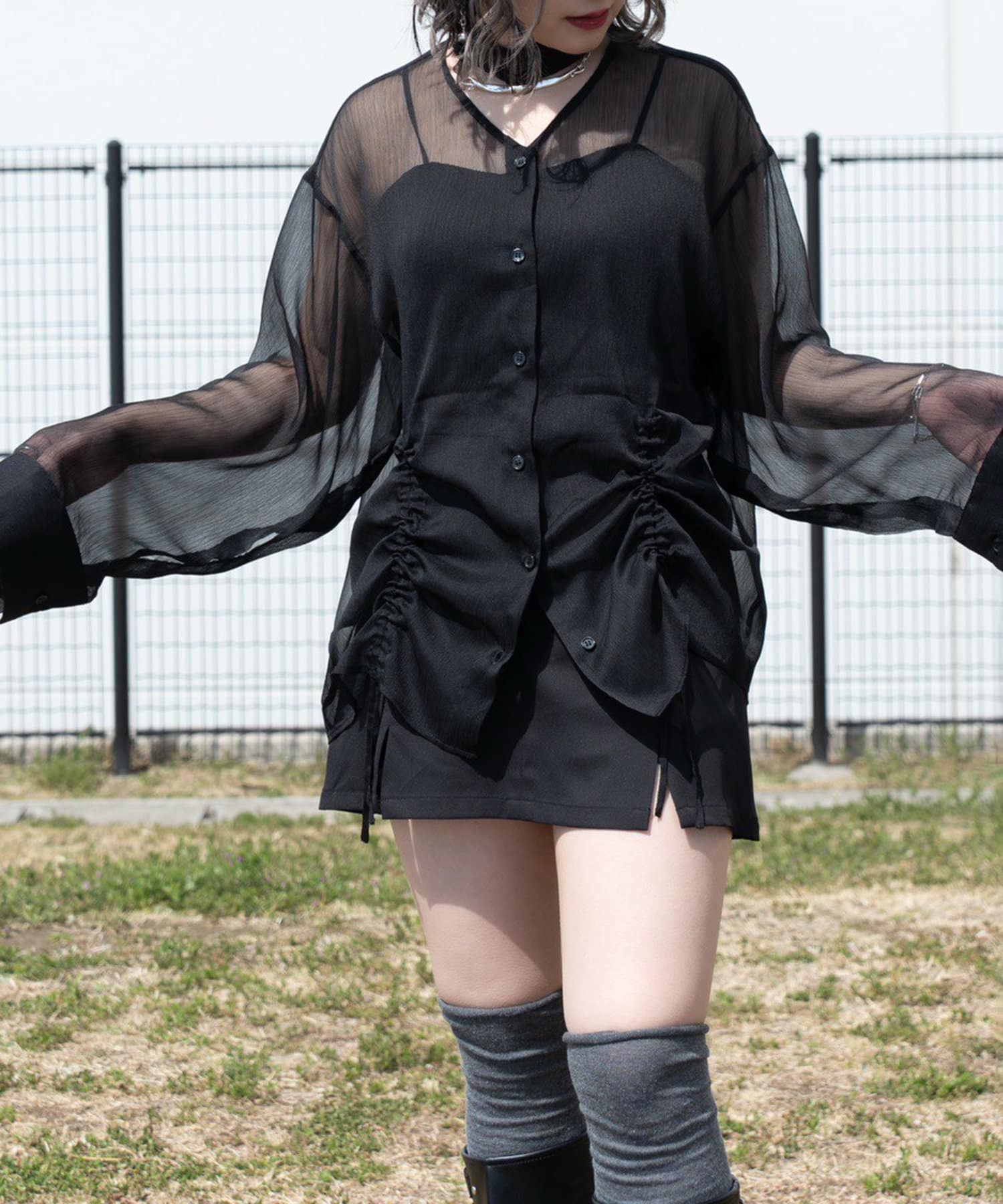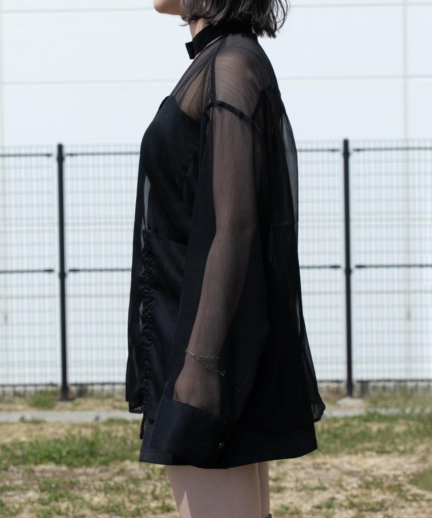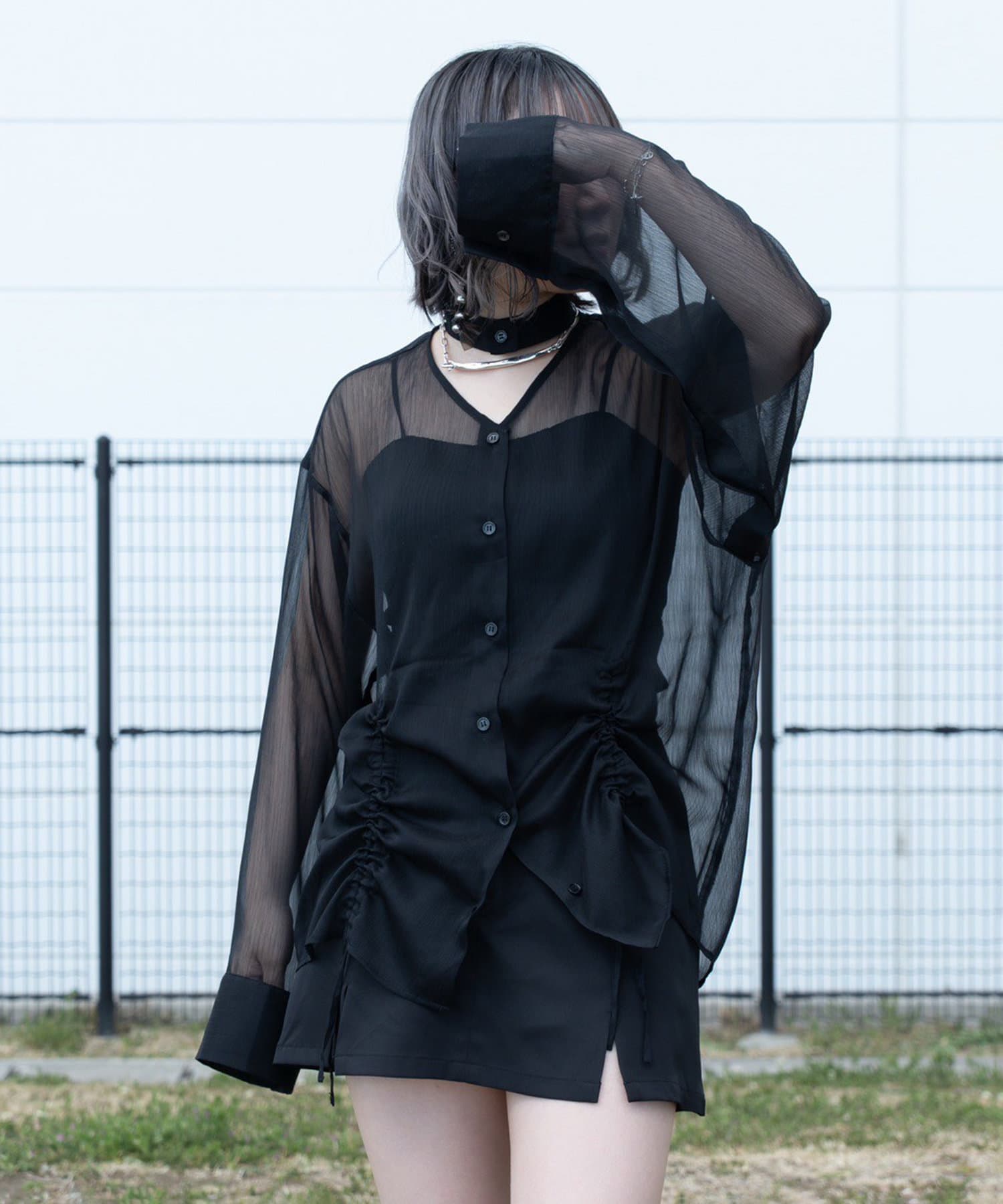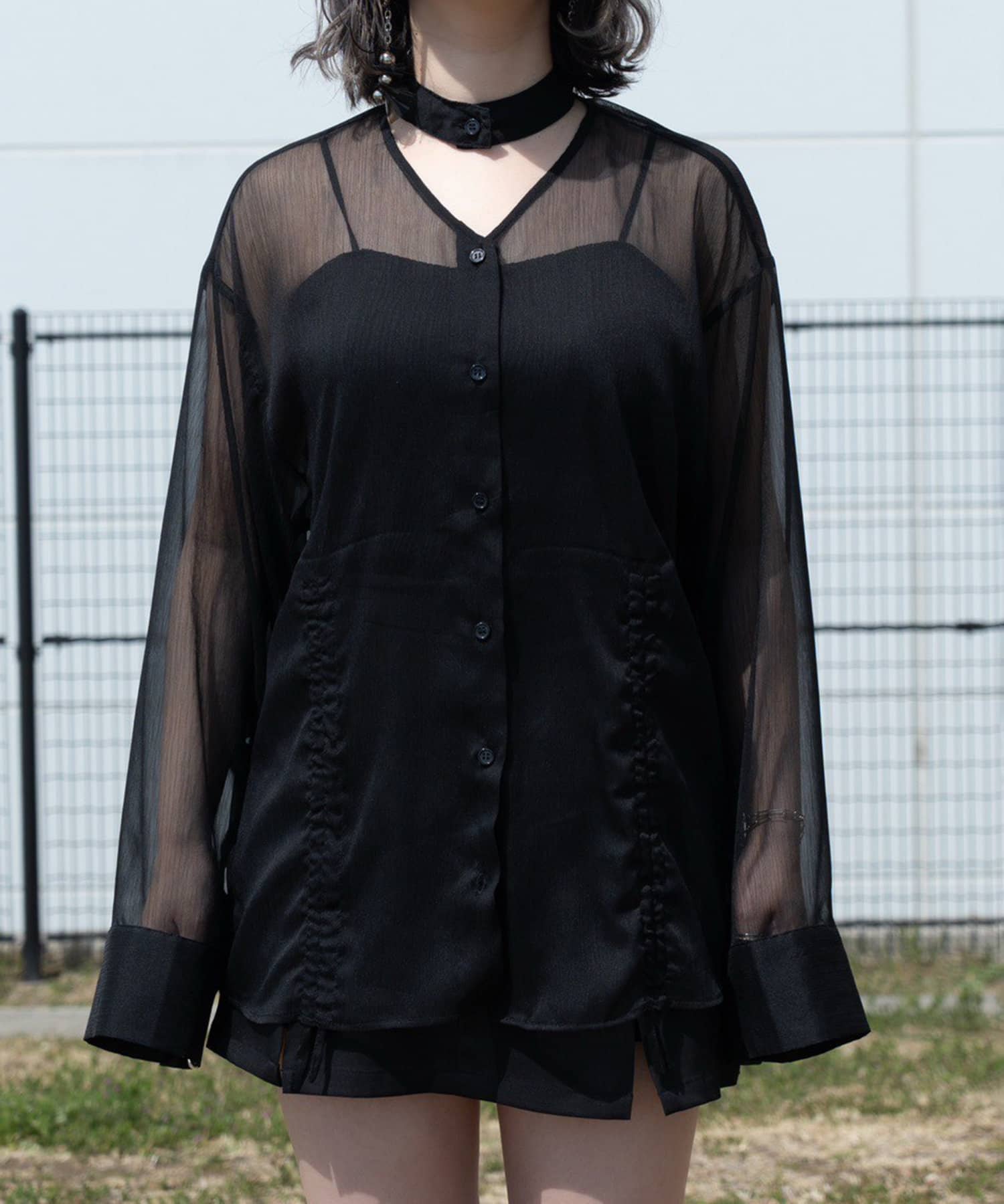 TOP > Remind me and forever > レディース > トップス > シャツ/ブラウス(ボタン) > 【Mavie..7】袖スリットシアーシャツ