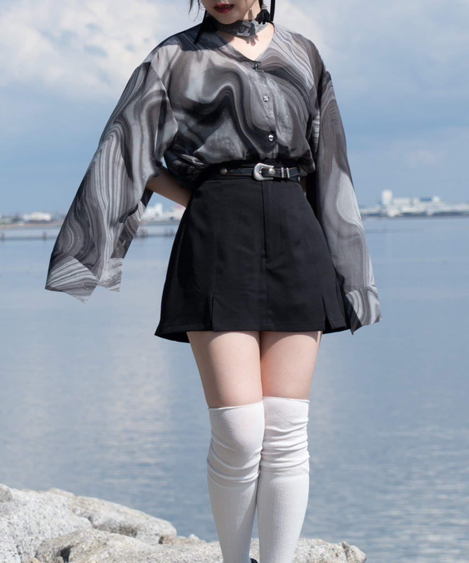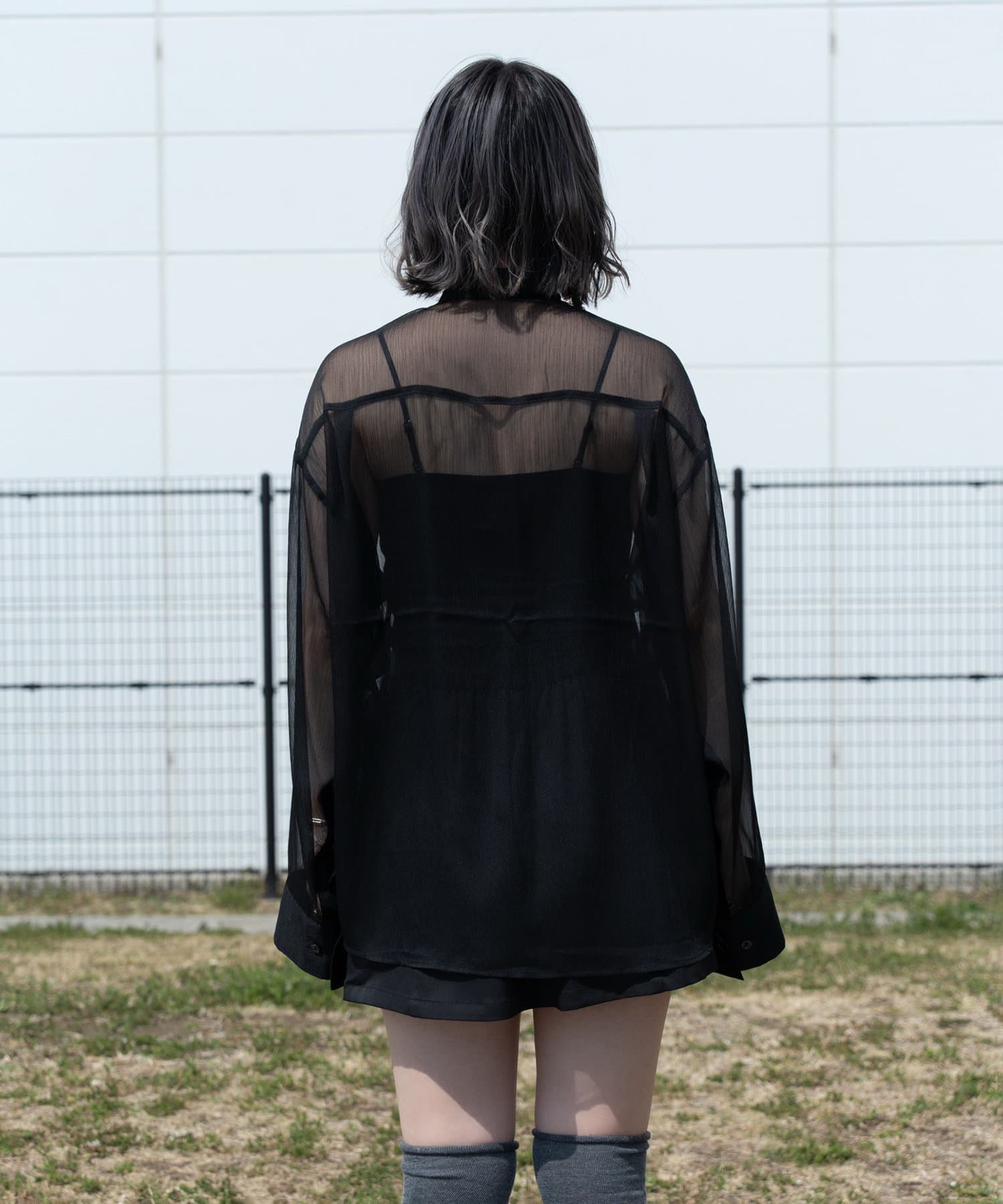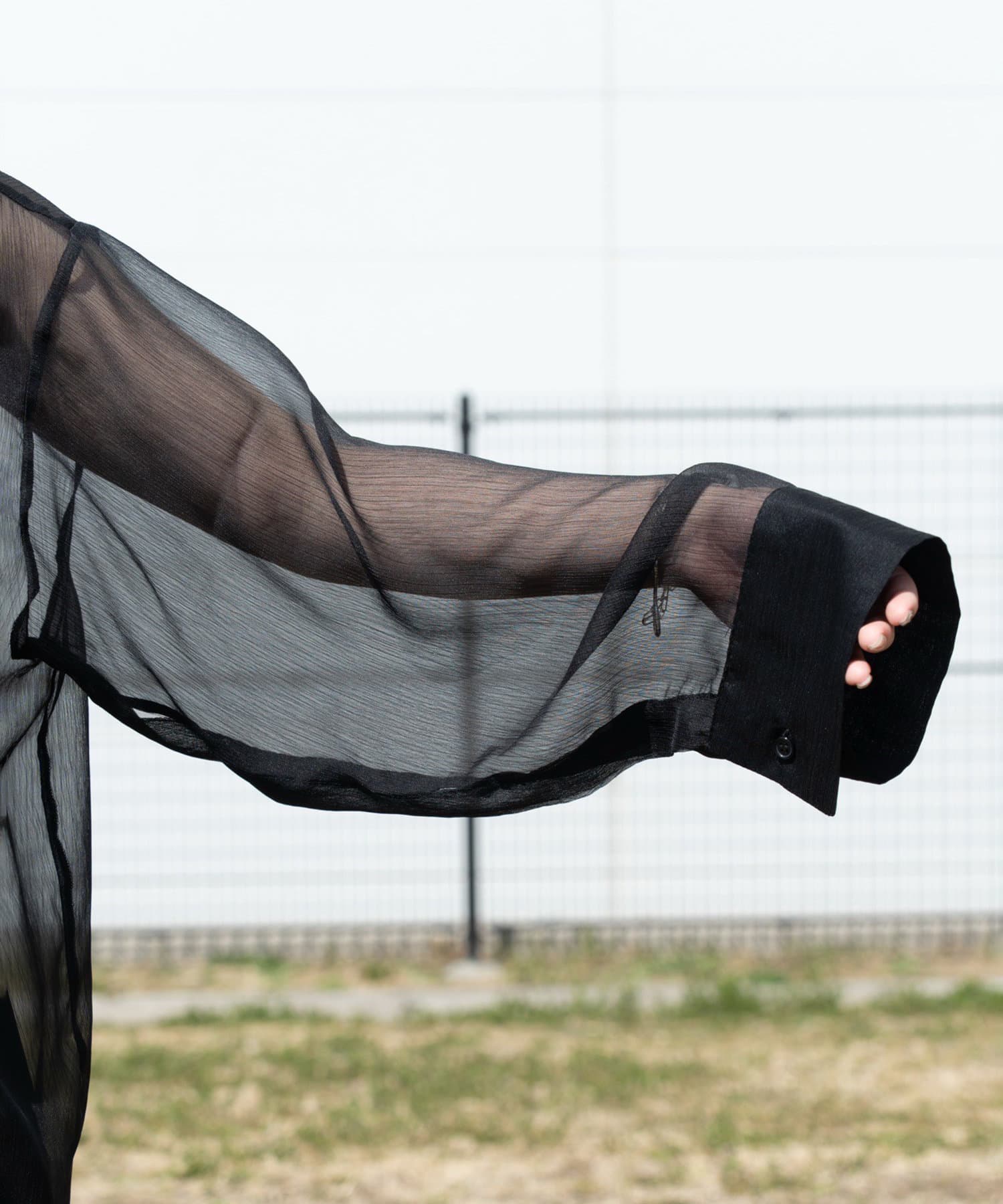 TOP > Remind me and forever > レディース > トップス > シャツ/ブラウス(ボタン) > 【Mavie..7】袖スリットシアーシャツ