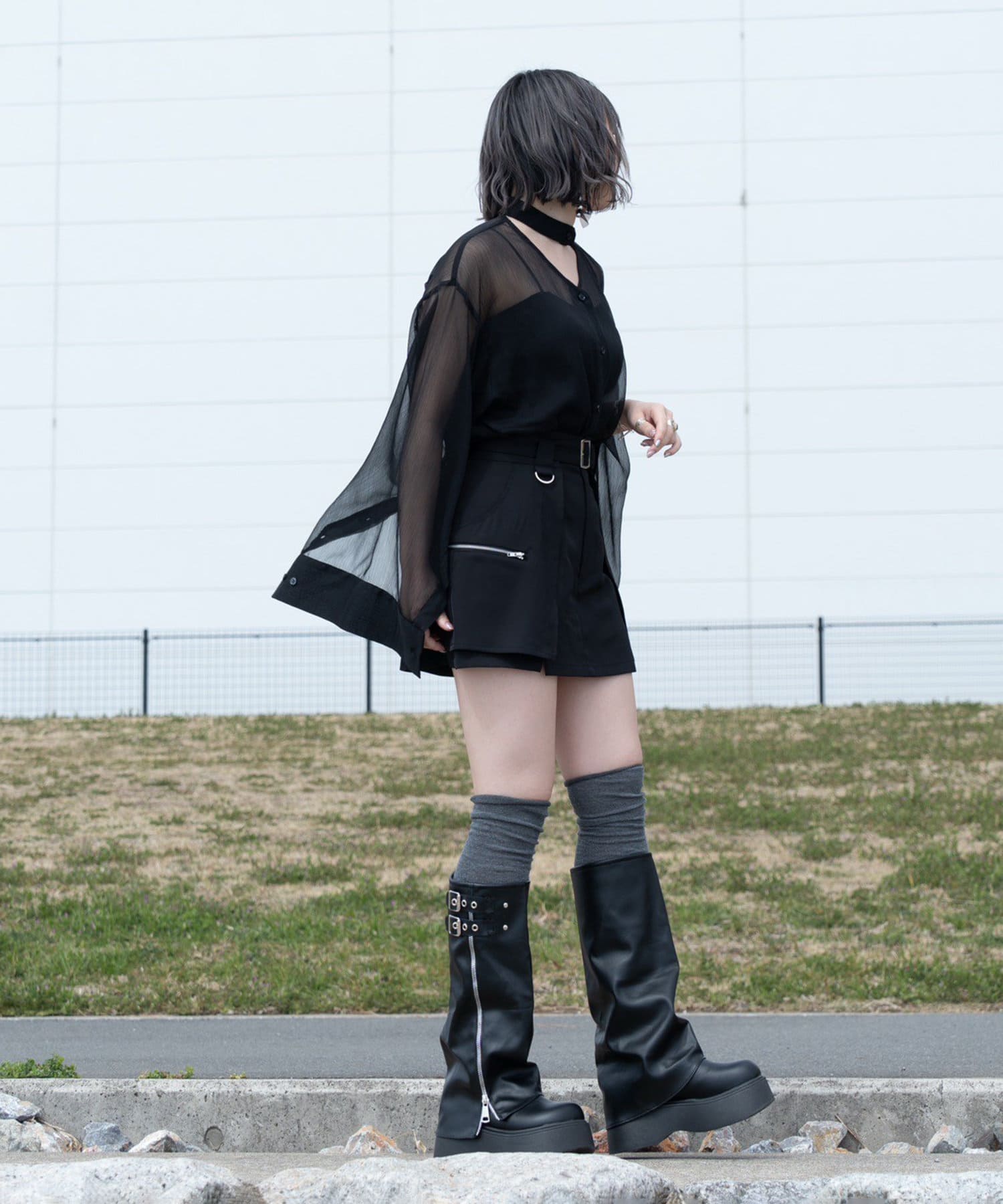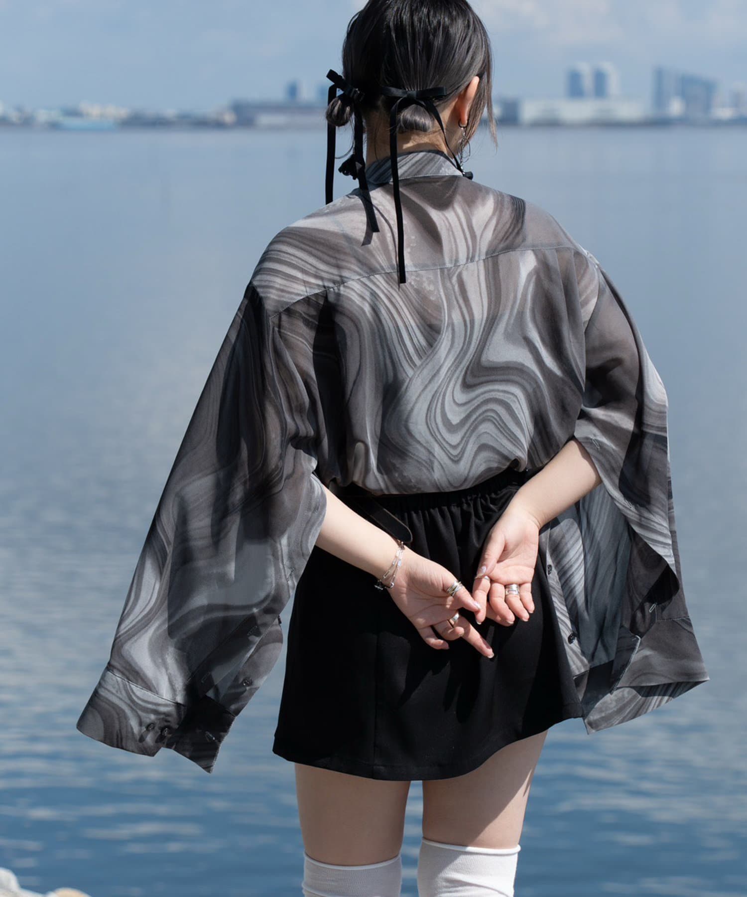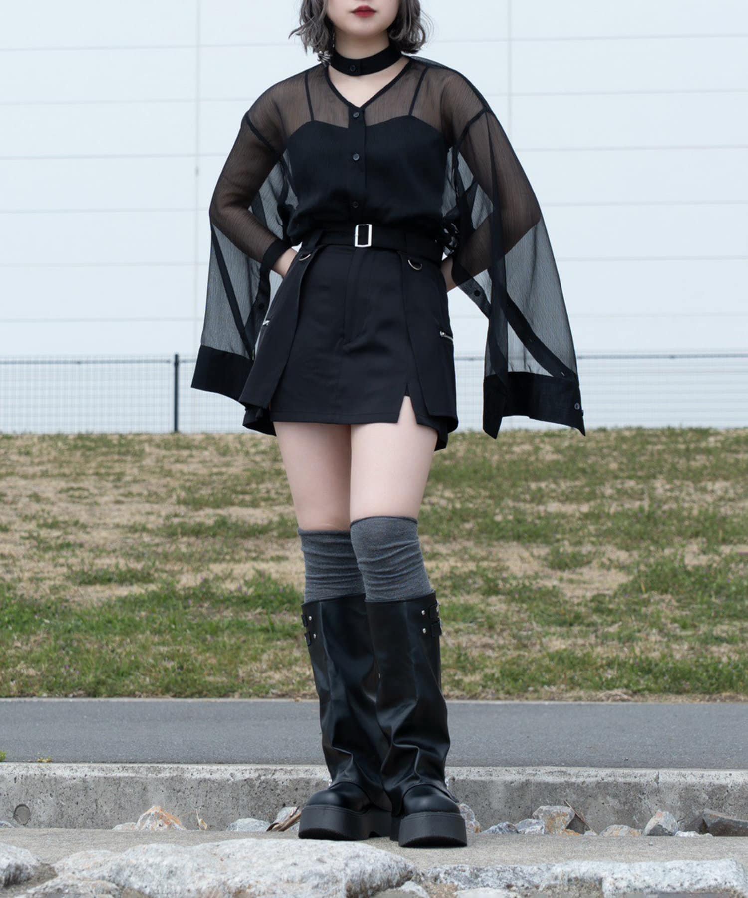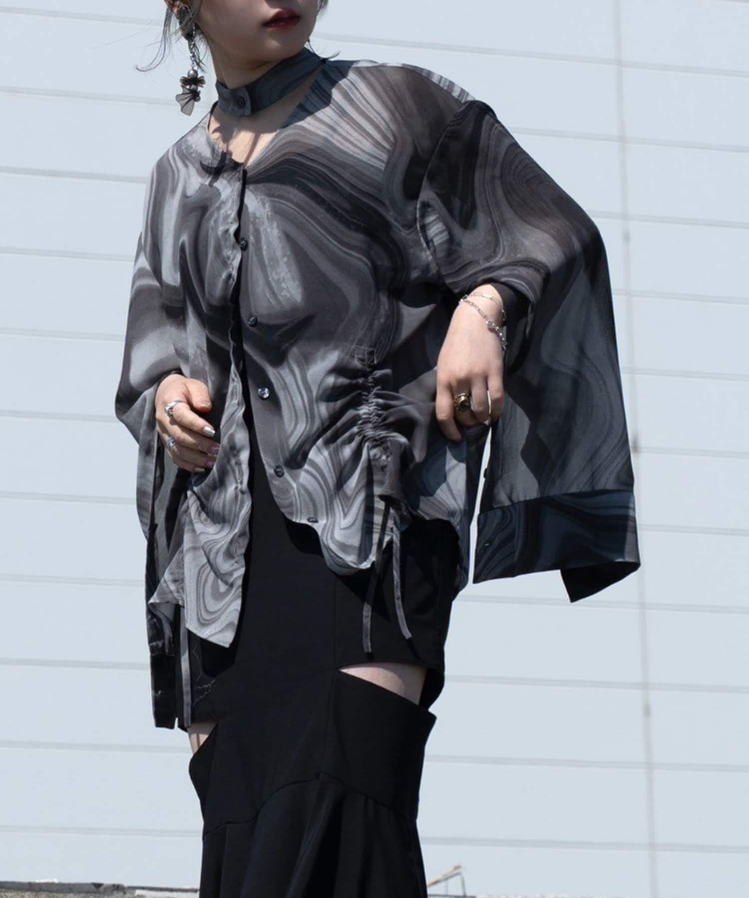 TOP > Remind me and forever > レディース > トップス > シャツ/ブラウス(ボタン) > 【Mavie..7】袖スリットシアーシャツ