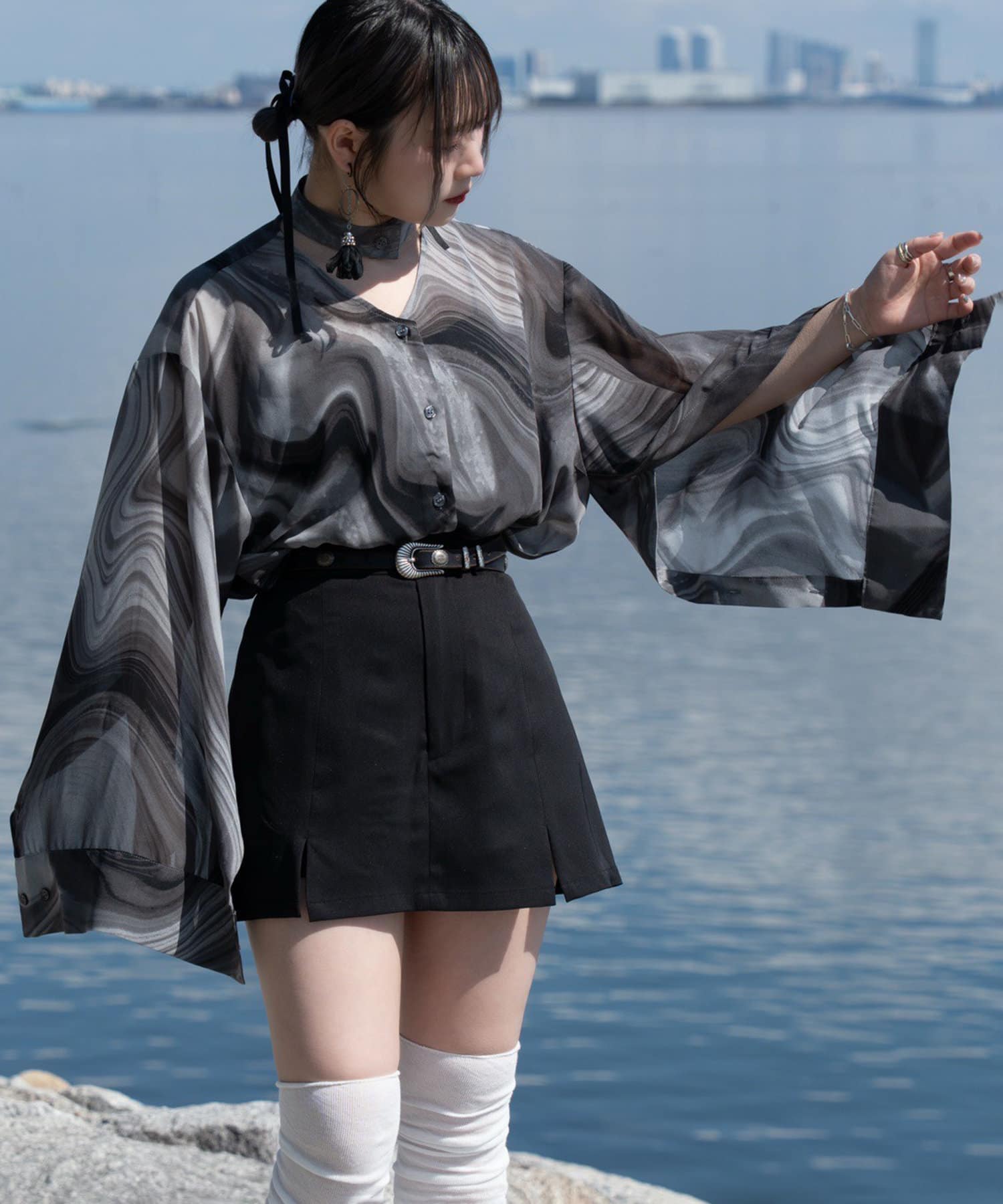 Remind me and forever(リマインドミーアンドフォーエバー) 【Mavie..7】袖スリットシアーシャツ
