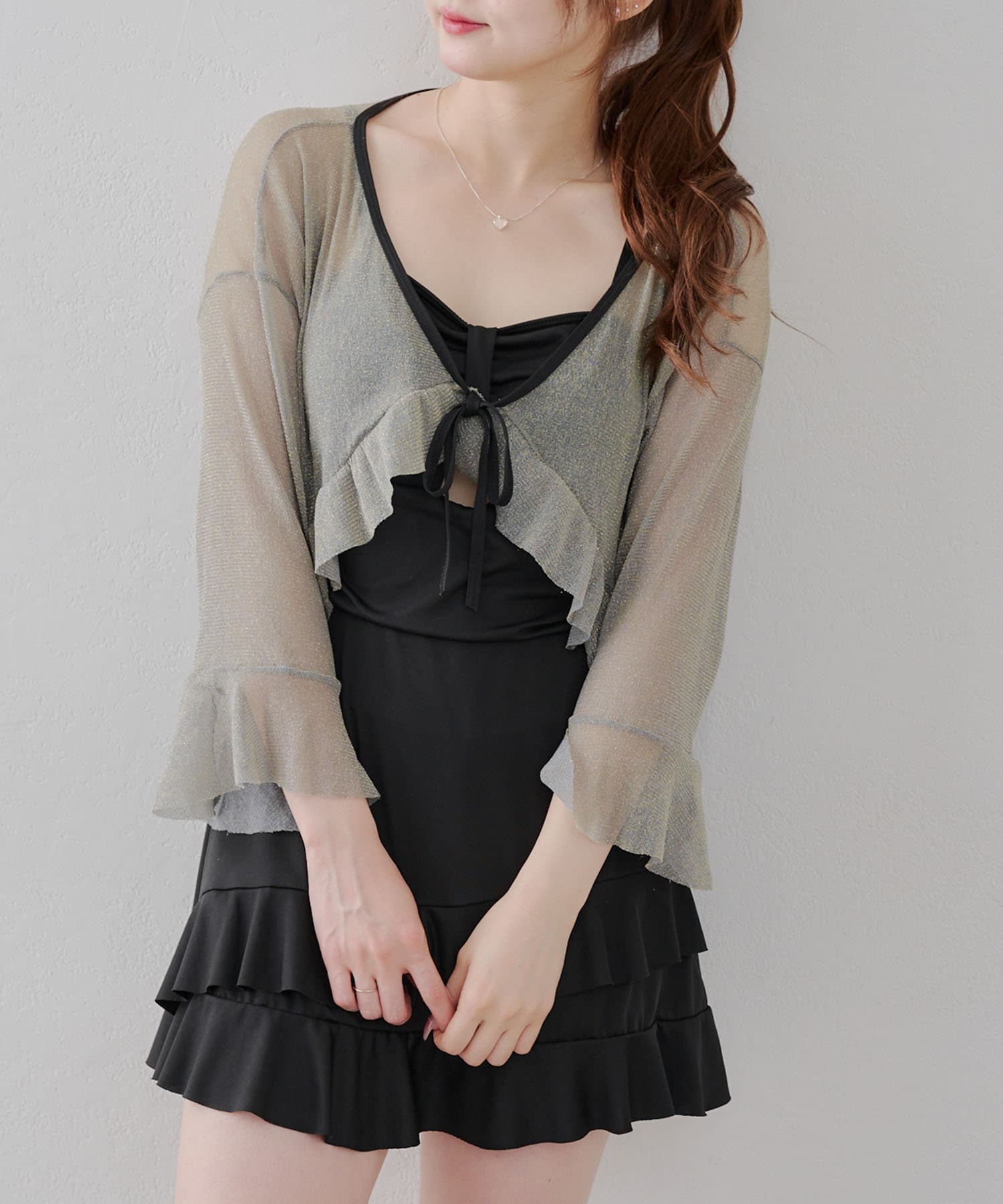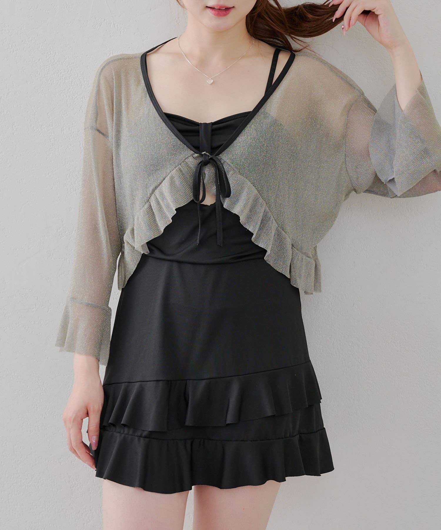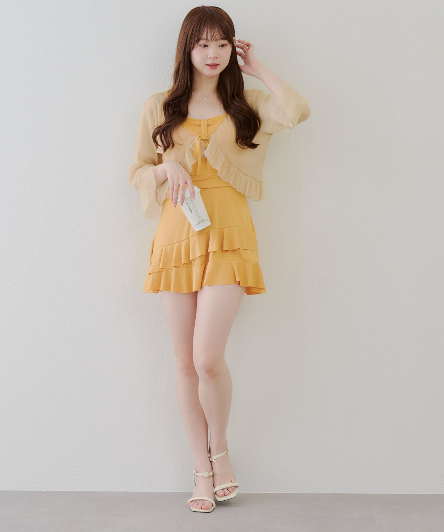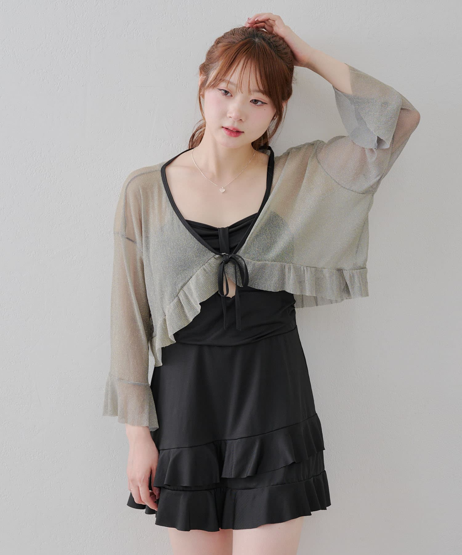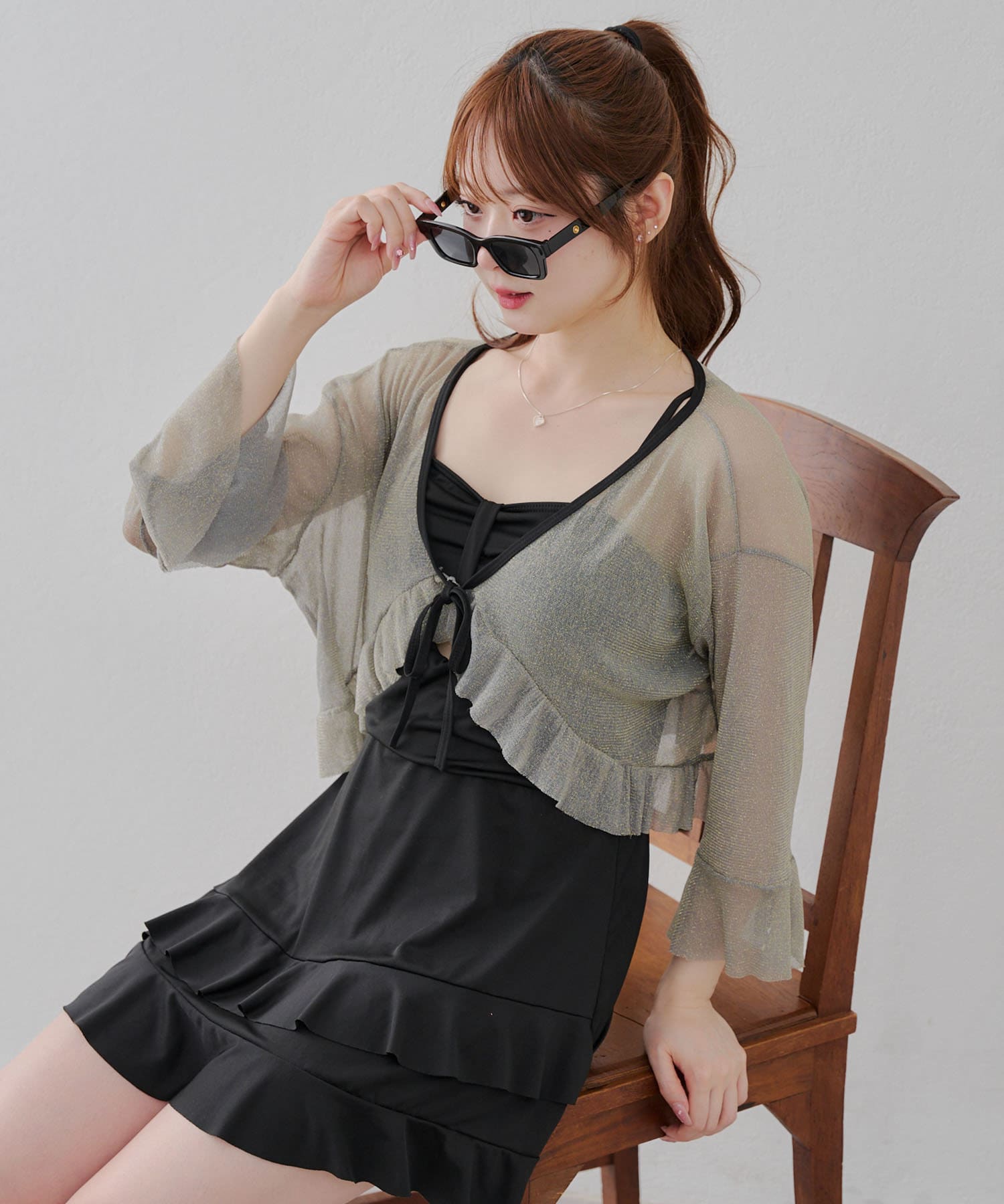 【WEB限定】シアーボレロ×裾ティアード水着2点セット